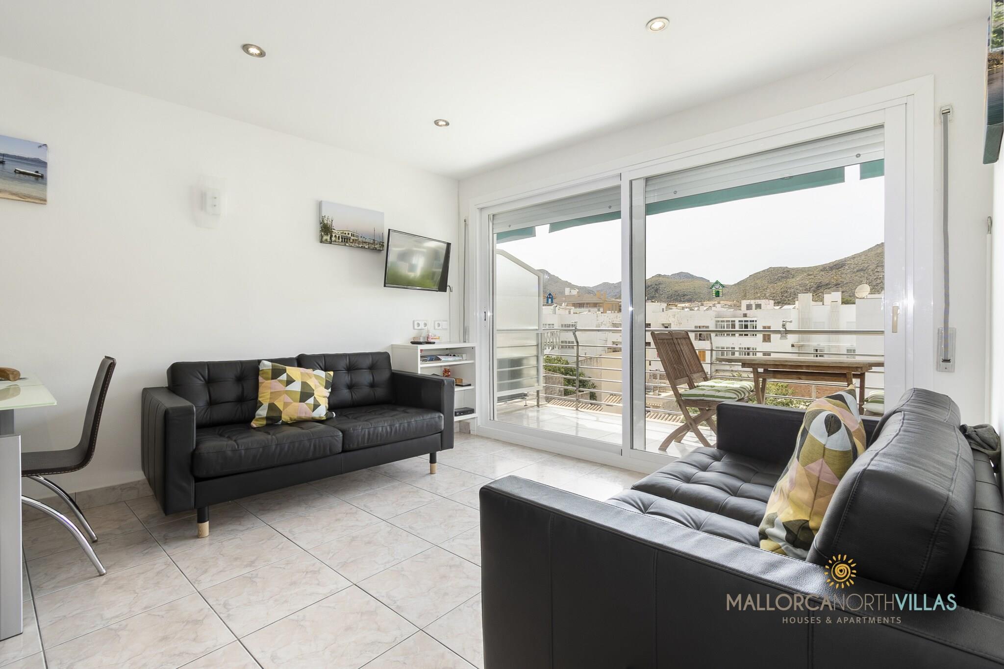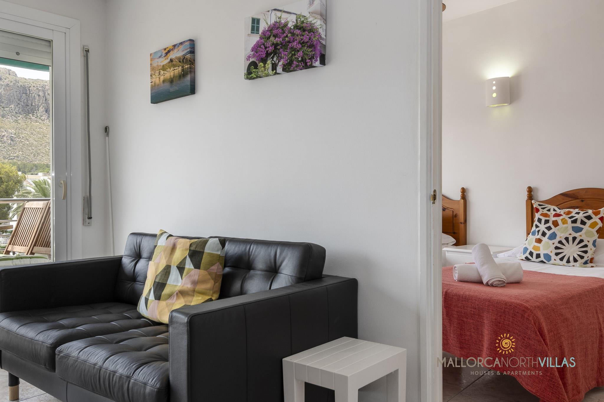 Wohnungsbeschreibung: Diese gemütliche Wohnung befindet sich im Herzen von Puerto de Pollensa und ist ideal für diejenigen, die einen ruhigen und entspannenden Ort suchen. Mit einer Fläche von 64 Quadratmetern verfügt die Wohnung über 2 Schlafzimmer und 1 vollständiges Badezimmer. Die Küche ist vollständig mit Haushaltsgeräten ausgestattet, einschließlich Kühlschrank, Gefrierschrank, Waschmaschine, Kaffeemaschine, Ofen und Mikrowelle, was das Kochen zu Hause erleichtert. Darüber hinaus sind Kochutensilien und Geschirr vorhanden, damit Sie Ihre Mahlzeiten genießen können. Die Wohnung verfügt über Klimaanlage und Heizung, um Ihren Komfort das ganze Jahr über zu gewährleisten. Sie hat auch Zugang zu WLAN-Internet, Bügeleisen und Fernseher, damit Sie verbunden und unterhalten bleiben können. Im Freien können Sie eine angenehme Terrasse mit Blick auf die Berge genießen. In der Nähe gibt es öffentliche Parkplätze im Freien, was das Parken Ihres Fahrzeugs erleichtert. Die Lage ist ideal, nur 1 Minute zu Fuß vom Strand von Puerto de Pollensa entfernt und in der Nähe anderer Sand- und Felsstrände. Auch ein Golfplatz in 12 km Entfernung und der Naturpark S'Albufera in 18 km Entfernung stehen Ihnen zur Verfügung. Diese Wohnung ist perfekt für einen entspannenden Familienurlaub oder einen Urlaub zu zweit, bei dem Sie die Ruhe der ländlichen Umgebung und die Nähe zu Stränden und Sehenswürdigkeiten der Region genießen können.