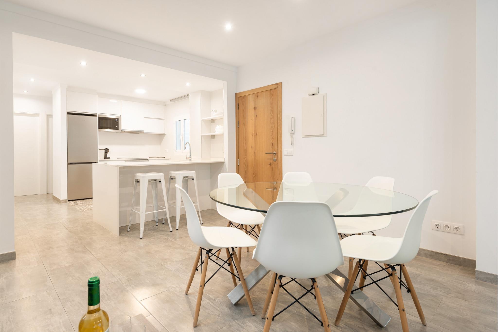 Die private Terrasse des Anwesens ist ideal, um das mediterrane Klima zu genießen. Stellen Sie sich vor, wie Sie den Tag mit einem Frühstück in der Sonne beginnen oder mit Ihren Begleitern zu Mittag oder zu Abend essen oder den Tag mit einem Drink ausklingen lassen. Bitte beachten Sie, dass die Wohnung aufgrund ihrer Lage in einem Gebäude direkte Nachbarn hat. Die Wohnung befindet sich im zweiten Stock eines dreistöckigen Gebäudes und ist geschmackvoll eingerichtet, um Ihnen die Ruhe zu bieten, die Sie verdienen. Ein großer und heller Raum beherbergt das Wohnzimmer, das mit Klimaanlage und Satellitenfernsehen ausgestattet ist, und die Küche, die über ein Cerankochfeld und alle notwendigen Utensilien verfügt, um bequem zu kochen. Im Haus gibt es eine Waschmaschine, ein Bügeleisen und ein Bügelbrett. Zum Schlafen gibt es drei Schlafzimmer: eines mit einem Doppelbett, eines mit zwei Einzelbetten und ein drittes mit einem Etagenbett. Die Wohnung verfügt über zwei unabhängige Badezimmer mit Dusche. Wenn Sie mit Ihrem Baby unterwegs sind, können wir Ihnen ein Kinderbett und einen Hochstuhl zur Verfügung stellen. Die Unterkunft befindet sich in unmittelbarer Nähe des Zentrums von Port de Pollença, einem der besten Urlaubsorte Mallorcas, mit einer sehr familiären Atmosphäre. Wenn Sie Lust haben, können Sie einen entspannenden Spaziergang am Strand entlang machen, bis Sie das Zentrum des Hafens erreichen, wo Sie von der malerischen Promenade mit ihren Geschäften, Restaurants und allen notwendigen Dienstleistungen für einen unabhängigen Aufenthalt überrascht sein werden. Der Strand von L'Arenalet, ein wunderschöner goldener Sandstrand, ist nur 10 Gehminuten von Ihrer Unterkunft entfernt. Während Ihres Aufenthaltes sollten Sie es nicht versäumen, die schönen Dörfer Pollença und Alcúdia, den Aussichtspunkt Formentor oder Cala Sant Vicenç zu besuchen. Hinweis: Diese Unterkunft richtet sich an Familien und Gäste über 30 Jahre, die einen ruhigen Aufenthalt suchen. Buchungen für Partys oder Feiern werden nicht akzeptiert. Eine Kopie des Ausweisdokuments aller Gäste ist erforderlich, um die Reservierung zu bestätigen. Eventuelle Nebenkosten müssen beim Anbieter nachgefragt werden. Haustiere sind verboten. Partys oder ähnliche Veranstaltungen sind nicht gestattet. Entfernungen Strand: 0.85 km - Port de Pollença Flughafen: 67.3 km - Palma de Mallorca Golfplatz: 11.2 km - Golf Pollença Club Ortsmitte: 0.3 km - Port de Pollença Bahnhof: 21.9 km - Sa Pobla Bushaltestelle: 0.7 km - Port de Pollença Fähre: 12.7 km - Port d'Alcudia Krankenhaus: 15.5 km - Hospital Juaneda Muro Touristen Lizenz: ETVPL/15766Einheitsregister: ESFCTU00000703000694727900000000000000000ETVPL/157661