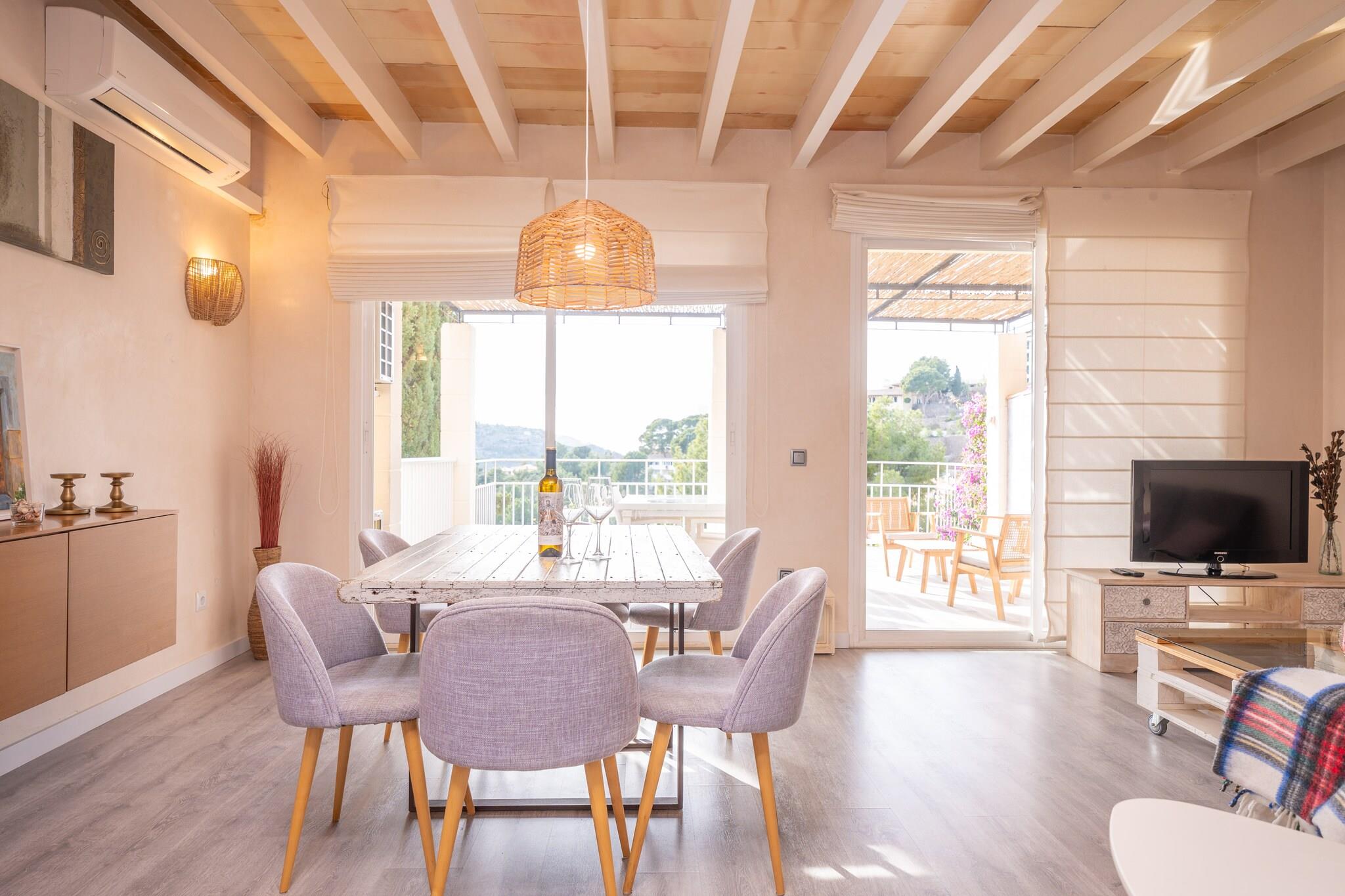 Die geräumige Terrasse ist der perfekte Ort, um sich nach einem Wandertag im Tramuntana-Gebirge oder am Strand zu entspannen. Sie können unter der Markise essen und dabei die atemberaubende Aussicht bewundern oder bei einem Drink den Sonnenuntergang bewundern. Um in diese moderne Wohnung zu gelangen, müssen Sie von der Straße aus eine steile Treppe hinaufsteigen. Das Innere der Wohnung ist in zwei Etagen aufgeteilt. Im Erdgeschoss befindet sich das Wohnzimmer mit Klimaanlage und Satellitenfernsehen. Daneben befindet sich die voll ausgestattete Küche mit Ceran-Kochfeld. Ein Gäste-WC vervollständigt das Erdgeschoss. Im ersten Stock befinden sich die 3 Schlafzimmer, zwei mit Doppelbetten und eines mit zwei Einzelbetten. Zwei davon sind mit Klimaanlage ausgestattet und eines davon hat ein eigenes Bad mit Dusche. Ein weiteres Badezimmer mit Dusche vervollständigt diese Etage. Auf Wunsch können wir ein Kinderbett und einen Hochstuhl bereitstellen, falls Sie mit Ihrem Baby reisen. Schließlich finden Sie in der Wohnung eine Waschmaschine, ein Bügeleisen und ein Bügelbrett. Puerto de Sóller ist einer der emblematischsten Orte Mallorcas mit einem wunderschönen Strand. Aber die Gegend bietet auch viele andere fantastische Orte zu besuchen, wie das Dorf Sóller, Valldemossa oder Deià. In der Sierra de Tramuntana gibt es eine große Auswahl an Ausflugsrouten. Und vergessen Sie nicht, die Straßenbahn und den Zug von Sóller aus zu nehmen, um die Schönheit des Gebirges aus einer anderen Perspektive zu entdecken. Bitte beachten Sie, dass in der Hochsaison die Parkplätze in der Gegend sehr gefragt sind. Der Kamin ist dekorativ. Ein Wechsel der Handtücher und der Bettwäsche während des Aufenthaltes ist inbegriffen. Eventuelle Nebenkosten müssen beim Anbieter nachgefragt werden. Haustiere sind verboten. Partys oder ähnliche Veranstaltungen sind nicht gestattet. Entfernungen Strand: 1.4 km - Port de Sóller Flughafen: 36 km - Palma de Mallorca Golfplatz: 30.4 km - Golf Son Muntaner Ortsmitte: 1.9 km - Port de Sóller Bahnhof: 14 km - Sóller Bushaltestelle: 0.950 km - Port de Sóller Fähre: 34.6 km - Palma de Mallorca Krankenhaus: 25.5 km - Hospital Universitari Son Espases Touristen Lizenz: ETVPL/15184Einheitsregister: ESFCTU00000702800009126500000000000000000ETVPL/151849Auf den Balearen gibt es eine Touristensteuer, die Ecotasa genannt wird. Diese Steuer muss vom Gast bezahlt werden. Der zu zahlende Betrag beträgt zwischen 0.55EURO pro Nacht und Gast in der Nebensaison und 2.2EURO pro Nacht und Gast in der Hochsaison. Ab dem 9. Tag reduziert sich die Steuer um die Hälfte. Personen unter 16 Jahren sind davon ausgenommen