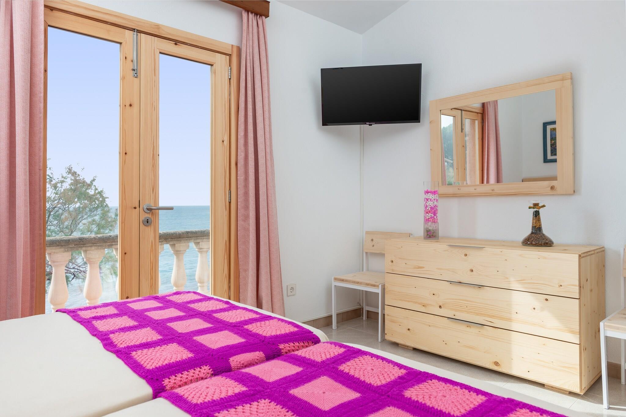 Die Terrasse am Strand ist perfekt, um Sonnenauf- und -Untergänge mit dem Rauschen der Wellen als Hintergrundmusik zu genießen. Das Haus bietet eine weitere überdachte und möblierte Terrasse am Straßeneingang, um das schöne Wetter zu genießen. Das fantastische zweistöckige Haus zeichnet sich durch einen warmen und schlichten Stil aus und bietet alles, was Sie brauchen, um sich wie zu Hause zu fühlen. Im Erdgeschoss befindet sich ein Wohnzimmer mit Zugang zur Terrasse mit Blick auf den Strand, das mit einem Smart-TV mit deutschen, englischen und französischen Kanälen ausgestattet ist. Ein Torbogen trennt diesen Raum vom Küchen-Esszimmer mit Cerankochfeld. Auf dieser Etage befindet sich auch ein Außenbadezimmer mit Dusche. Im ersten Stock befinden sich 3 Schlafzimmer mit je 2 Einzelbetten. Eine Klimaanlage im Flur sorgt für die Kühlung aller 3 Zimmer. Auf dieser Etage gibt es ein weiteres Badezimmer mit Dusche. Die Unterkunft verfügt über eine Waschmaschine, ein Bügeleisen und ein Bügelbrett. Wenn Sie mit Ihrem Baby reisen, können wir Ihnen auch ein Kinderbett und einen Hochstuhl zur Verfügung stellen. Das Haus befindet sich in Ses Barreres, zwischen Cala Bona und Costa dels Pins, einem privilegierten Ort, nicht nur weil es direkt am Meer liegt, sondern auch, weil es sich um ein sehr ruhiges Wohngebiet handelt. Die Wiesen der typischen Alge der Balearen, Posidonia, reinigen das Wasser und verwandeln die Szenerie vor dem Haus in ein türkisfarbenes Paradies. In Cala Bona finden Sie alle Arten von Dienstleistungen wie Bars, Restaurants, Supermärkte, usw. Der Golfplatz von Son Servera ist nur 1,7 km entfernt. Parkplätze für ein Auto befinden sich direkt vor dem Haus. Der Kamin ist dekorativ. Eventuelle Nebenkosten müssen beim Anbieter nachgefragt werden. Haustiere sind verboten. Partys oder ähnliche Veranstaltungen sind nicht gestattet. Es gibt Freiluftparkplätze für 1 Autos. Entfernungen Strand: 0 km - Ses Barreres Flughafen: 71.2 km - Son Sant Joan Golfplatz: 1.7 km - Club de Golf Son Servera Ortsmitte: 2.2 km - Cala Bona Bahnhof: 22.1 km - Manacor Bushaltestelle: 1.1 km - Cala Bona Fähre: 46.5 km - Port d'Alcúdia Krankenhaus: 20 km - Hospital de Manacor Touristen Lizenz: ETV/11637Einheitsregister: ESFCTU0000070230007218080000000000000000000ETV/116374Bei der Anreise muss die Ecotasa (Touristensteuer der Balearen) bar bezahlt werden. Der zu zahlende Betrag beträgt zwischen 0.55EURO pro Nacht und Gast in der Nebensaison und 2.2EURO pro Nacht und Gast in der Hochsaison. Ab dem 9. Tag reduziert sich die Steuer um die Hälfte. Personen unter 16 Jahren sind davon ausgenommen.