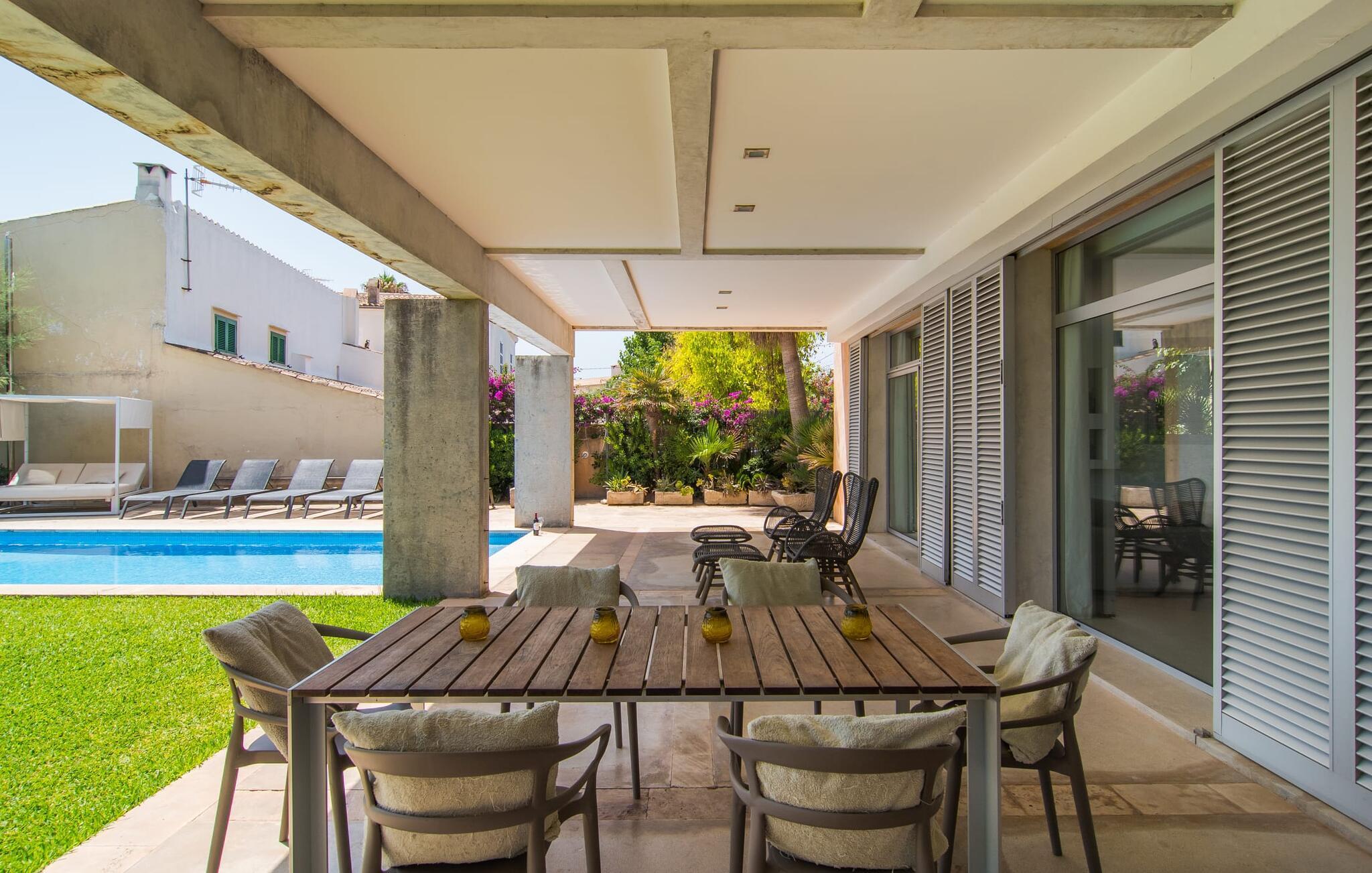 Die spektakuläre Villa "Port Nou" ist ein moderner Rückzugsort im Nordosten Mallorcas, in der Nähe des ruhigen Strandes von Port Nou. Mit unglaublichem Meerblick können Sie den ganzen Tag über die sanften Klänge und Brisen der Küste genießen. Der Außenbereich verfügt über einen wunderschön gepflegten Garten und einen privaten Pool sowie einen privaten Zugang zum Meer. Entspannen Sie sich auf den Liegestühlen und genießen Sie die Grillmöglichkeiten oder speisen Sie im Freien am charmanten Tisch für sechs Personen auf der überdachten Terrasse, während Sie den atemberaubenden Meerblick genießen.