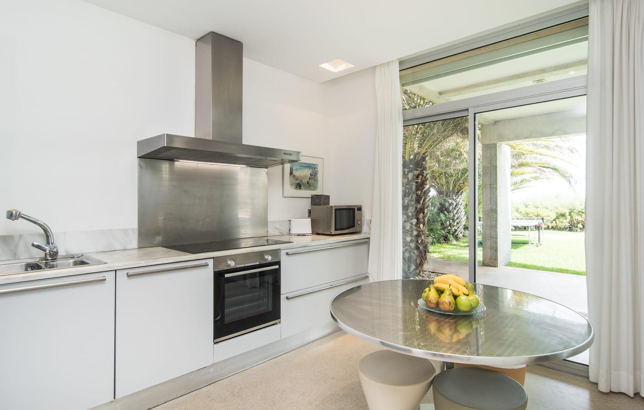 Dieses avantgardistische Haus erstreckt sich über 355 m² auf drei Etagen und bietet Platz für sechs Gäste. Die sandfarbene Fassade und das minimalistische Design harmonieren perfekt mit der Strandumgebung. Im Inneren durchfluten große Fenster den Wohn- und Essbereich mit Licht und bieten einen Panoramablick auf den Infinity-Pool und das Meer. Die gut ausgestattete Küche und das elegante Esszimmer erfüllen alle Ihre Bedürfnisse.