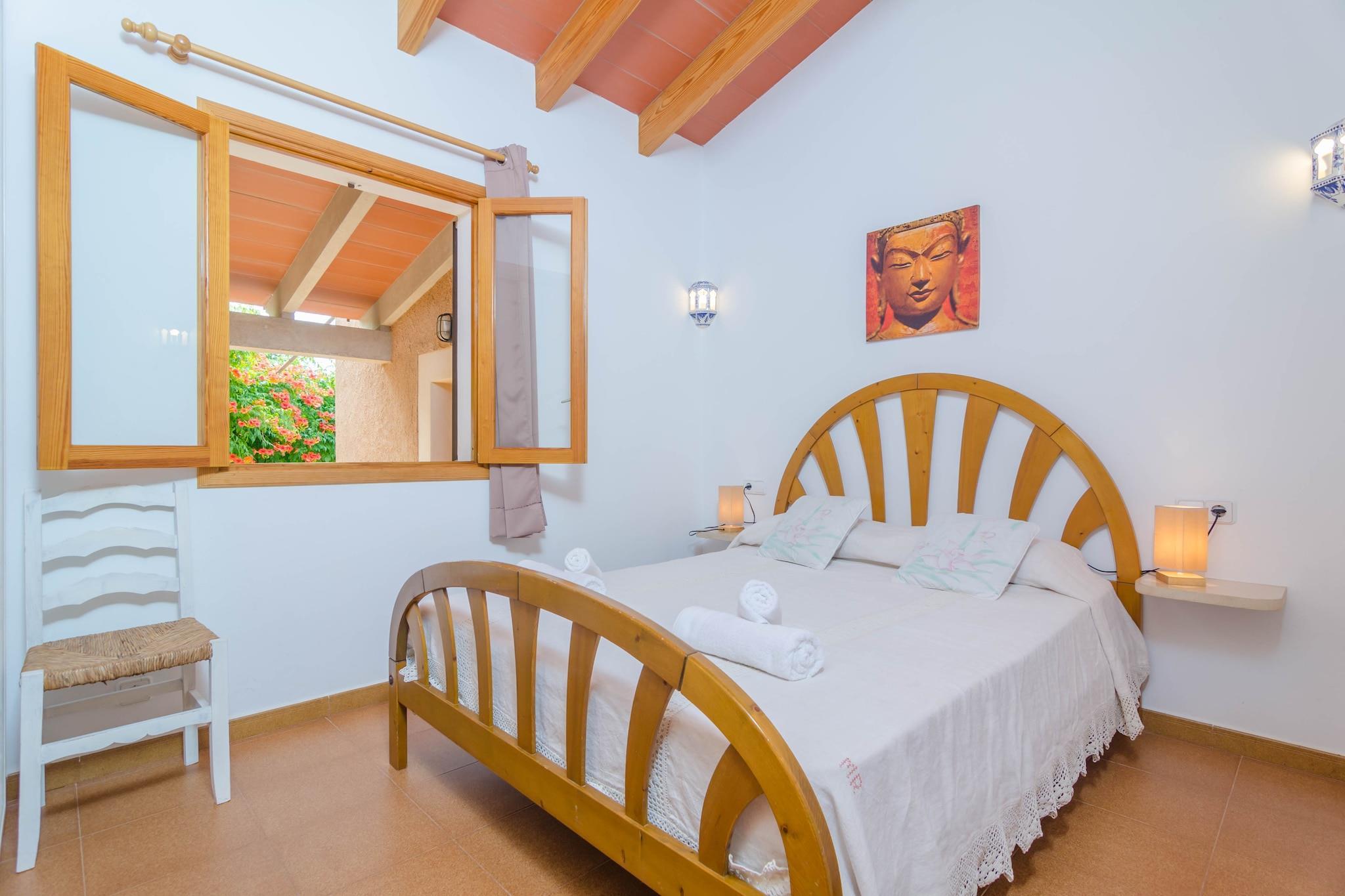 Die geräumige Terrasse mit viel Grün eignet sich für einen Grillabend und ein paar Gläschen Wein in lauen Sommernächten. Auf sechs Sonnenliegen lässt man sich in Ruhe bräunen um sich danach bei der Außendusche abzukühlen. Eine kleine Veranda hat direkten Zugang zum Wohnzimmer. Diese ruhige Unterkunft ist umzäunt und allein stehend. Das einstöckige Ferienhaus bietet eine gemütliche Wohnküche, die sich zum fernsehen (Satellitenempfang: nur deutsche Sender) oder Musik hören anbietet. Am Kamin genießt man lange Tischgespräche mit der Familie. Die Küche mit Gasherd ist gut ausgestattet. Drei Schlafzimmer, davon zwei mit je einem Doppelbett und eines mit zwei Einzelbetten teilen sich zwei Bäder (eines mit Dusche und eines mit Badewanne). Ein Ventilator in jedem Schlafraum sorgt für Abkühlung an heißen Sommernächten. Eine Waschküche bietet eine Waschmaschine, ein Bügeleisen und ein Bügelbrett. Wenn Sie mit einem Baby reisen, bereiten wir gerne ein Bettchen und einen Hochstuhl vor. Ein weiteres Set Hochstuhl und Bettchen kann auf Anfrage zur Verfügung gestellt werden. Cala D'es Borgit ist der nächste Sandstrand und nur zu Fuß erreichbar. Die Unterkunft liegt nahe des Fischerortes Portopertro und des Naturparks Cala Mondragó, alles leicht mit dem Auto zu erreichen. Ca. 30 Minuten Autofahrt trennen Sie vom Fischerort Colonia de Sant Jordi, wo Sie gute, Mediterrane Küche in einem der Restaurants probieren können. Hier kann man auch abends auf einen Drink gehen. Im Sommer fahren regelmäßig Ausflugsboote ins Naturschutzgebiet Sa Cabrera. In ca. 40 km Entfernung liegt die Hauptstadt Palma de Mallorca, wo Sie die Kathedrale und den Hafen besuchen können. Eventuelle Nebenkosten müssen beim Anbieter nachgefragt werden. Haustiere sind verboten. Partys oder ähnliche Veranstaltungen sind nicht gestattet. Es gibt Freiluftparkplätze für 1 Autos. Entfernungen Strand: 0.3 km - Es Caló des Borgit, Porto Petro Flughafen: 55.4 km - Son Sant Joan, Palma Golfplatz: 12.9 km - Vall d'Or Golf, s'Horta Ortsmitte: 2.3 km - Porto Petro Bahnhof: 34.4 km - Plaça de s'Estació, Manacor Bushaltestelle: 2.3 km - Passeig des Port, Porto Petro Fähre: 63.2 km - Port de Palma Krankenhaus: 36.3 km - Hospital de Manacor Touristen Lizenz: VT/452Einheitsregister: ESFCTU0000070080007044400000000000000000000000VT/4522Auf den Balearen gibt es eine Touristensteuer, die Ecotasa genannt wird. Diese Steuer muss vom Gast bezahlt werden. Der zu zahlende Betrag beträgt zwischen 0.55EURO pro Nacht und Gast in der Nebensaison und 2.2EURO pro Nacht und Gast in der Hochsaison. Ab dem 9. Tag reduziert sich die Steuer um die Hälfte. Personen unter 16 Jahren sind davon ausgenommen