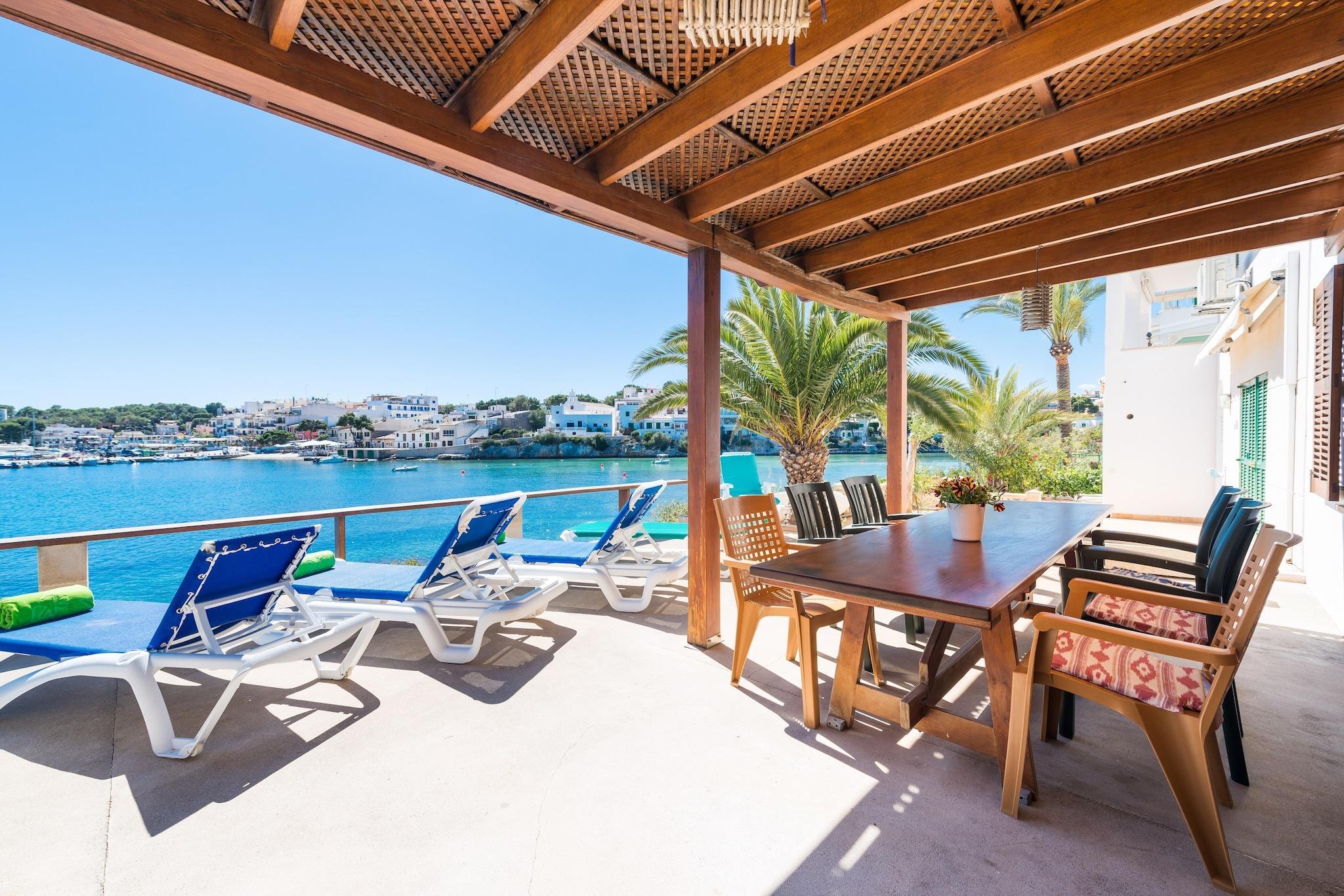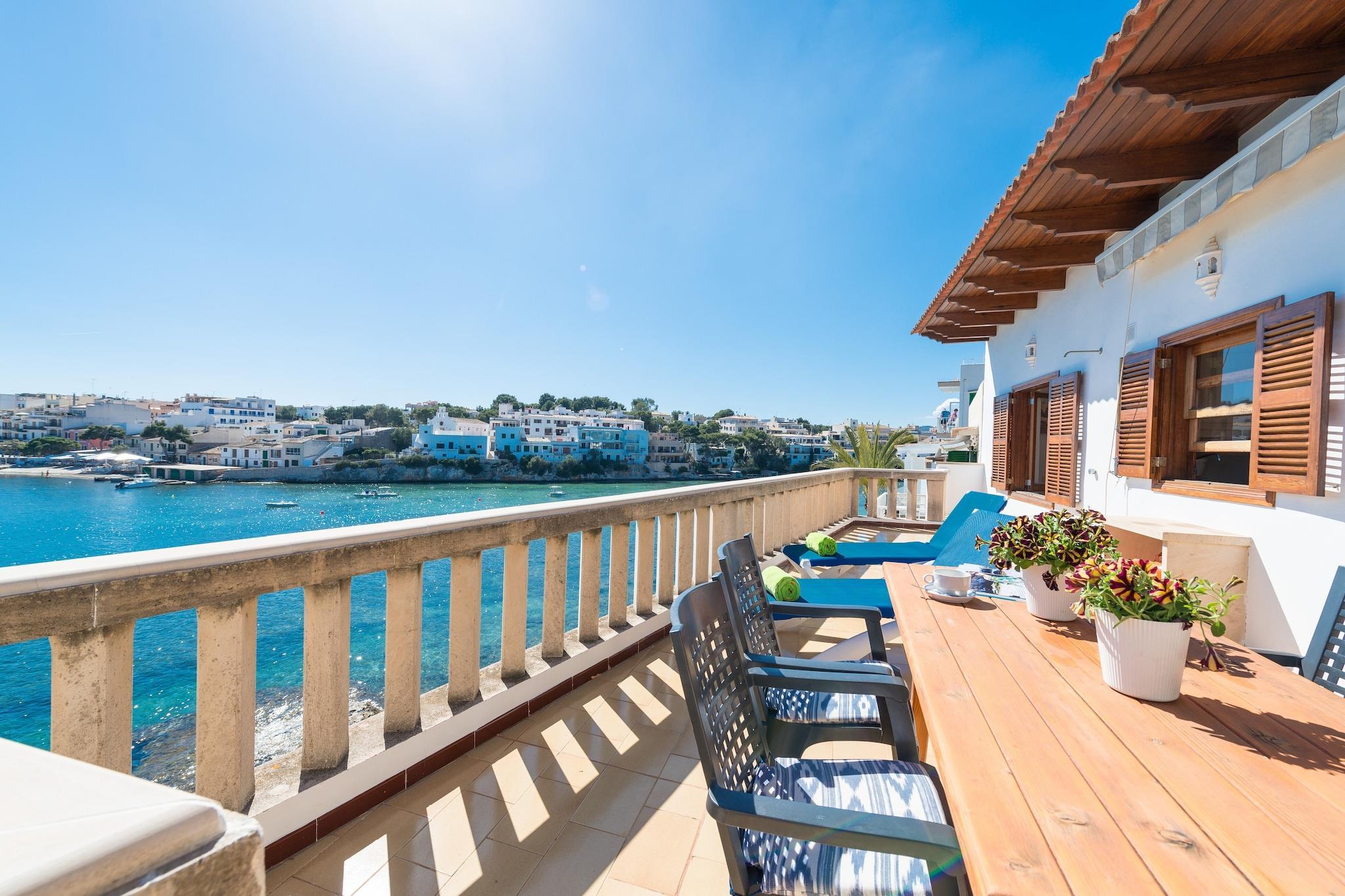 Die privilegierte Lage des Hauses, direkt am Meer, verspricht entspannte Momente auf einer der 3 möblierten Terrassen, sei es beim Sonnenbaden- es gibt insgesamt 7 Liegen - oder bei den Mahlzeiten im Freien, während Sie den Blick und die frische Brise genießen. Das beste jedoch ist, dass Sie von einer der Terrassen direkten Zugang zum Meer haben. Das Haus selbst hat 3 unabhängige Apartments - Souterrain, Erdgeschoss (auf der Höhe der Strasse) und erste Etage - perfekt für große Familien oder Gruppen von Freunden, die auch bei einem gemeinsamen Urlaub ein wenig Unabhängigkeit haben möchten. Jede Etage hat einen komfortablen Wohn - Essbereich mit Sat TV, eine vollständig eingerichtete Küche mit Gasherd und allen Geräten und Utensilien zum Kochen, eine Waschmaschine, Bügelbrett und Bügeleisen sowie eine private Terrasse. Das Apartment im Souterrain hat 3 Schlafzimmer, eins mit 2 Einzelbetten, 2 mit je einem Doppelbett und 2 Bäder mit Wanne oder Dusche. Die Apartments im Erdgeschoss und der ersten Etage haben je 2 Schlafzimmer - eins mit Doppelbett das andere mit 2 Einzelbetten - und je 1 Bad mit Wanne. Alle Schlafzimmer verfügen über je einen Schrank. Die Wohnzimmer auf den Etagen 1 und -1 bieten Klimaanlage und Smart-TV. Auf Anfrage wird gerne ein Babybett und Hochstuhl bereitgestellt. Portopetro ist ein beschauliches Dorf an der Küste mit vielen kleinen Buchten in der Näheren Umgebung. So lockt die Bucht von Portopetro mit feinem Sand und klarem Wasser einen vergnüglichen Strandtag zu verbringen. Sie sollten auch die Bucht Mondragó, Cala D'Or oder Caló des Borgit nicht auslassen. Der Naturpark Mondragó ist nicht weit entfernt und ideal für einen langen Spaziergang oder eine Fahrradtour. Das Zentrum von Portopetro liegt ca 500m vom Haus entfernt und hat einige Bars, Restaurants und einen Lebensmittelladen. Die Gesundheits- und Sicherheitsprotokolle der balearischen Regierung werden befolgt. Hinweis: Diese Unterkunft richtet sich an Familien und Gäste über 25 Jahre, die einen ruhigen Aufenthalt suchen. Buchungen für Partys oder Feiern werden nicht akzeptiert. Eine Kopie des Ausweisdokuments aller Gäste ist erforderlich, um die Reservierung zu bestätigen. Eventuelle Nebenkosten müssen beim Anbieter nachgefragt werden. Haustiere sind verboten. Partys oder ähnliche Veranstaltungen sind nicht gestattet. Entfernungen Strand: 0.01 km - Portopetro Flughafen: 61.5 km - Son Sant Joan Golfplatz: 11.8 km - Golf Vall d'Or Ortsmitte: 0.500 km - Portopetro Bahnhof: 32.5 km - Manacor Bushaltestelle: 1.7 km - Portopetro Fähre: 64.1 km - Palma Krankenhaus: 32.6 km - Hospital de Manacor Touristen Lizenz: ETV/11385Einheitsregister: ESFCTU00000700800088886700000000000000000000ETV113857Bei der Anreise muss die Ecotasa (Touristensteuer der Balearen) bar bezahlt werden. Der zu zahlende Betrag beträgt zwischen 0.55EURO pro Nacht und Gast in der Nebensaison und 2.2EURO pro Nacht und Gast in der Hochsaison. Ab dem 9. Tag reduziert sich die Steuer um die Hälfte. Personen unter 16 Jahren sind davon ausgenommen.