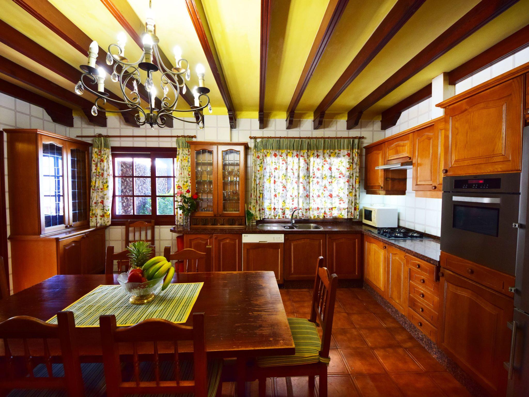 Dieses komfortable Ferienhaus auf den Kanarischen Inseln bietet 249 m2 Wohnfläche. Das einzigartige Design ermöglicht viel natürliches Licht im gesamten Gebäude. Im Zentrum des Hauses gibt es einen bezaubernden "Innenhof", um den sich alle Zimmer verteilen. Die Küche ist komplett ausgestattet mit allem, was zum Kochen benötigt wird. Darüber hinaus gibt es eine Außenküche neben dem großzügigen Grillbereich, dem privaten Pool (4 x 8 Meter) und dem Garten, der eine Gesamtfläche von 1800 m2 umfasst. Ein privater Parkplatz ist ebenfalls vorhanden.