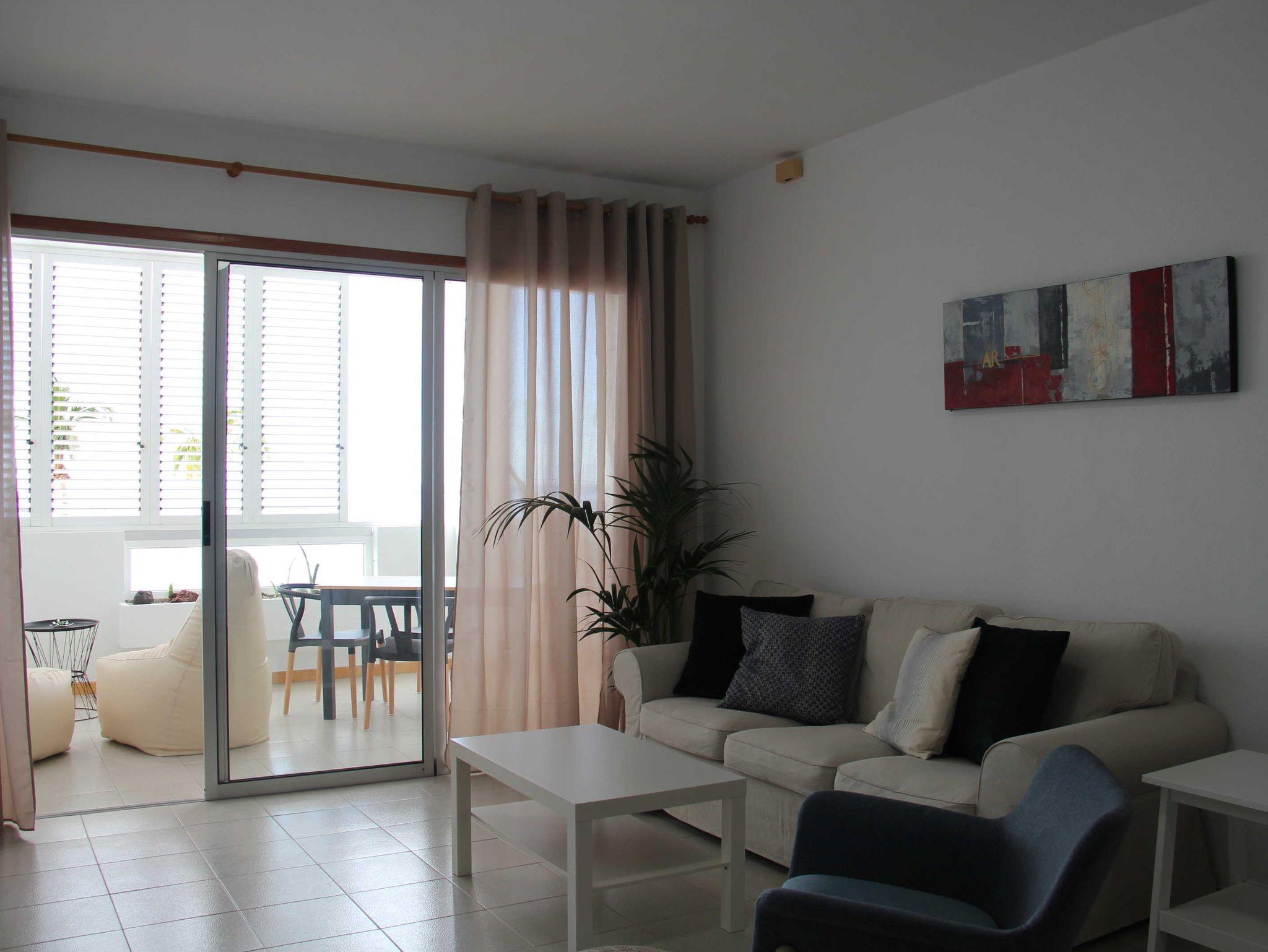 Große Terrassentüren trennen den Balkon vom modern-puritischen Wohnzimmer. Ein gemütlicher 3-Sitzer nebst Loungechair und 2 Beistelltischen sowie Fernseher vis-á-vis ? mehr braucht es nicht, um sich wohl zu fühlen. Zudem findet das Leben in Puerto Naos draußen statt ? entweder auf dem Balkon oder am Strand bzw. der Strandpromenade. Trubel sucht man hier jedoch vergebens. Es ist beschaulich und sehr auf Entspannung ausgerichtet.