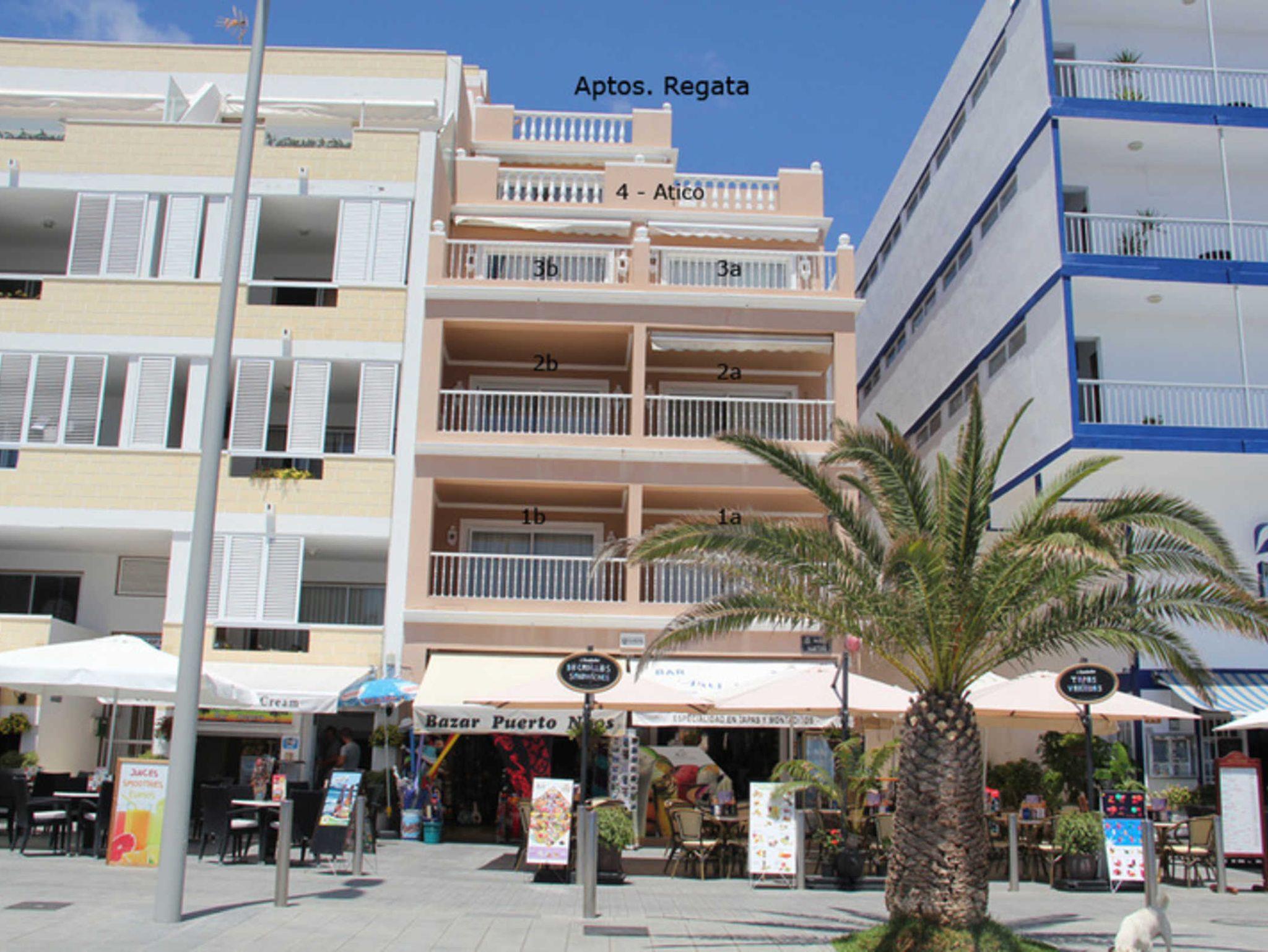 Das Apartmenthaus Regata liegt in Puerto Naos direkt gegenüber dem breiten Lavasandstrand mit Palmen.
