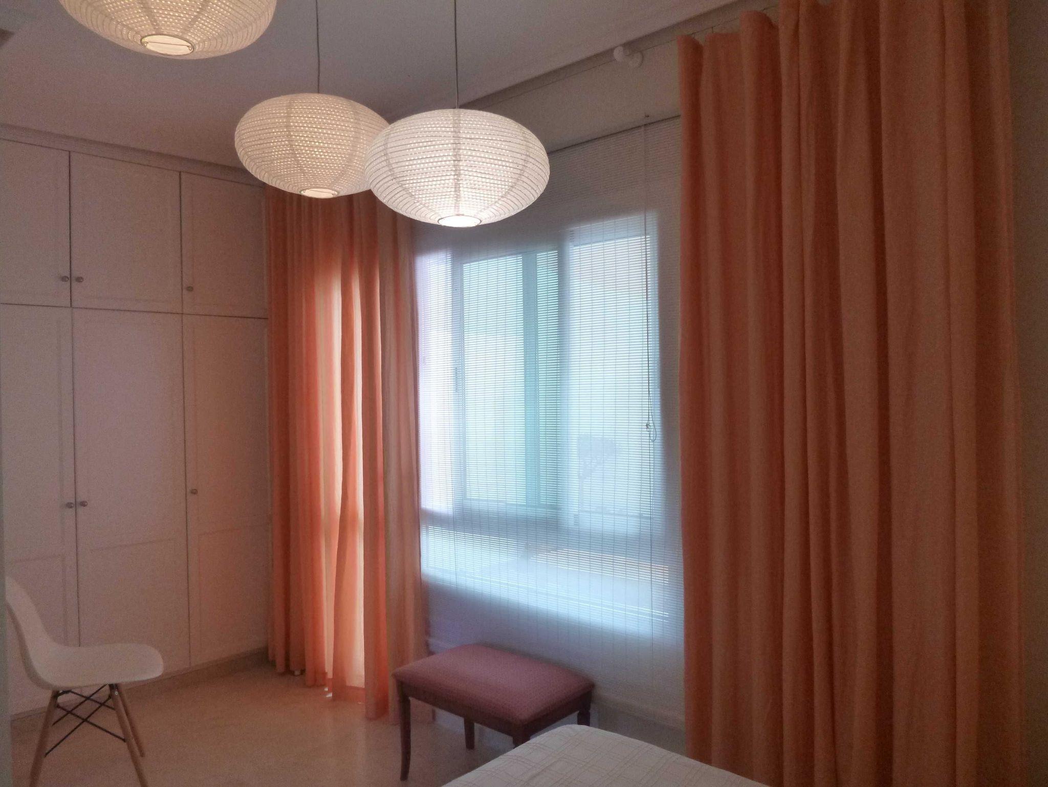 Am hinteren Ende der Wohnung liegt das Schlafzimmer. Es bietet ein bequemes Doppelbett, zwei Nachttische, Leselampen, eine kleine Bank, eine weitere Sitz- bzw. Ablagemöglichkeit, einen Einbaukleiderschrank mit Safe und eine große (Jalousie-und Vorhanggeschützte) Fensterfront mit Terrassentür.