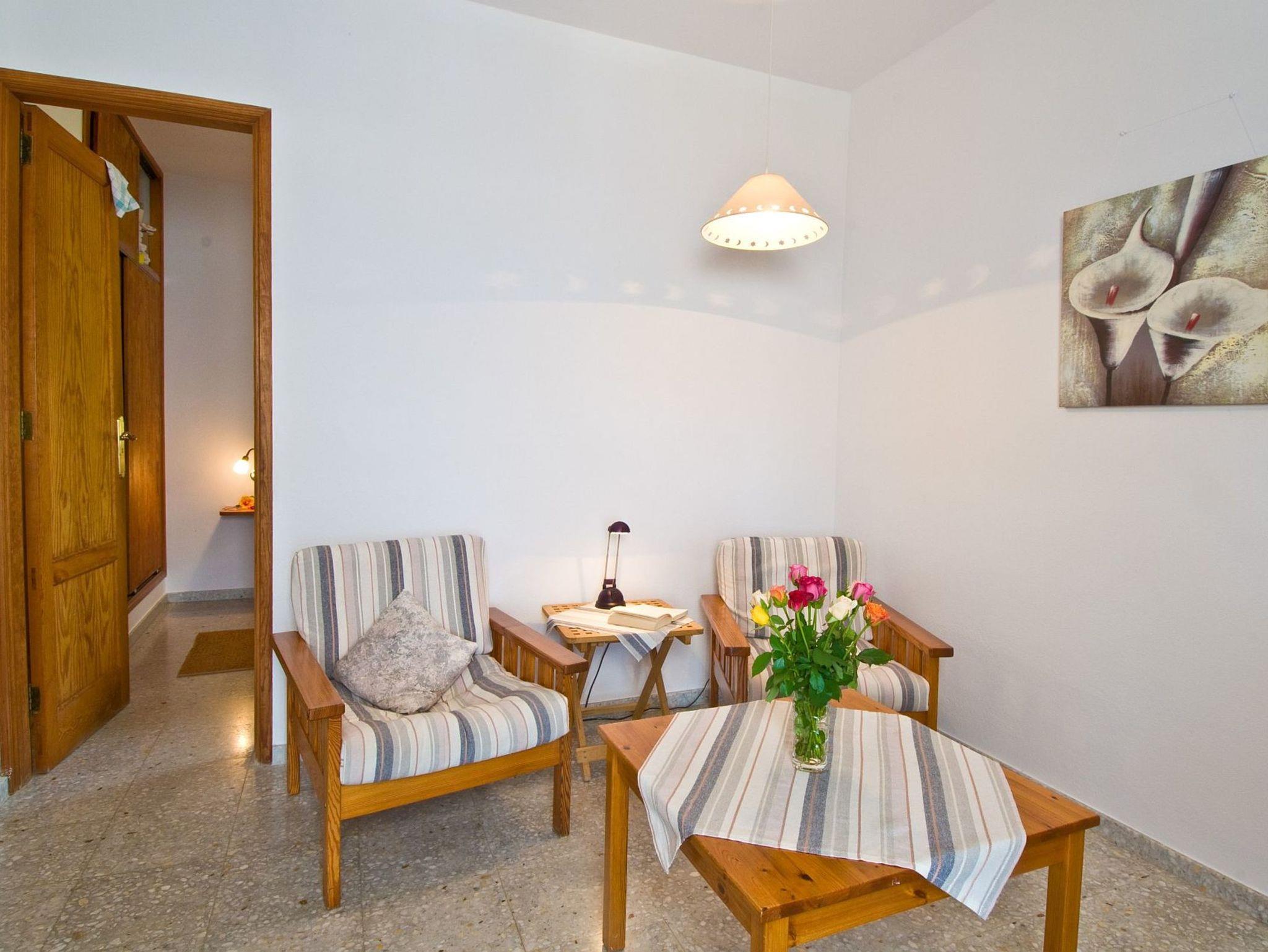 Der Wohnraum, den Sie über die Terrasse betreten, ist mit 2 Sesseln , einem kleinen Fernseher mit Sat-TV sowie Büchern und Spielen ausgestattet.