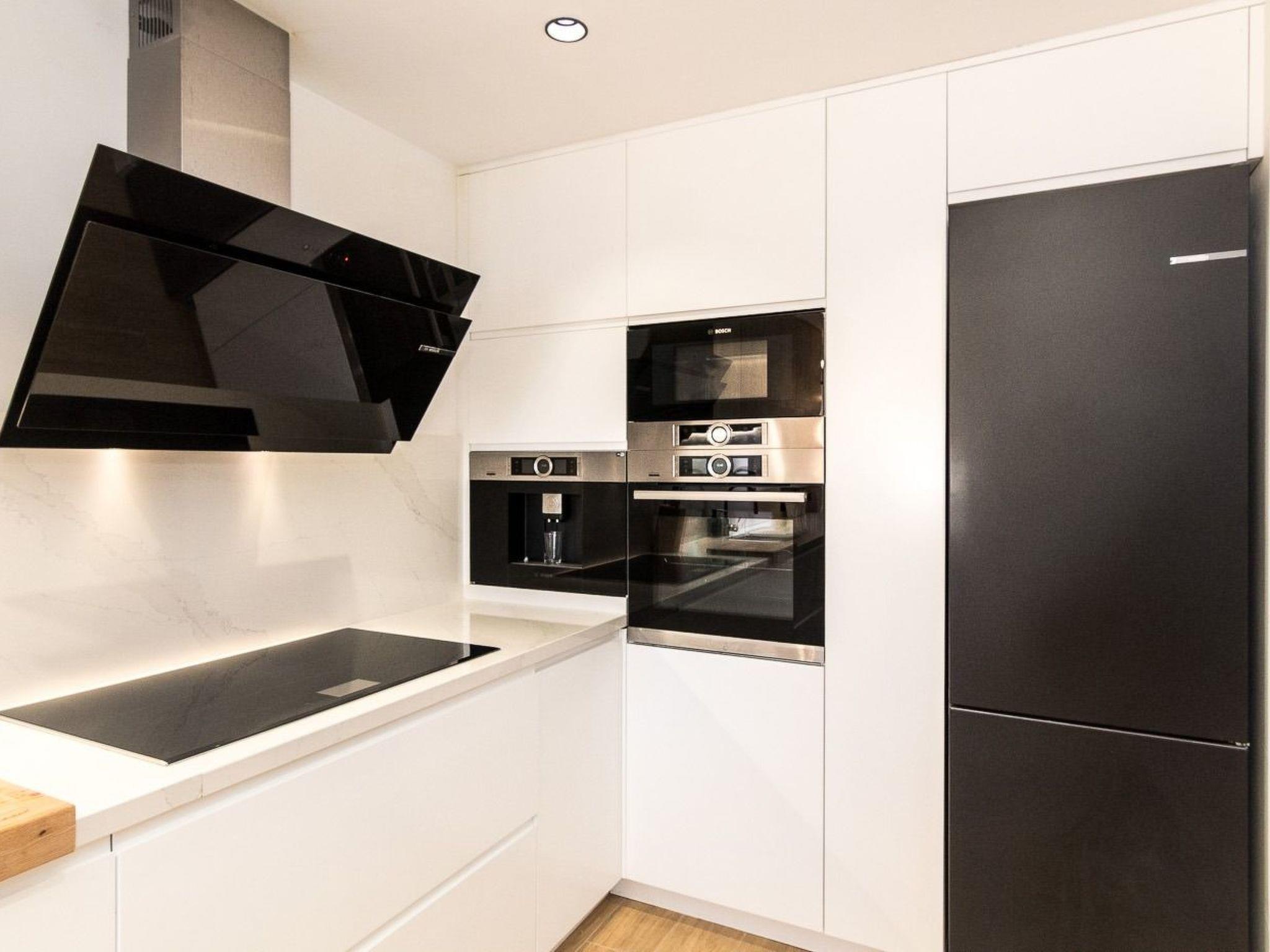 Die Küche ist mit hochwertigen Geräten (Bosh) ausgestattet, darunter 3 verschiedene Kaffeemaschinen sowie eine Waschmaschine und ein Trockner. Die gesamte Wohnung ist klimatisiert. Das Wohnzimmer hat eine Lounge und Smart TV mit Netflix. WIFI kostenlos.