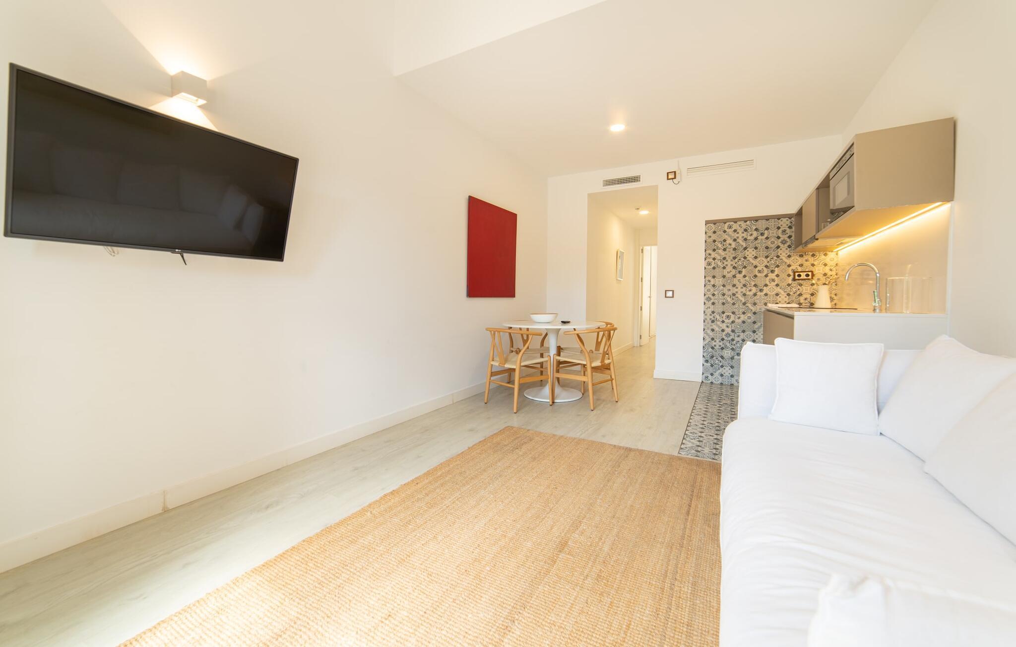 Das Apartment „Pula Golf Resort 11“ weiß mit seinem trendigen Ambiente zu begeistern: Weiße Wände, moderne Böden und Fliesen in Kombination mit ästhetischen Möbeln lassen sofort das zeitgenössische Inselgefühl aufkommen. Die Ausstattung bietet vielfältige Möglichkeiten für einen gediegenen Indoor-Aufenthalt und natürlich auch für die unabhängige Selbstversorgung im Urlaub. Sie wohnen im Erdgeschoss und verfügen über eine Küchenzeile, einen Essbereich und einen Wohnbereich. Eine erholsame Nachtruhe finden Sie im stilvoll eingerichteten Schlafzimmer mit Doppelbett und auf der Schlafcouch. Das stilvolle Badezimmer verfügt über eine ebenerdige Dusche. Sehr angenehm: Dank der Warm-Kalt-Klimaanlage genießen Sie das ganze Jahr über perfekte Innentemperaturen. Als besonderes Extra gibt es außerdem einen täglichen Reinigungsservice, der kostenfrei ist. Unser Fazit: Diese Wohnung auf Mallorca bietet eine außergewöhnliche Lage und vereint diese mit einem sehr breiten Spektrum an Annehmlichkeiten und Wellnessangeboten! Der Golfplatz Pula liegt in einer der schönsten Gegenden Mallorcas. Die moderne Wohnung „Pula Golf Resort 11“ mit tollem Gemeinschaftspool und Garten sowie wunderschöner Außenlandschaft und privater Terrasse liegt im Osten der Insel direkt am Golfplatz. Sie liegen zwischen Cala Millor, Costa dels Pins und Capdepera und haben aufgrund der unmittelbaren Nähe zur Straße hervorragende Einkaufs- und Gastronomiemöglichkeiten in den umliegenden Dörfern. Die Lage sorgt außerdem dafür, dass Sie in einer angenehmen Fahrzeit von nur 5-10 Minuten wunderschöne Stadtstrände wie den von Canyamel oder die der Costa dels Pins erreichen.
