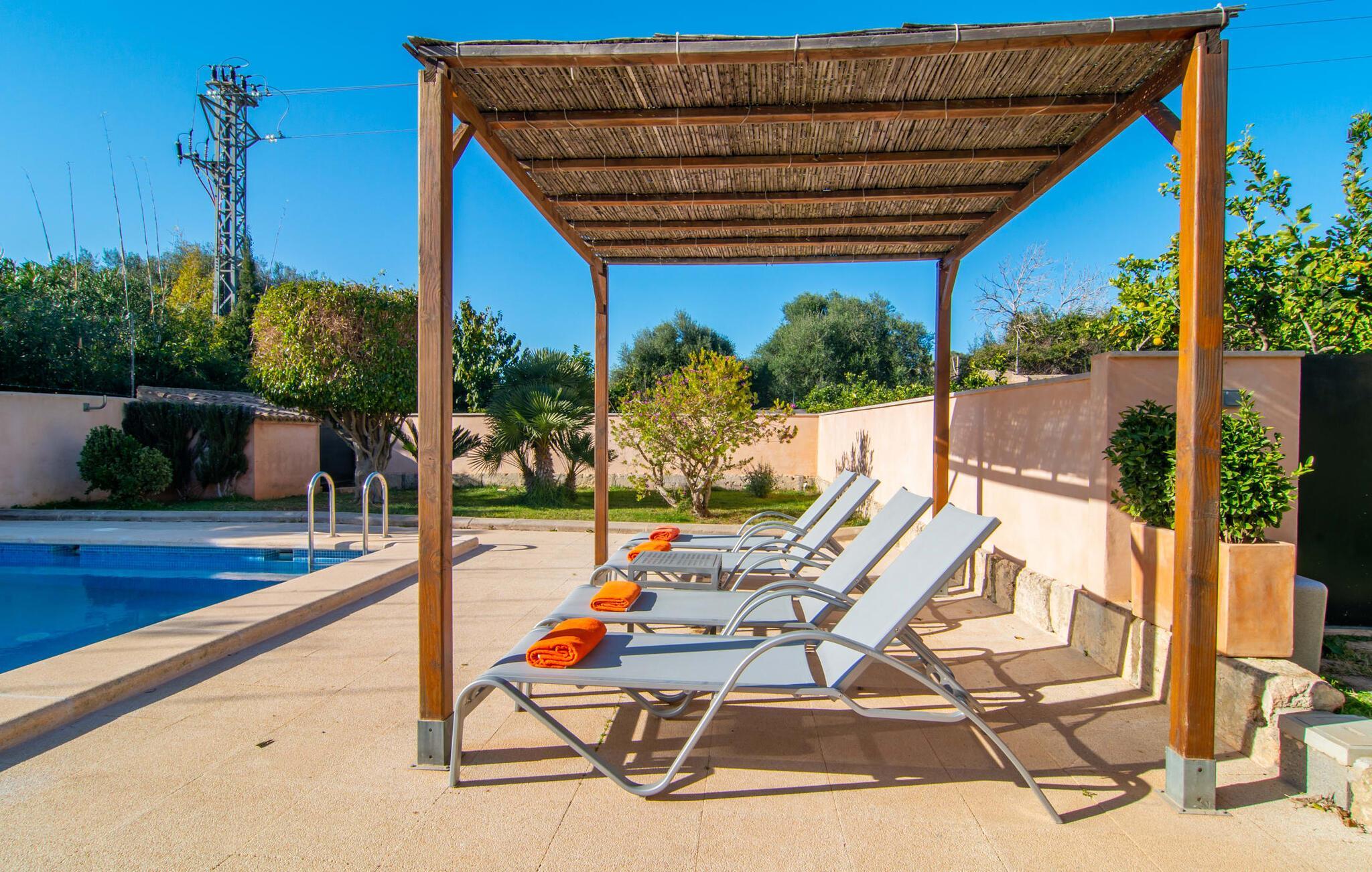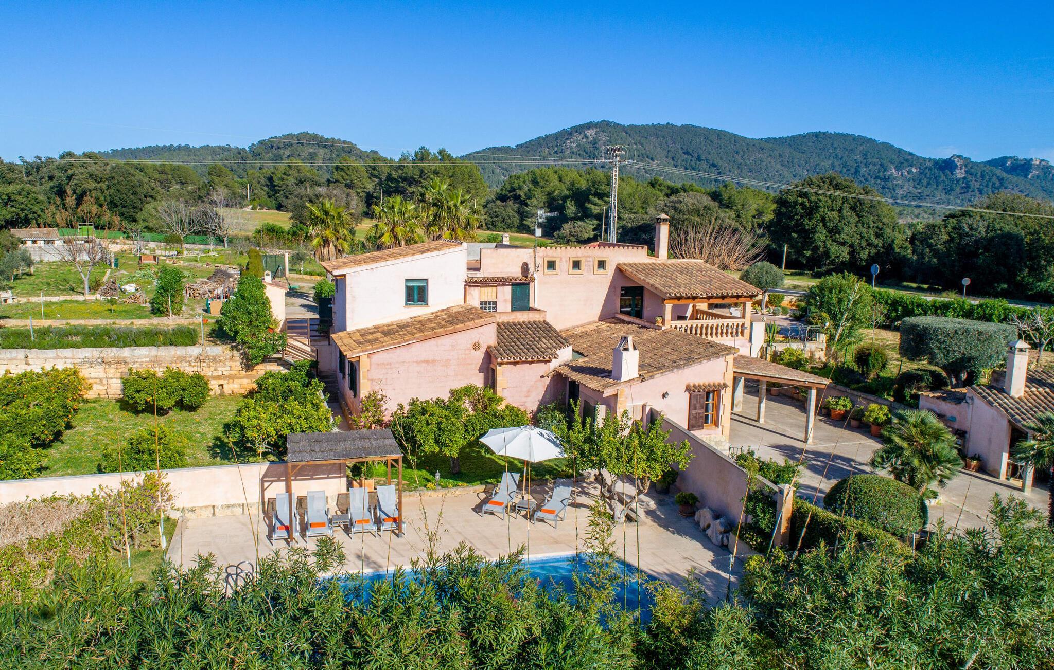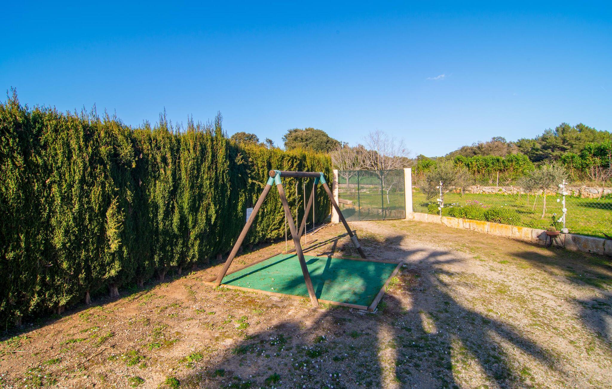 Diese wunderbar rustikale und zugleich moderne Finca im Osten Mallorcas besticht nicht nur durch ihre familienfreundliche Ausstattung, sondern auch durch ihren charmanten Landhauscharakter, der sowohl außen als auch innen deutlich zu erkennen ist. Damit passt das in herrlicher Alleinlage gelegene Ferienhaus mit mallorquinischem Bauernhaus-Flair besonders gut in diese küstennahe Region, die durch ihre sanft hügelige grüne Landschaft besticht. Die Finca ist von zahlreichen Bäumen und einem Obstgarten umgeben. Gleichzeitig bietet die private Poollandschaft mit umlaufender Terrasse zahlreiche Positionen für Sonnenliegen. Einige davon stehen unter dem Schutz einer stilvollen Pergola oder eines Sonnenschirms. Für die kleinen Besucher steht außerdem eine Kinderschaukel zur Verfügung, sodass für aktive Unterhaltung bestens gesorgt ist. Gemütliche Sitzgelegenheiten im Freien gibt es am gemauerten Grill mit integrierter Außenküche. Vom überdachten Balkon mit weiterem Essbereich auf der Dachterrasse im ersten Stock genießen Sie eine herrliche Aussicht.