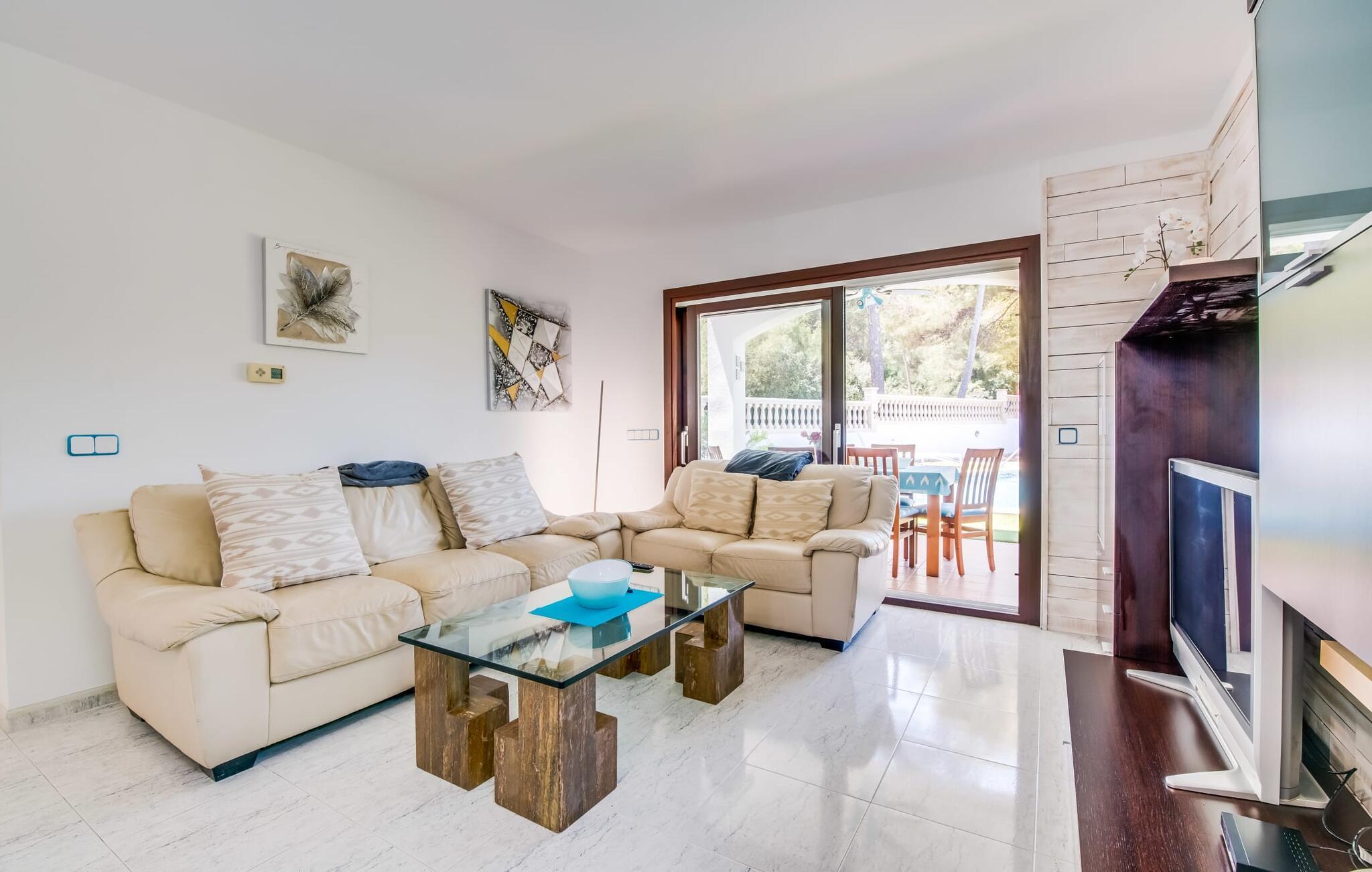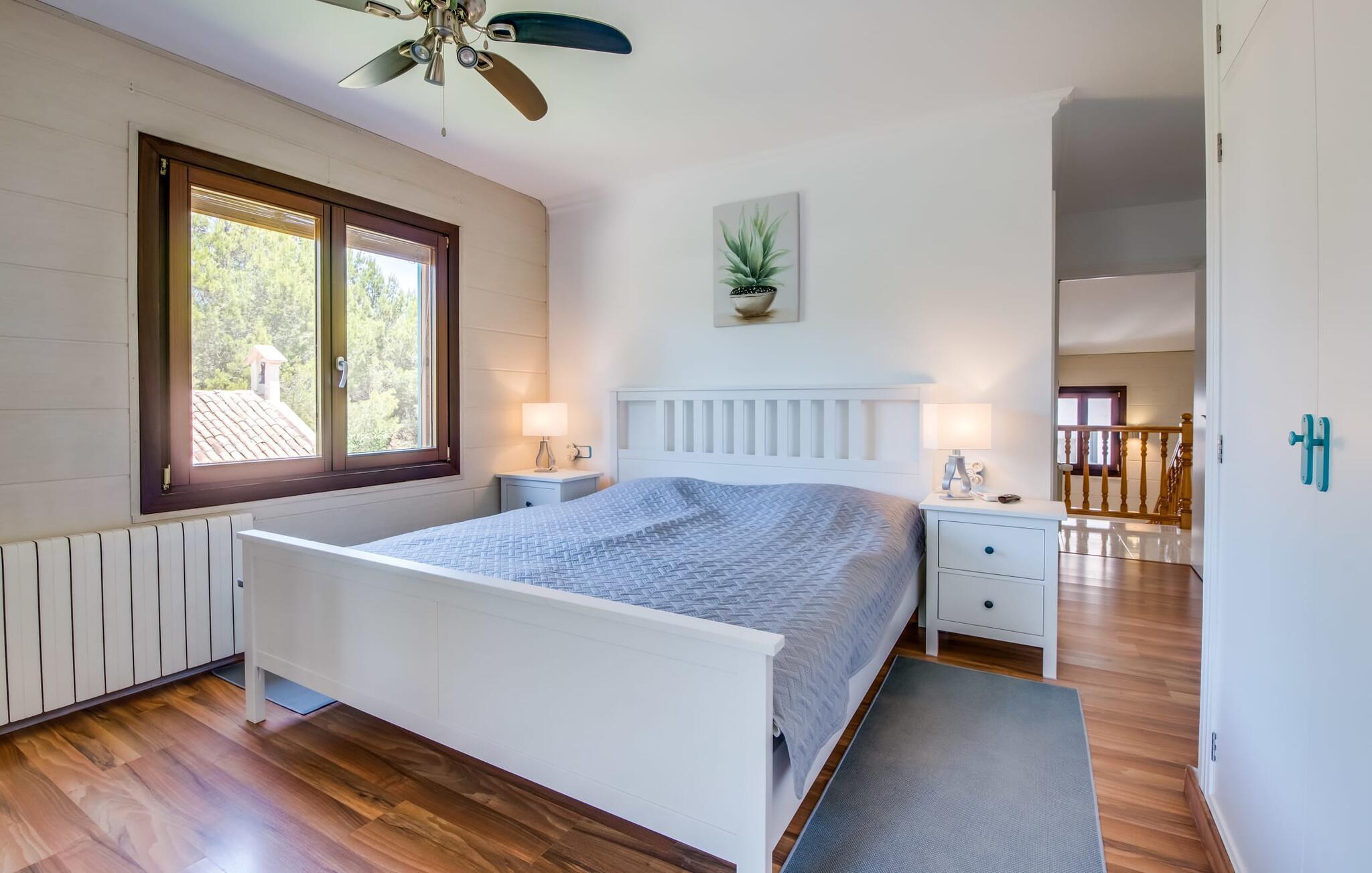Die Inneneinrichtung ist modern, mit viel Weiß, kombiniert mit verschiedenen Naturtönen und dunklem Holz, in dem man sich sofort wohlfühlt. Im Erdgeschoss gibt es einen offenen Wohn- und Essbereich sowie die gut ausgestattete Küche mit direktem Zugang zum Außenbereich. Ebenfalls im Erdgeschoss gibt es ein Schlafzimmer und ein modernes Badezimmer. Über eine Treppe gelangt man in die erste Etage mit zwei Schlafzimmern, jeweils mit Bad en Suite. Am Meer: Auch mit kleinen Kindern ist das kein Problem, wenn Sie Ihren Urlaub in der Villa „Punta Blava“ verbringen. Nur etwa 100 m trennen Sie von der Küste. Das schöne Haus mit türkisfarbenen Fensterläden und Swimmingpool liegt auf einem langgestreckten Grundstück in einer Urbanisation an der Ostküste der Insel. Cala Ratjada ist mit dem Auto weniger als 4 km entfernt. Die nächsten Strände wie Font de Sa Cala und Platja de Son Moll sind nur 1,4 km bzw. 2 km entfernt. Eine kleine Bucht mit Zugang zum Meer und einem kleinen Strand liegt direkt vor Ihrer Tür.