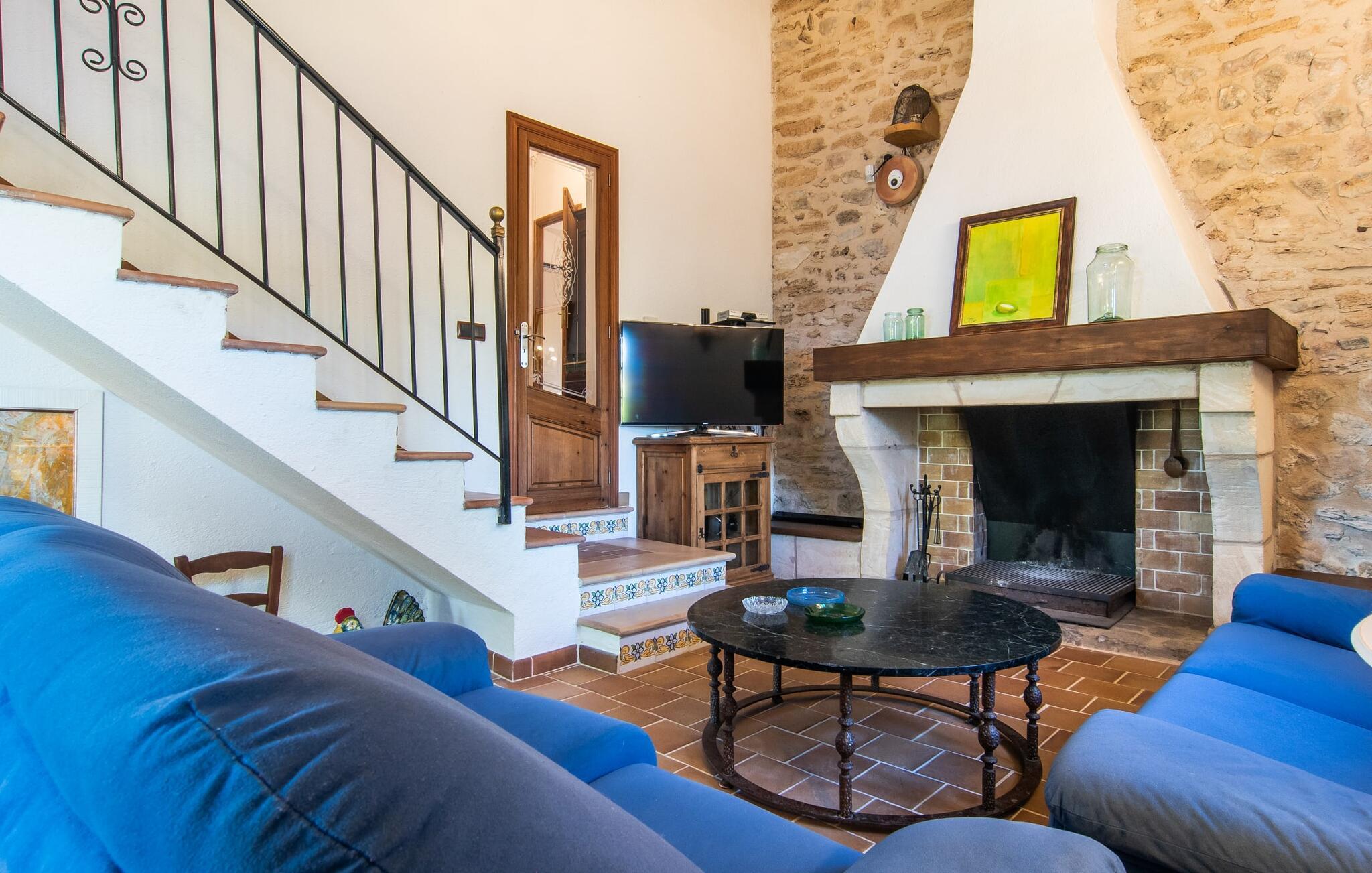Das traditionell eingerichtete Haus verfügt über klassische mallorquinische Holzbalkendecken, helle Farbtöne an den Wänden und Natursteinelemente. In Kombination mit einigen rustikalen Möbeln entsteht ein uriges Ambiente, das zum Verweilen einlädt. Von beiden Seiten führt ein schöner Eingang zu einem Schlafzimmer. Weiter unten auf der linken Seite befindet sich die Treppe zum Obergeschoss. Wie die Badezimmer auf dieser Etage bietet auch die Küche alles, was Sie brauchen, einschließlich eines Wasserkochers und einer Filterkaffeemaschine. Interessanterweise erstreckt sich das Wohnzimmer über zwei Ebenen. Auf der unteren Ebene gibt es außerdem einen Essbereich, um drinnen eine gemeinsame Mahlzeit zu genießen. Hier ist auch der Flachbildfernseher mit Satellitenanschluss installiert. Auf den bequemen Sofas können Sie es sich nach Lust und Laune bequem machen und entspannen. Für Ihre Unterhaltung stehen Bücher, Spielzeug und ein DVD-Player zur Verfügung – obwohl Sie ohnehin wahrscheinlich nicht auf der Strecke bleiben werden – und das etwas schwache Internetsignal reicht aus, um wichtige What'sapp-Nachrichten an Ihre Lieben zu Hause zu senden. In der obersten Etage, die als separate Wohneinheit genutzt wird, befindet sich ein offenes Wohn-/Esszimmer mit angeschlossener kleiner Küche. Eine Tür zur Terrasse gibt Ihnen die Möglichkeit, direkt nach draußen zu gehen. Auf dieser Etage befinden sich zwei Schlafzimmer und ein Badezimmer. Dieser obere Teil des Hauses mit eigenem Eingang ist komplett in einem moderneren Stil eingerichtet. Die Schlafzimmer des Hauses sind individuell gestaltet und vermitteln jeweils eine heimelige Atmosphäre. Wir sind sicher, dass hier jeder seinen persönlichen Ruheplatz findet. Die Badezimmer sind funktional und geschmackvoll gestaltet. Für Ihren Komfort stehen Ihnen ein Bügeleisen und ein Haartrockner zur Verfügung. Da die Villa in zwei Wohnbereiche aufgeteilt ist, eignet sie sich ideal für mehrere Familien, die ihren Urlaub gerne gemeinsam verbringen und gleichzeitig ein gewisses Maß an Privatsphäre bewahren möchten.