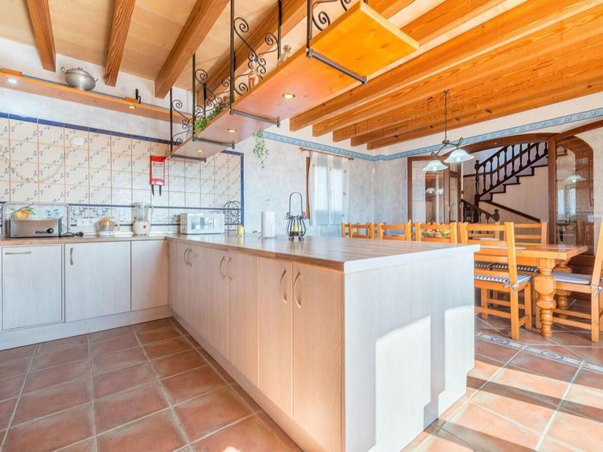 Es gibt insgesamt 5 Schlafzimmer auf zwei Etagen, alle mit Doppelbetten und Klimaanlage und 5 Bäder, davon 4 en suite. Im Erdgeschoss befindet sich 1 Doppelschlafzimmer mit eigenem Bad und Zugang zu einer privaten Terrasse. Außerdem gibt es 1 Gästebad mit Toilette. Hier finden Sie auch die voll ausgestattete Küche mit Geschirrspüler, Cerankochfeld und Backofen, Kühl-/Gefrierschrank und einem großen Esstisch.