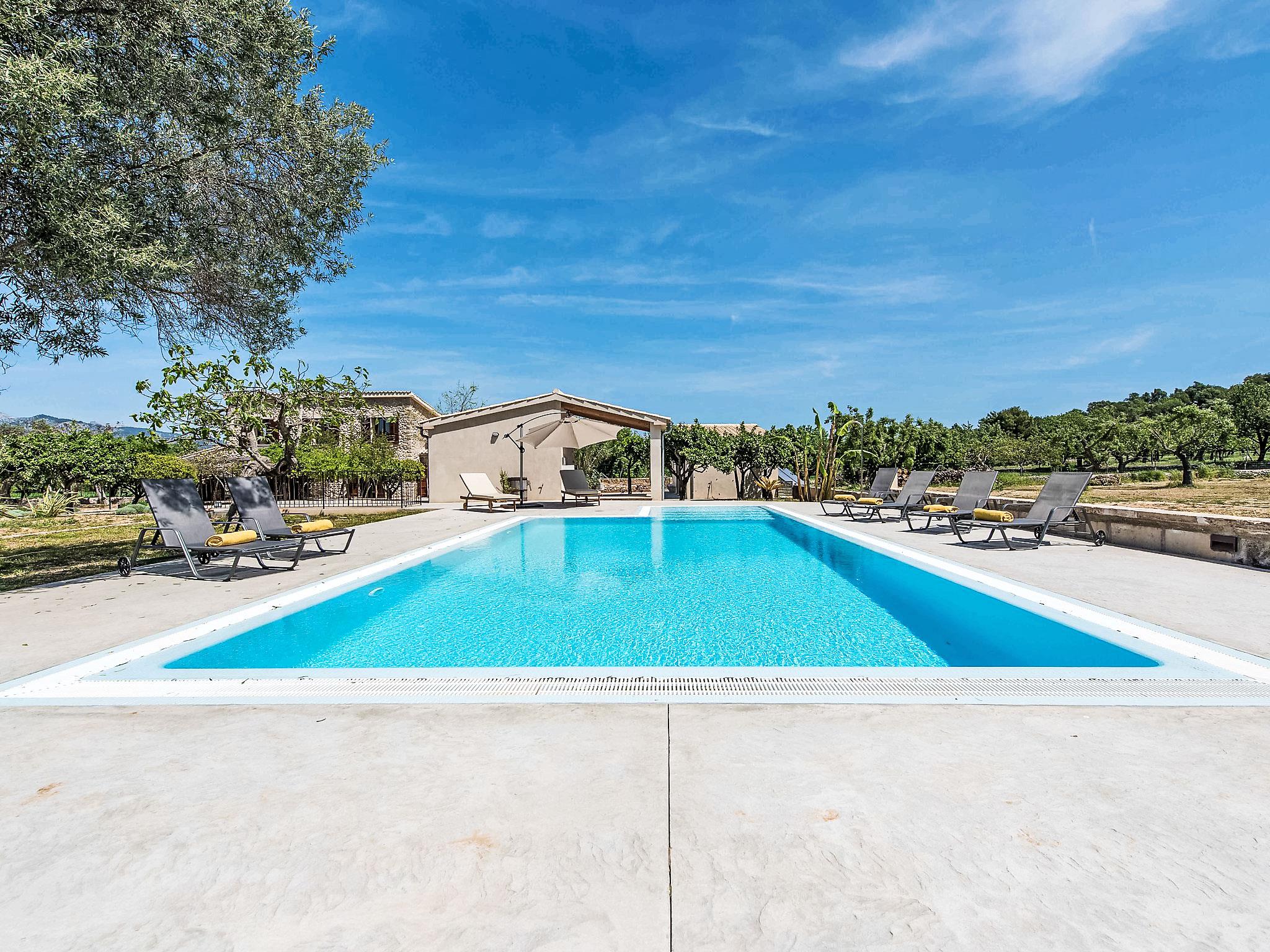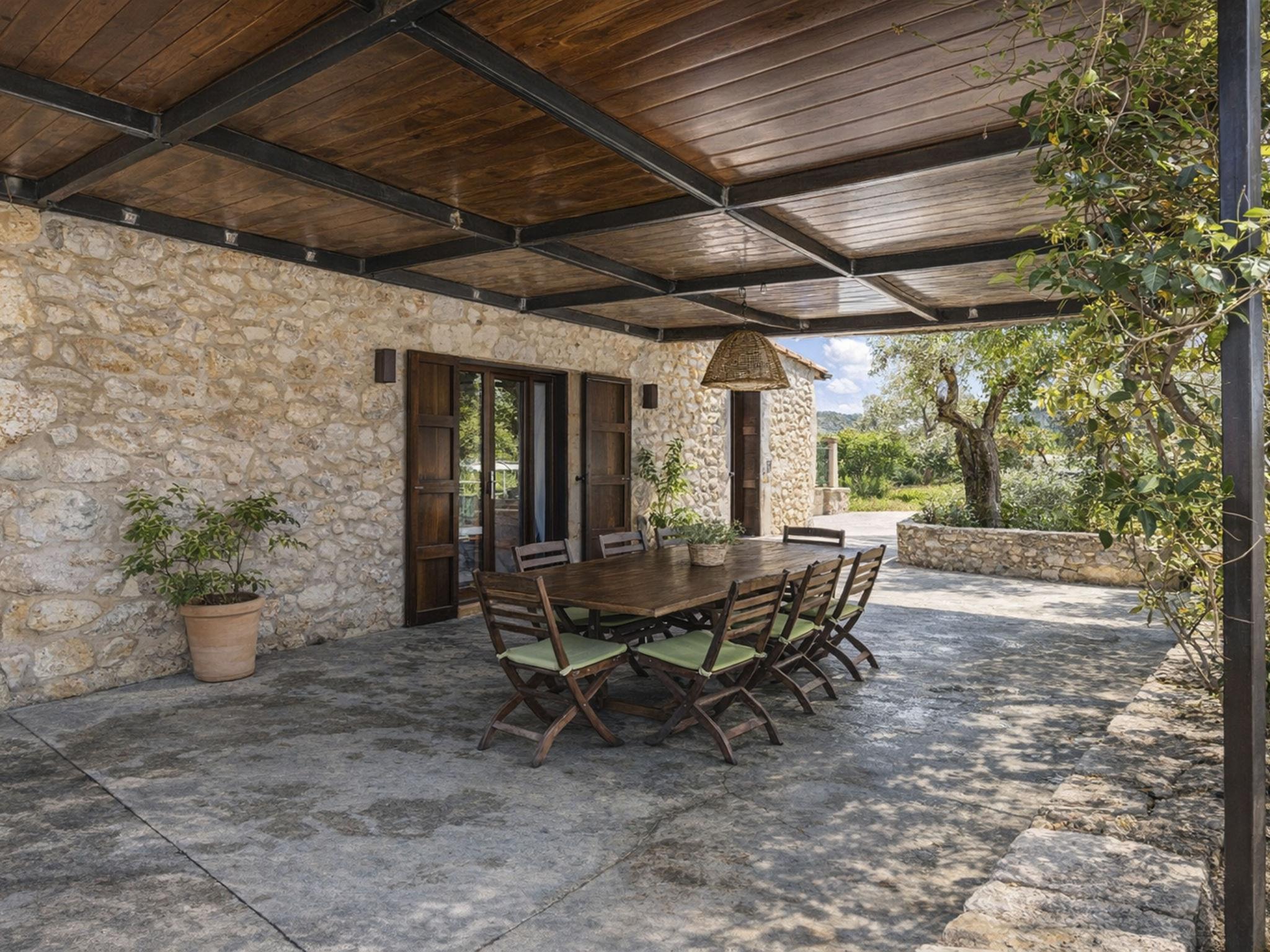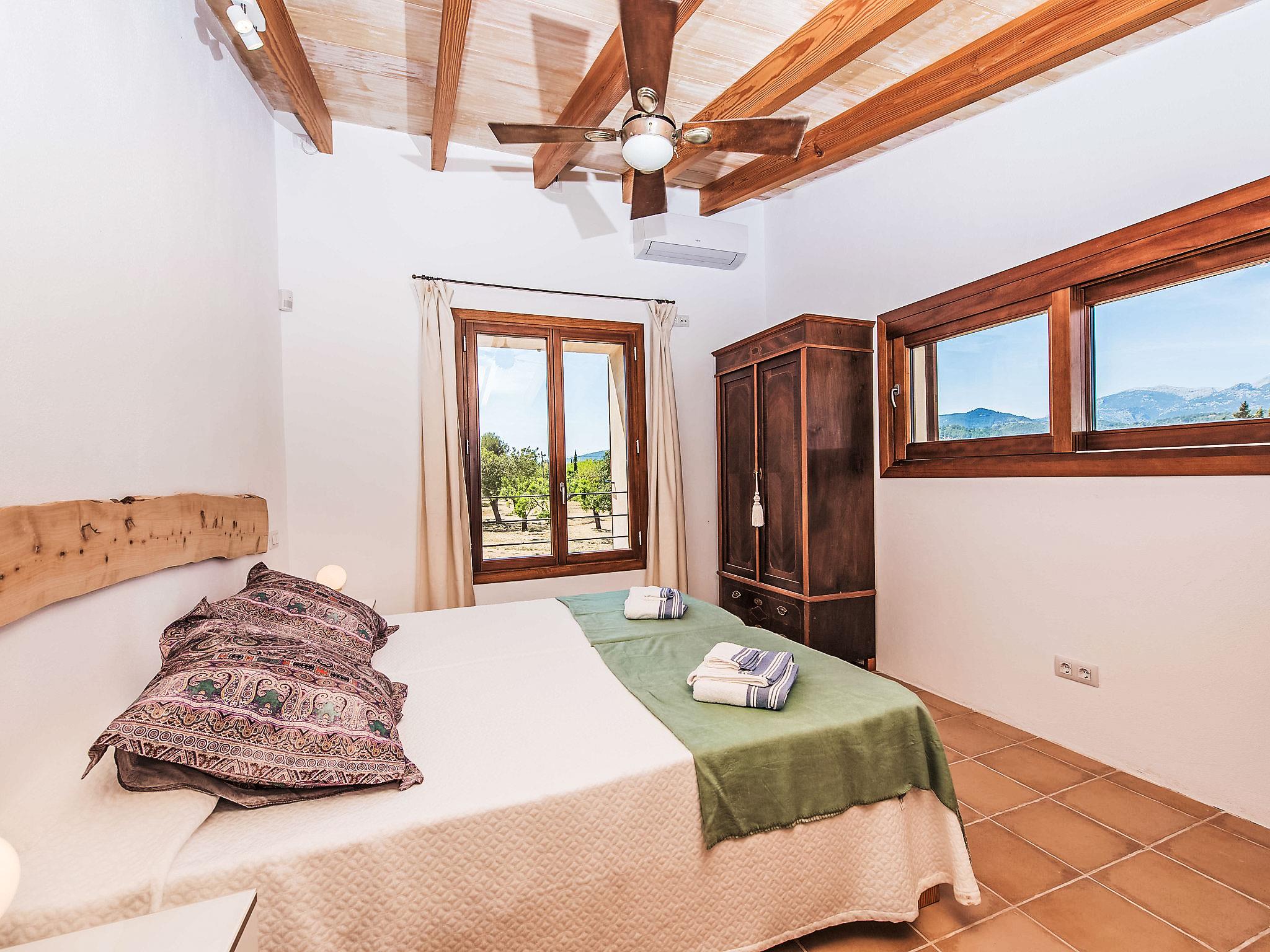 "Cas Ciutada", 5-Zimmer-Villa 200 m2 auf 2 Stockwerken. Objekt geeignet für 8 Erwachsene. Geräumig und hell, vollständig renoviert, komfortabel und modern eingerichtet: Wohn-/Esszimmer mit Schwedenofen (nur Deko), Esstisch, Digital-TV, Flachbildschirm, Klimaanlage und Warmluftheizung. Ausgang zum Gartensitzplatz. 1 Doppelzimmer mit 1 franz. Bett (150 cm, Länge 200 cm), Ventilator. Ausgang zur Terrasse. 1 grosses Doppelzimmer mit 2 Betten (90 cm, Länge 200 cm), Klimaanlage und Warmluftheizung. Ausgang zur Terrasse. Küche (Backofen, Geschirrspüler, 4 Glaskeramikplatten, Toaster, Wasserkocher, Mikrowelle, Tiefkühler, elektrische Kaffeemaschine) mit Esstisch. Ausgang zur Terrasse. 3 Duschen/WC. Obergeschoss: 1 Doppelzimmer mit 2 Betten (90 cm, Länge 200 cm), Klimaanlage und Warmluftheizung. 1 Doppelzimmer mit 1 franz. Bett (150 cm, Länge 200 cm), Klimaanlage und Warmluftheizung. Bad/WC. Grosser Gartensitzplatz, Rasen, Laube. Terrassenmöbel, Gartengrill, Liegestühle (8), Loggia. Sehr schöne Sicht auf die Berge und die Landschaft. Zur Verfügung: Waschmaschine, Bügeleisen, Kinderhochstuhl, Babybett bis 2 Jahre, Haartrockner. Internet (WLAN, gratis). Parkplatz (eingezäunt) beim Haus. Bitte beachten: ein Doppelzimmer liegt außerhalb der Wohnung. Nichtraucher-Haus. Feuerlöscher, kein Fahrstuhl. Keine interne Verbindung zwischen den separaten Wohneinheiten. Der ausgeschriebene Pool ist zur alleinigen Nutzung. ETV/4941 // Reg. Nr.: ESFCTU00000702200023993100000000000000000000ETV/49412