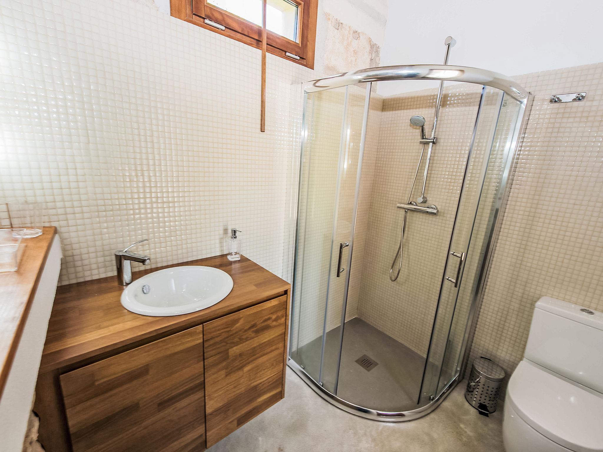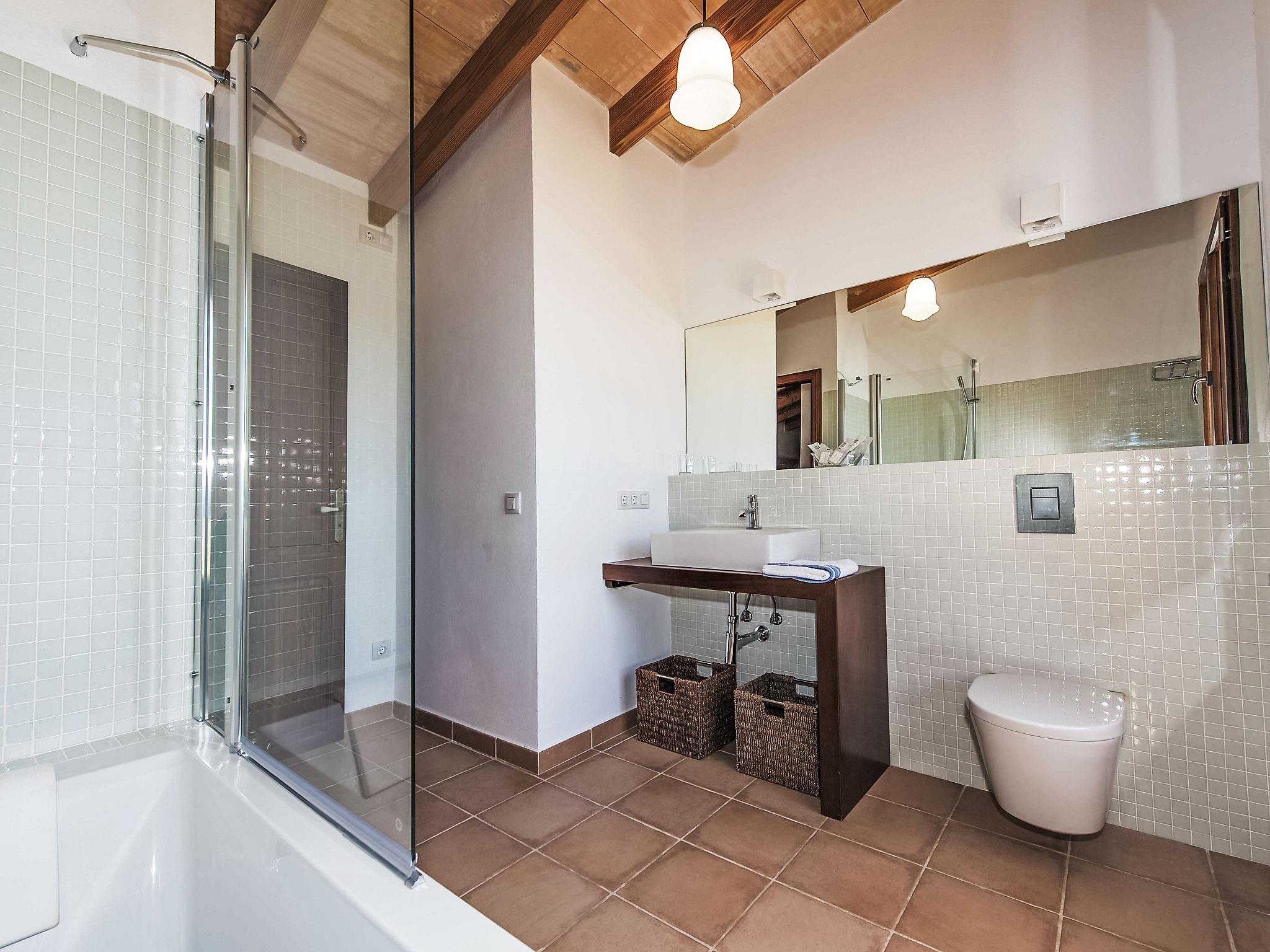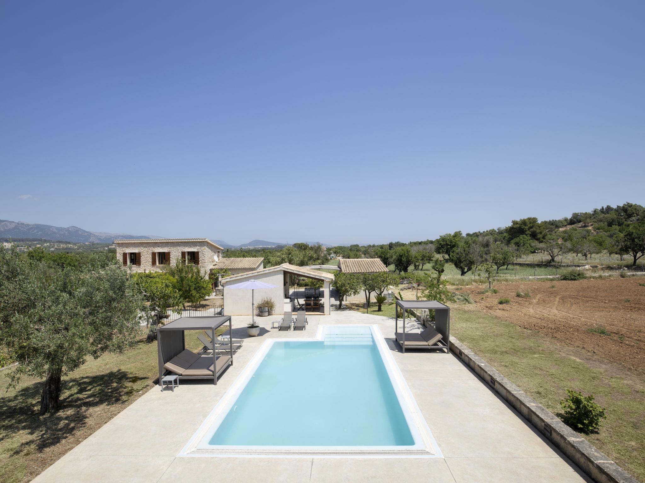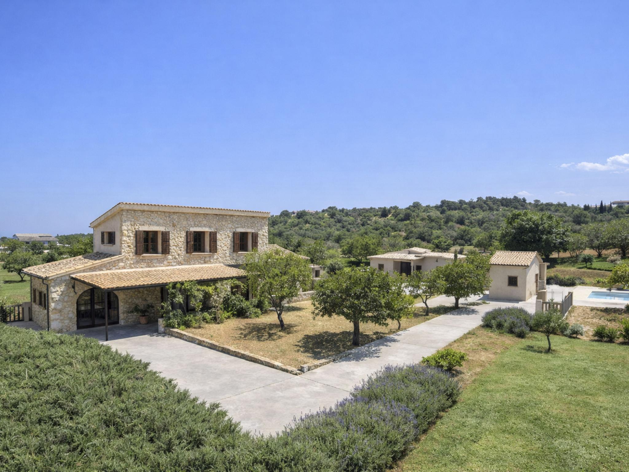 "Cas Ciutada", 5-Zimmer-Villa 200 m2 auf 2 Stockwerken. Objekt geeignet für 8 Erwachsene. Geräumig und hell, vollständig renoviert, komfortabel und modern eingerichtet: Wohn-/Esszimmer mit Schwedenofen (nur Deko), Esstisch, Digital-TV, Flachbildschirm, Klimaanlage und Warmluftheizung. Ausgang zum Gartensitzplatz. 1 Doppelzimmer mit 1 franz. Bett (150 cm, Länge 200 cm), Ventilator. Ausgang zur Terrasse. 1 grosses Doppelzimmer mit 2 Betten (90 cm, Länge 200 cm), Klimaanlage und Warmluftheizung. Ausgang zur Terrasse. Küche (Backofen, Geschirrspüler, 4 Glaskeramikplatten, Toaster, Wasserkocher, Mikrowelle, Tiefkühler, elektrische Kaffeemaschine) mit Esstisch. Ausgang zur Terrasse. 3 Duschen/WC. Obergeschoss: 1 Doppelzimmer mit 2 Betten (90 cm, Länge 200 cm), Klimaanlage und Warmluftheizung. 1 Doppelzimmer mit 1 franz. Bett (150 cm, Länge 200 cm), Klimaanlage und Warmluftheizung. Bad/WC. Grosser Gartensitzplatz, Rasen, Laube. Terrassenmöbel, Gartengrill, Liegestühle (8), Loggia. Sehr schöne Sicht auf die Berge und die Landschaft. Zur Verfügung: Waschmaschine, Bügeleisen, Kinderhochstuhl, Babybett bis 2 Jahre, Haartrockner. Internet (WLAN, gratis). Parkplatz (eingezäunt) beim Haus. Bitte beachten: ein Doppelzimmer liegt außerhalb der Wohnung. Nichtraucher-Haus. Feuerlöscher, kein Fahrstuhl. Keine interne Verbindung zwischen den separaten Wohneinheiten. Der ausgeschriebene Pool ist zur alleinigen Nutzung. ETV/4941 // Reg. Nr.: ESFCTU00000702200023993100000000000000000000ETV/49412