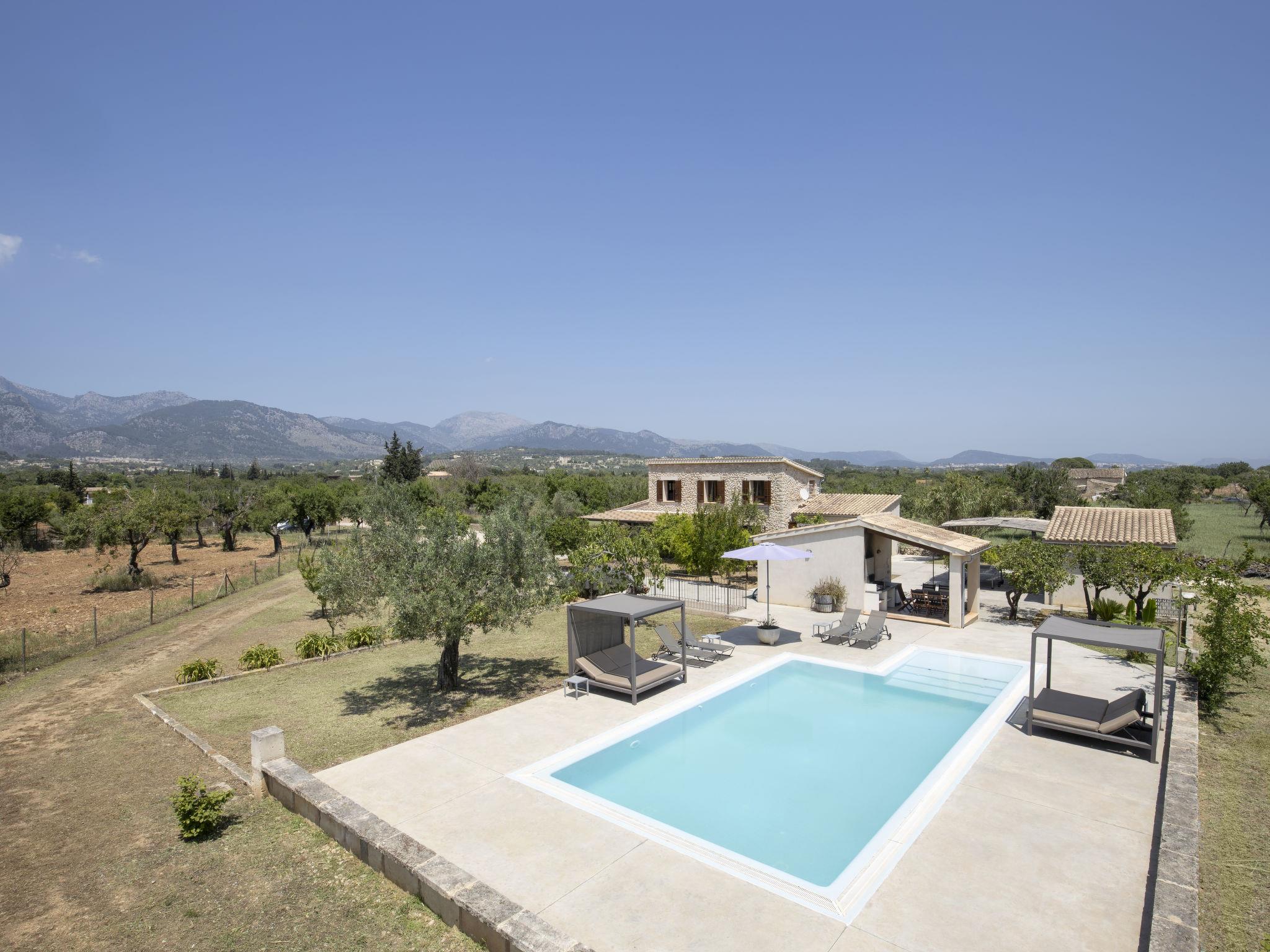Grosse, moderne, rustikale Finca "Cas Ciutada", Baujahr 1850, renoviert im Jahre 2015, umgeben von Feldern. Mietobjekt bestehend aus Haupt- und Nebengebäude, ausserhalb des Ortes, 3 km vom Zentrum von Selva, ruhige, sonnige Lage, 25 km vom Meer, im Grünen. Zur Alleinbenutzung: naturbelassenes Grundstück (eingezäunt) mit Rasen und Pflanzen, Schwimmbad (12 x 5 m, 50 - 180 cm tief, saisonale Verfügbarkeit: 01.Jan. - 31.Dez.). WC im Poolbereich, Aussendusche, Tischtennis, Sitzplatz, Laube, Pergola, Gartenmöbel, Grill, Grillhaus, Poolpflege durch den Besitzer/Gärtner. Im Hause: Internetzugang, Wireless LAN, Einstellraum für Fahrräder, Klimaanlage. Parkplatz beim Haus auf dem Grundstück. Lebensmittelgeschäft 2 km, Supermarkt 3 km, Restaurant 3 km, Bar 3 km, Bushaltestelle "Selva 1 (58011)." 3 km, Sandstrand "Playa de Port d'Alcúdia" 27.5 km. Sporthafen 27.8 km, Golfplatz (18 Loch) 24 km, Tennis 4 km, Reitstall 5 km, Sportzentrum 5 km, Wanderwege ab Haus 4 km, Radweg 100 m. Nahe gelegene Sehenswürdigkeiten: Ciudad de Inca 4 km, Pueblos,Campanet,Caimari,Moscari,Mancor. Palma City 31 km, Mallorca Fashion Oulet & Cinemas 24 km, Playa de Formentor 35 km, Ermita de Lluc 15 km. Wandergebiete: Serra de Tramuntana, Puig de Santa Magdalena. Bitte beachten: Fahrzeug empfohlen. Geeignet für Senioren. Objekt geeignet für 8 Erwachsene. Der Besitzer akzeptiert keine Jugendgruppen. Tiere in der Umgebung. Flugplatz 40 km vom Haus.