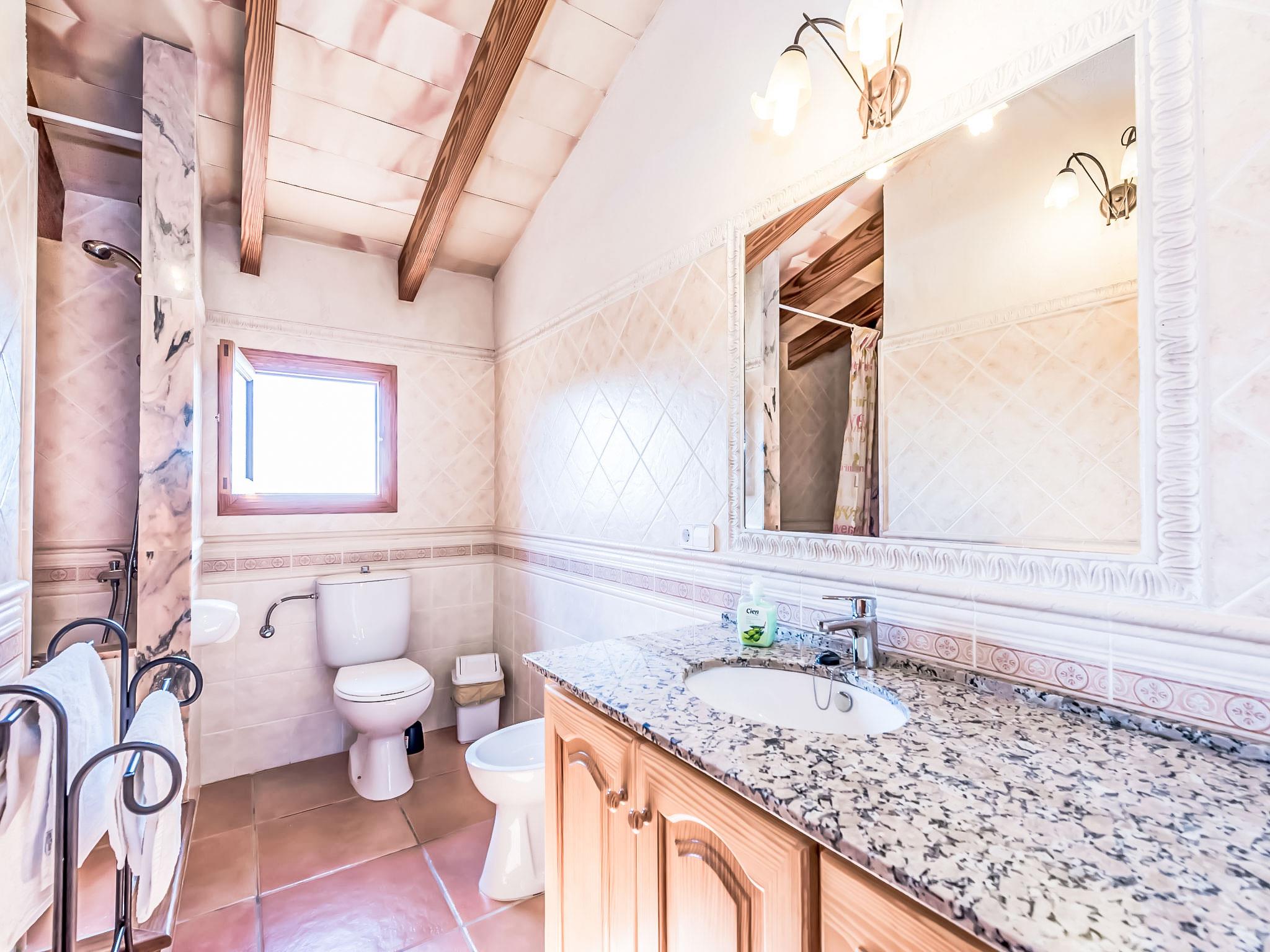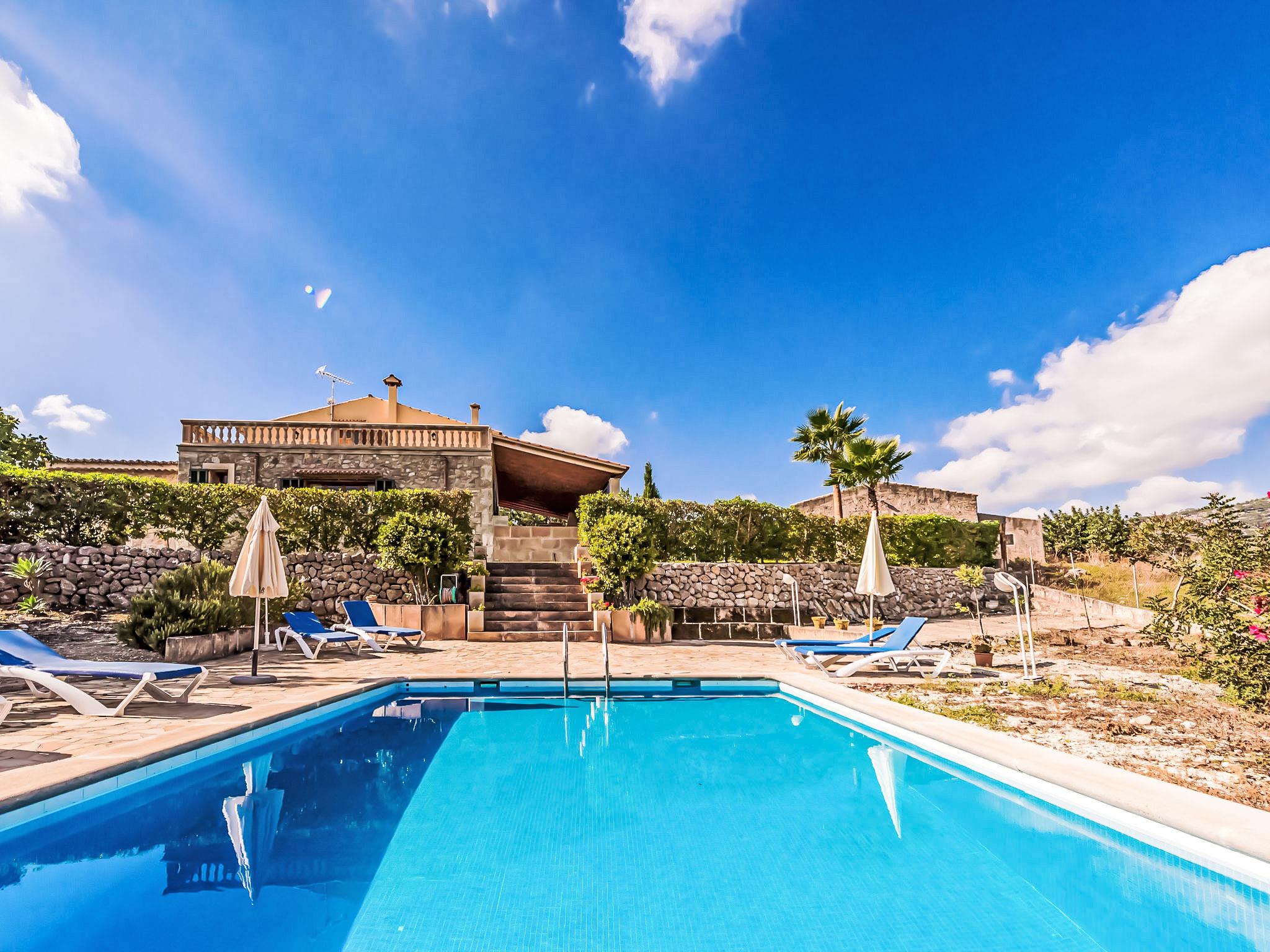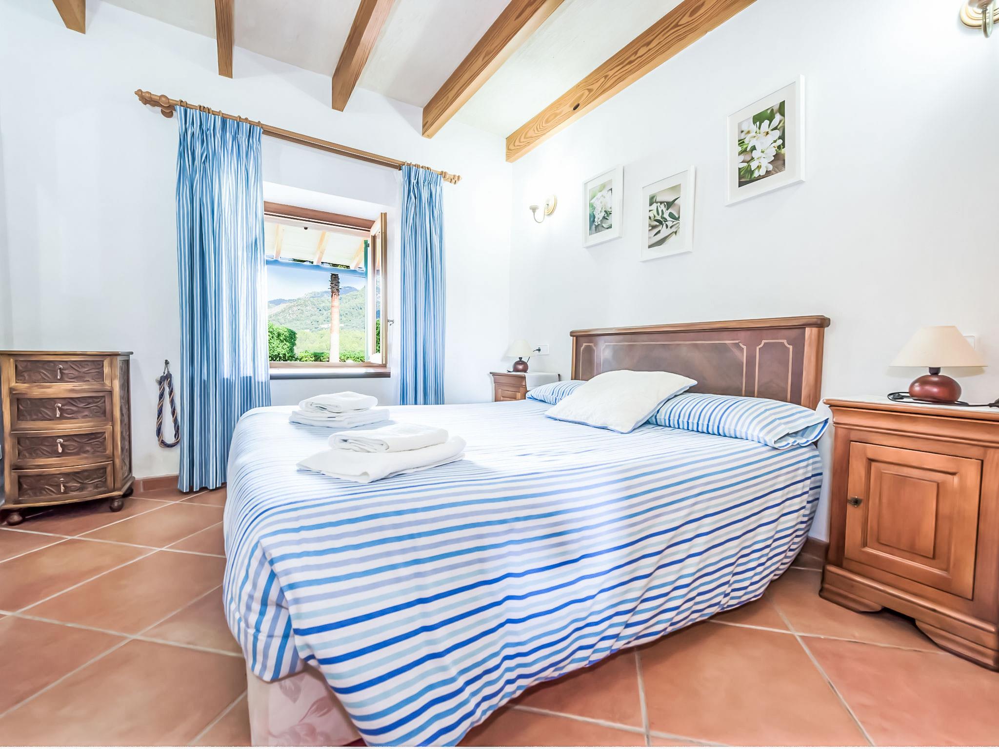 4 km von Campanet: Sehr grosse, schöne, freistehende Finca "Sa Coma de Campanet", auf 2 Stockwerken, renoviert, umgeben von Feldern. Ausserhalb des Ortes, 5 km vom Zentrum von Campanet, ruhige, sonnige Lage, 2.5 km vom Waldrand, 21 km vom Meer, 21 km vom Strand. Zur Alleinbenutzung: schöner terrassierter Garten mit Rasen und Pflanzen, Schwimmbad eckig (8 x 5 m, 100 - 200 cm tief, saisonale Verfügbarkeit: 01.Apr. - 31.Okt.). Sitzplatz, Laube, Pergola, Gartenmöbel, Grill. Im Hause: Wireless LAN, Einstellraum für Fahrräder, Klimaanlage, Waschmaschine. Parkplatz beim Haus auf dem Grundstück. Lebensmittelgeschäft 5.2 km, Supermarkt 5.2 km, Restaurant 4.8 km, Bar 5 km, Bäckerei 5 km, Zentrum zu Fuss in 30 Minuten erreichbar, Bushaltestelle 5.5 km, Sandstrand 21 km, Felsstrand 25 km. Sporthafen 22 km, Jacht-Hafen 22 km, Golfplatz (18 Loch) 31 km, Tennis 4 km, Radweg 1 km. Bitte beachten: Fahrzeug empfohlen. Geeignet für Familien, geeignet für Senioren. Objekt geeignet für 6 Erwachsene Jugendgruppen nur auf Anfrage. Be- und Entladen am Ferienhaus möglich. Tiere in der Umgebung. Flugplatz 47 km vom Haus.
