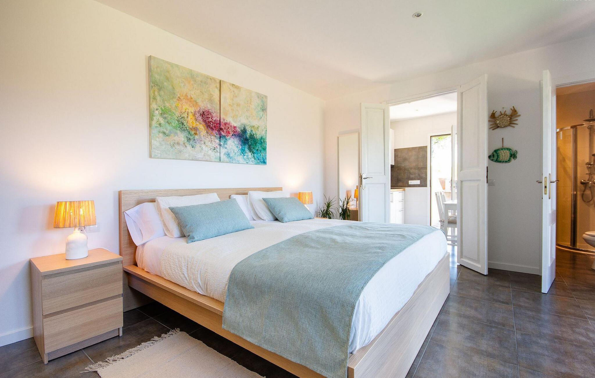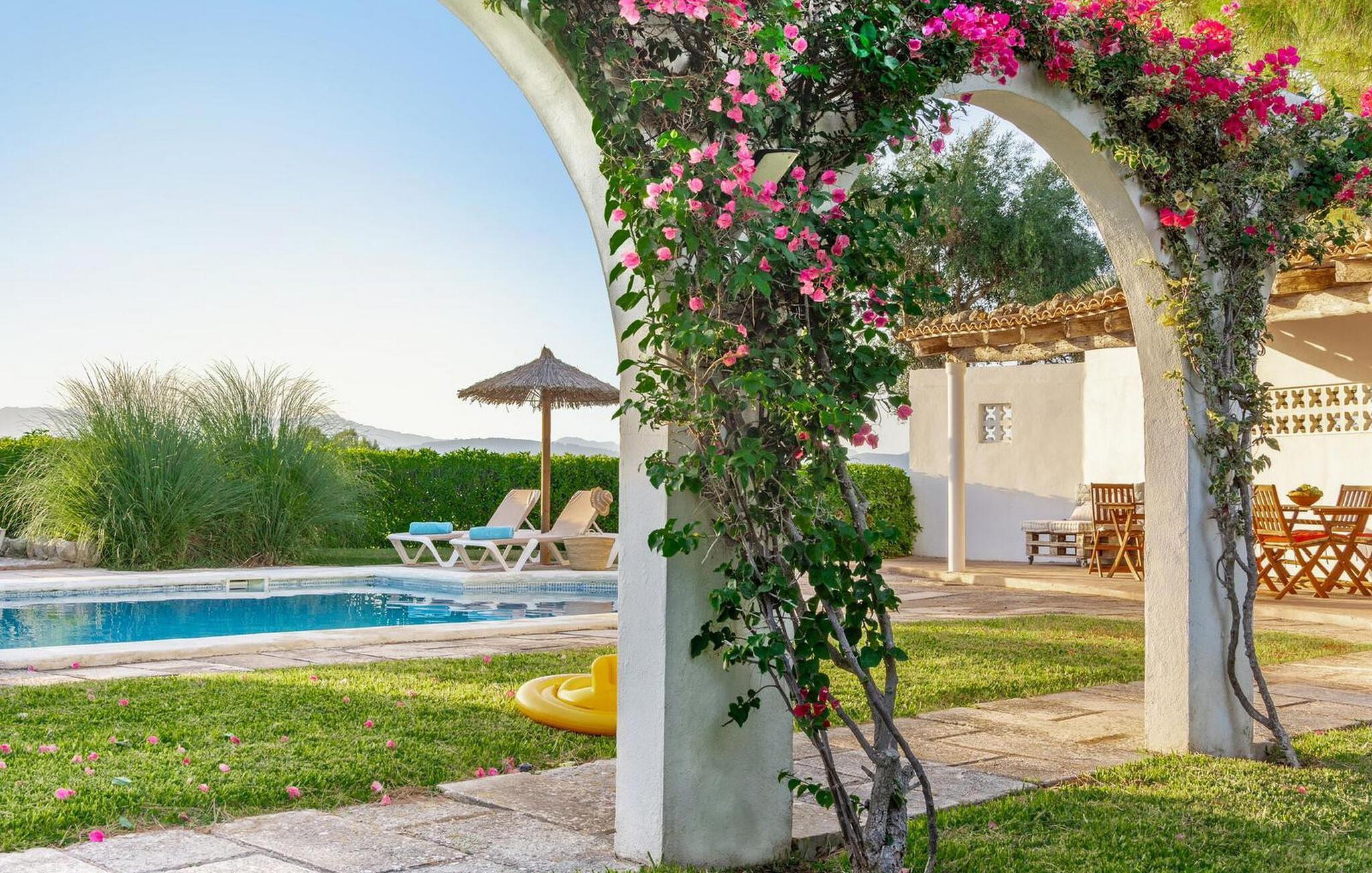 Das Apartment „Son Flo Bouganvilla“ ist Teil des Agroturismo Son Flor, gelegen auf einem Hügel im Osten Mallorcas. Es verfügt über eine private, herrlich schattige Terrasse mit Essbereich und einem schönen Blick über die Ebene bei Santa Margalida. Diese ruhige Unterkunft bietet Zugang zu zwei Gemeinschaftspools mit Sonnenliegen, einem gepflegten Garten, einem gemeinsamen Grillplatz, einer Tischtennisplatte, einer kleinen Bibliothek und einem Dartplatz. Auf Anfrage können Sie auch Autos und Fahrräder mieten. Vor dem Agrotourismus-Komplex stehen Ihnen offene Parkplätze zur Verfügung und die wunderschönen Sandstrände an Mallorcas Ostküste sind nur eine kurze Autofahrt entfernt.