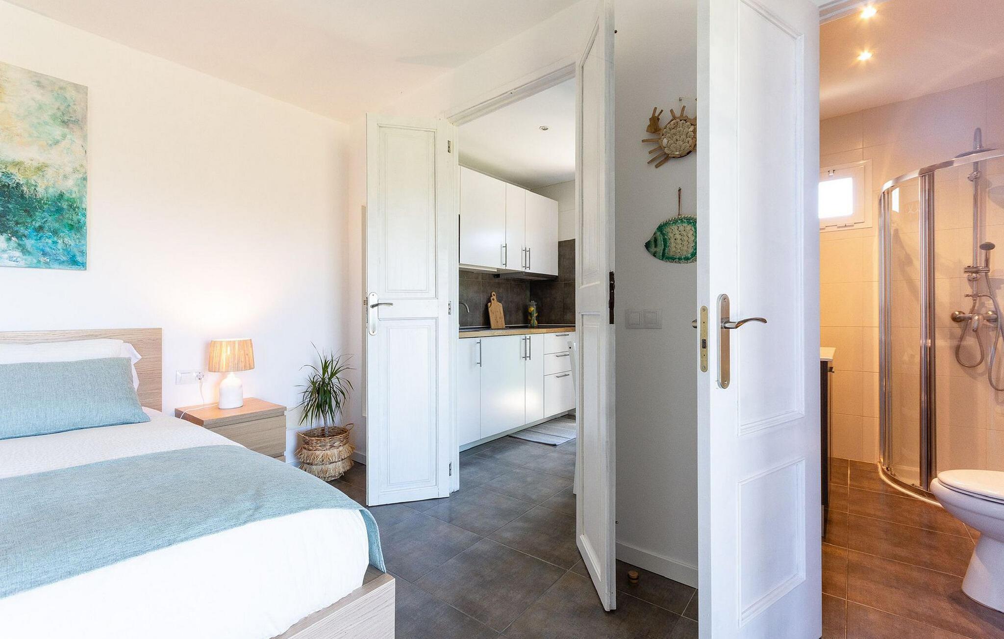 Dieses 50 Quadratmeter große Apartment bietet bequem Platz für bis zu drei Gäste. Es verfügt über ein gemütliches, klimatisiertes Doppelzimmer mit einem bequemen Schlafsofa für eine dritte Person. Zur modernen Küche gehört auch ein Essbereich. Darüber hinaus gibt es ein Badezimmer mit Dusche. Die Wohnung ist mit WLAN ausgestattet und bietet zuverlässigen Mobilfunkempfang.