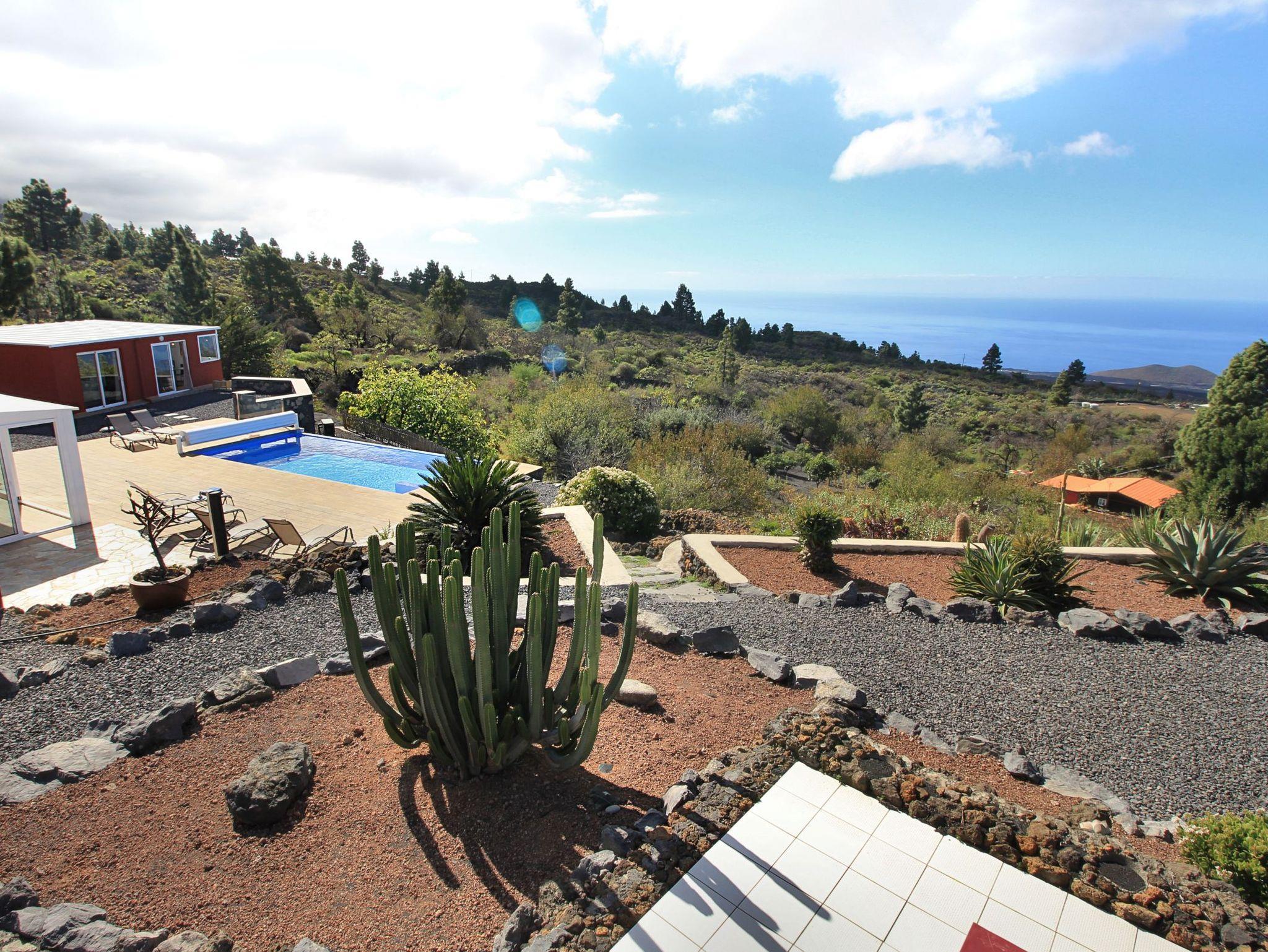 Umgeben von einem schönen Garten mit angelegten Terrassen, Obst und Mandelbäumen genießen Sie den fantastisch weiten Blick auf den Atlantik und seit Ende 2021 auch einen spektakulären Blick auf den neuen Vulkan Tajogaite. Das Grundstück ist umzäunt und hat zu Nachbarn Mauern und reichlich Abstand, so dass das Ferienhaus eine sehr hohe Privatsphäre bietet.
