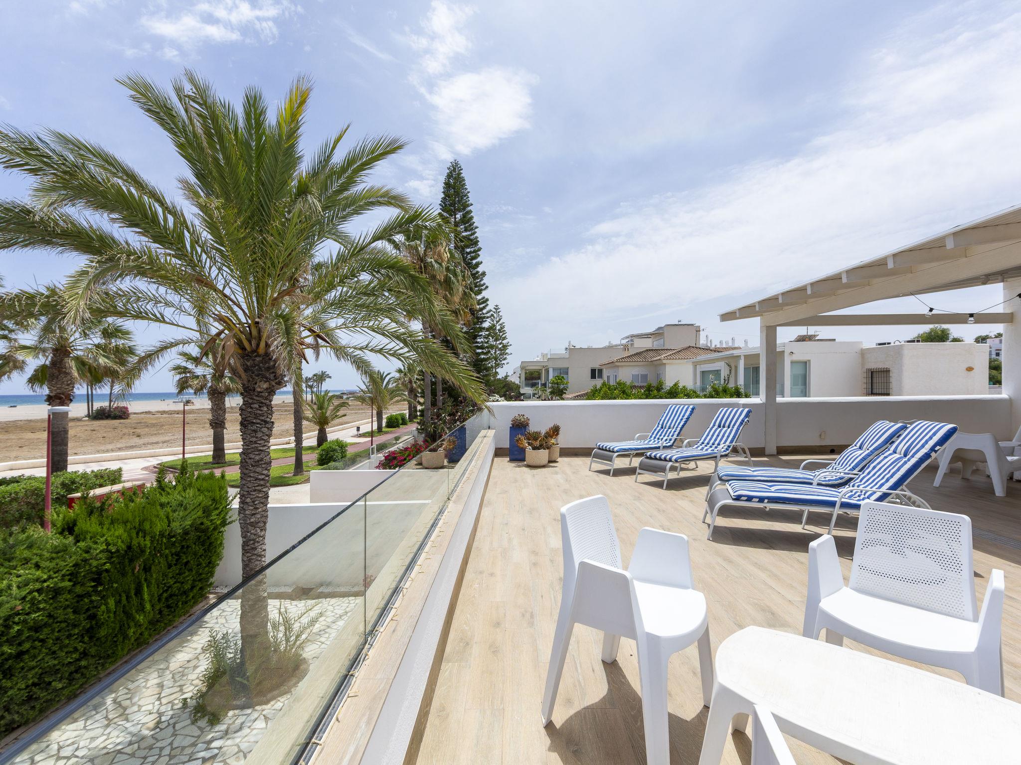 Grosses Zweifamilienhaus "Los Frasquitos". Im Ort Las Marinas de Vera, ruhige, sonnige Lage, 20 m vom Meer, direkt am Strand, Strasse zu überqueren. Zur Alleinbenutzung: kleiner Garten (eingezäunt). Aussendusche, Einzelgarage beim Haus, öffentliche Parkplätze auf der Strasse. Supermarkt 1 km, Restaurant, Bar, Café 200 m, Bushaltestelle 450 m, Sandstrand "Playazo de Vera" 20 m. Sporthafen 1.5 km, Golfplatz (18 Loch) 7 km. Nahe gelegene Sehenswürdigkeiten: Garrucha 800 m. Bitte beachten: kein Fahrstuhl vorhanden. Jugendgruppen nur auf Anfrage. Die Nachbarschaft ist sehr lärmempfindlich. Ruhe und gutes Benehmen wird erwartet.