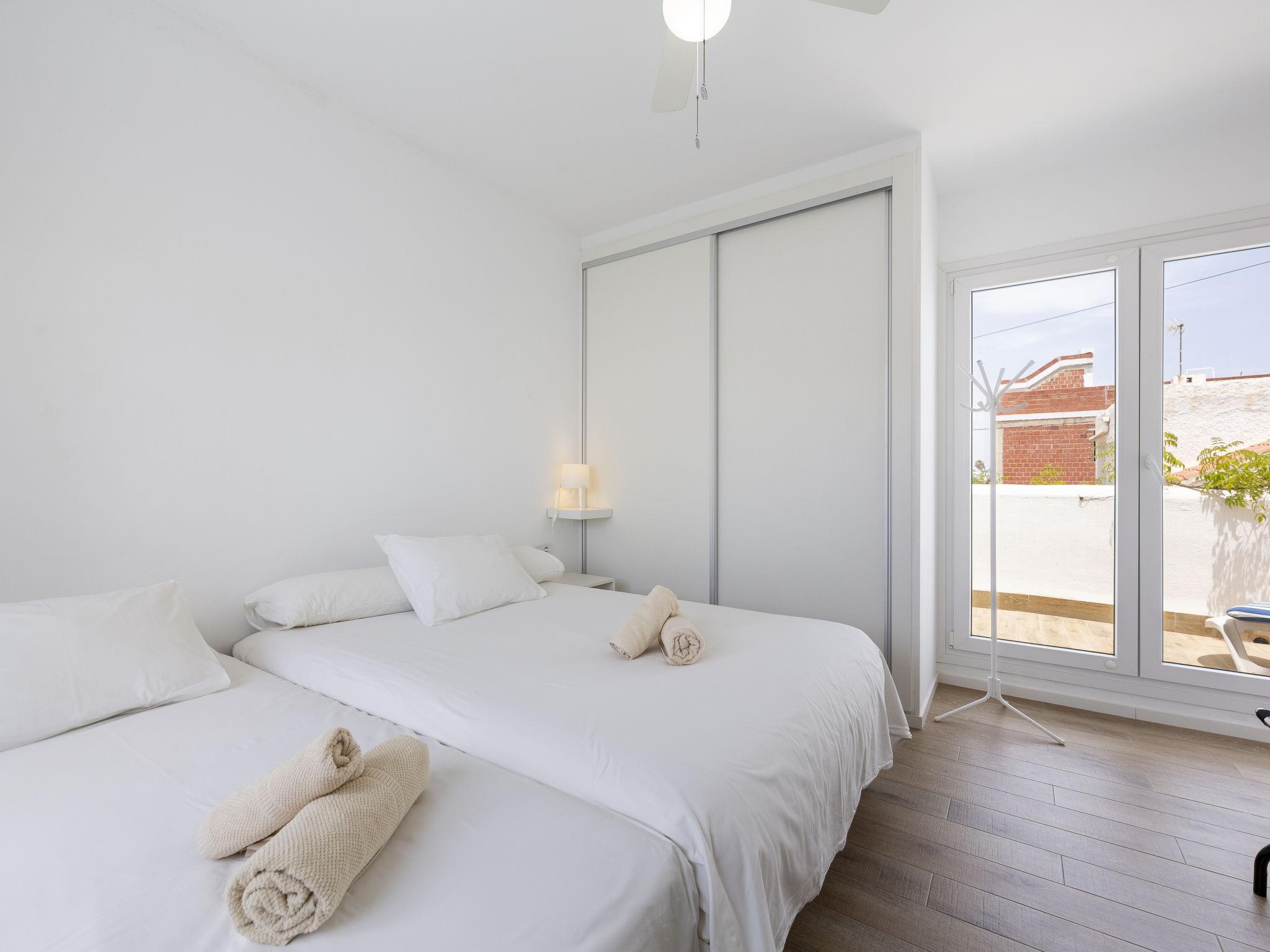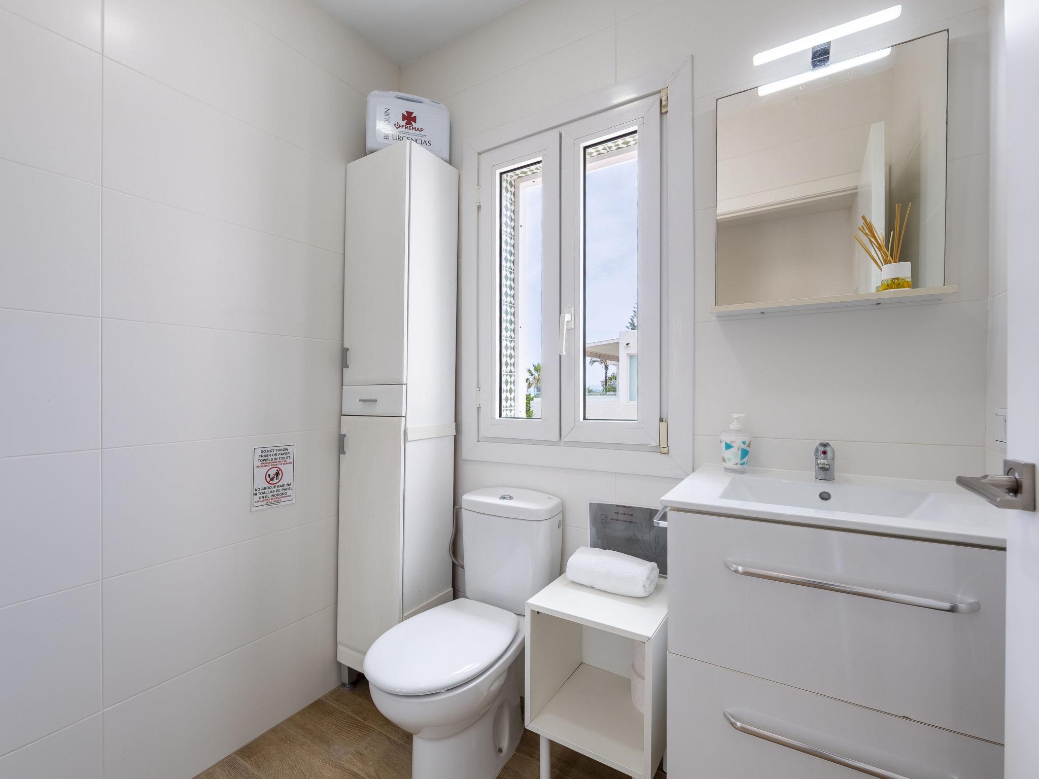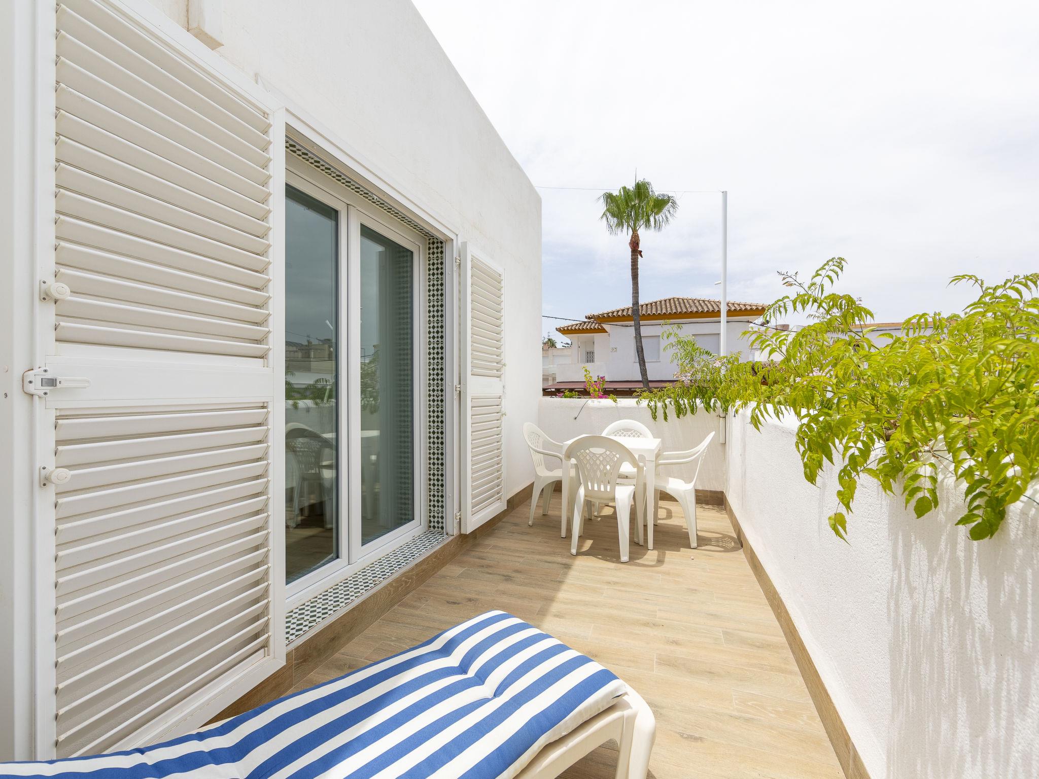 "Los Frasquitos", 4-Zimmer-Reihenhaus 80 m2 auf 2 Stockwerken. Objekt geeignet für 6 Erwachsene. Geräumig und hell, renoviert im Jahre 2019, zweckmässig und komfortabel eingerichtet: Wohn-/Esszimmer mit Esstisch, Digital-TV, Heizofen, Klimaanlage, Ventilator und Warmluftheizung. Ausgang zur Terrasse. 1 Doppelzimmer mit 2 Betten (90 cm, Länge 200 cm), Klimaanlage, Ventilator und Warmluftheizung. 1 Zimmer mit 1 franz. Bett (135 cm, Länge 190 cm), E-Heizung und Ventilator. 1 Zimmer mit 1 franz. Bett (135 cm, Länge 190 cm), Klimaanlage, Ventilator und Warmluftheizung. Küche (Backofen, Geschirrspüler, 4 Glaskeramikplatten, Mikrowelle, elektrische Kaffeemaschine). Dusche/WC, Dusche/Bidet/WC. Grosse Terrasse 80 m2, kleine Terrasse 12 m2. Terrassenmöbel, Gartengrill Elektrogrill, Liegestühle (4). Schöne Sicht auf das Meer. Zur Verfügung: Waschmaschine, Bügeleisen, Babybett bis 2 Jahre, Haartrockner. Internet (WLAN, gratis). Garage auf dem Grundstück. Bitte beachten: geeignet für Familien. Nichtraucher-Unterkunft. Eigener Eingang. VFT/AL/05624 // Reg. Nr.: ESFCTU0000040100013153440000000000000000VUT/AL/056249