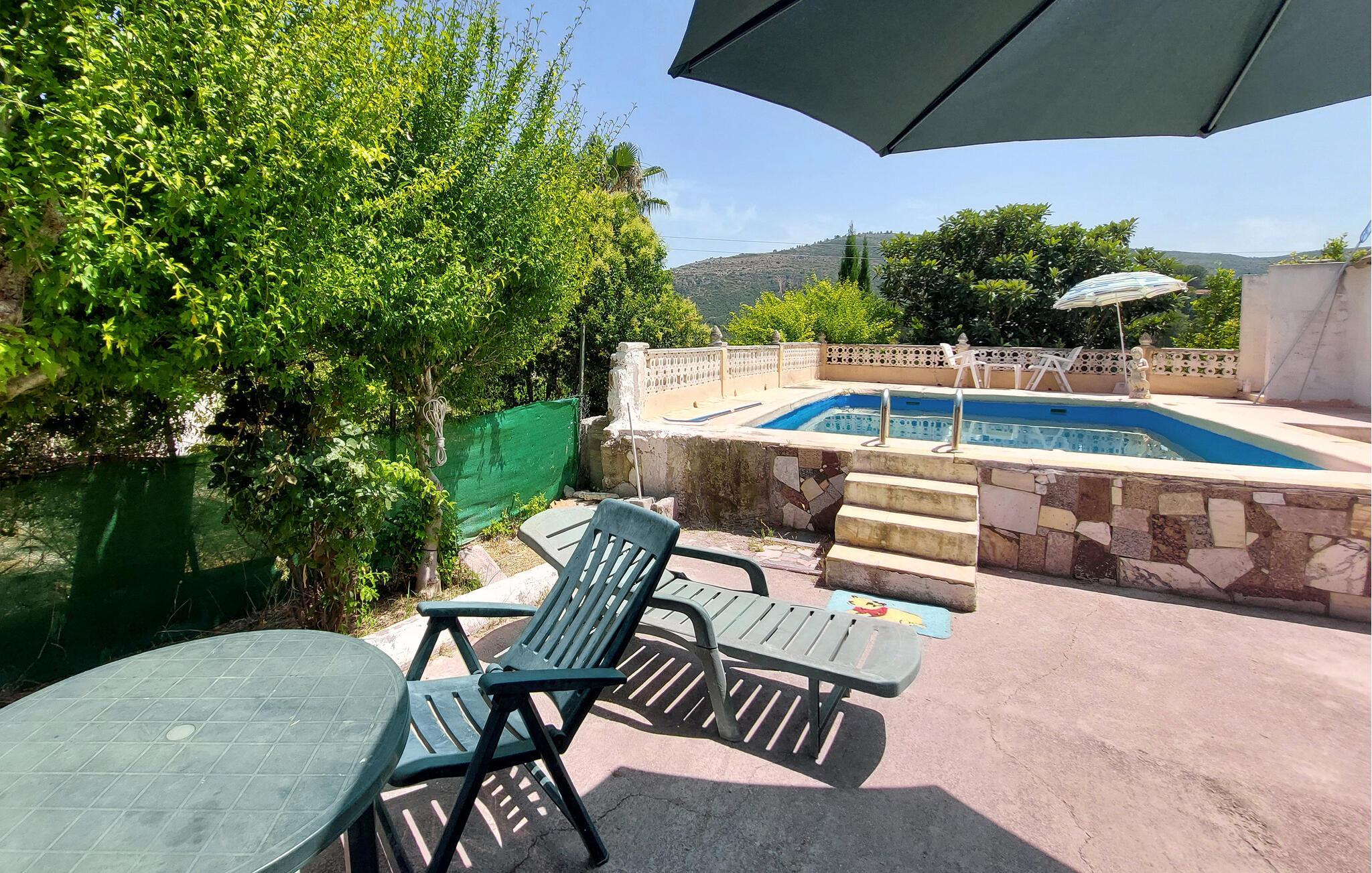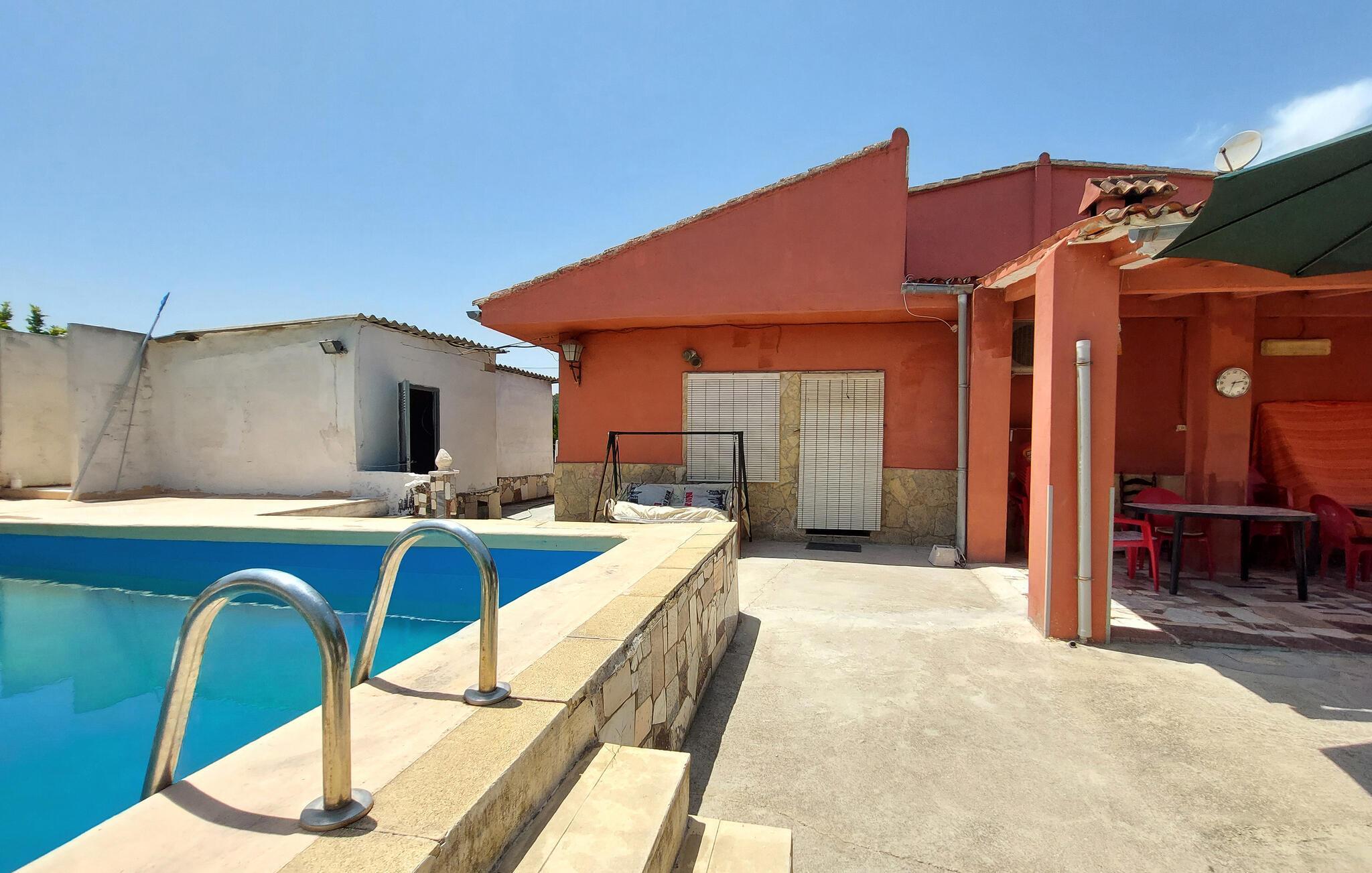 Teilen Sie sich in diesem geräumigen Ferienhaus mit Pool die Sonne mit Freunden oder der Großfamilie.