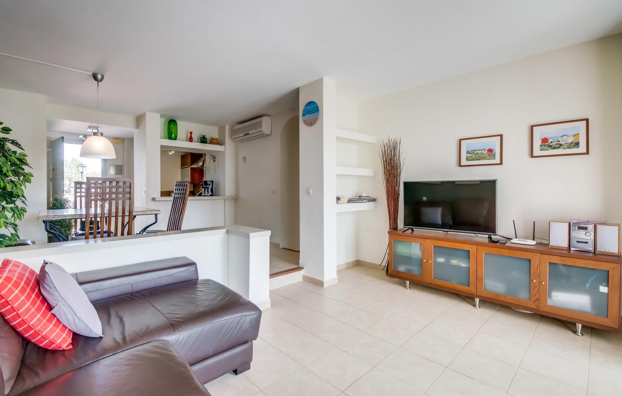 Die charmante Ferienwohnung „Yachthafen Dor“ erwartet Sie in einem strahlend weißen, architektonisch sehr ansprechend gestalteten Gebäudekomplex direkt an der Yachthafenpromenade von Cala D'Or. Der Name des Ortes bedeutet übersetzt „Goldene Bucht“ und tatsächlich hat die Badebucht mit ihrem feinen gelben Sandstrand, dem azurblauen Wasser und dem kinderfreundlichen flachen Einstieg diesen Namen nicht umsonst. Cala D'Or besteht fast überwiegend aus strahlend weißen Gebäuden wie diesem, in dem sich die Ferienwohnung übrigens in der Nebensaison besonders günstig befindet. Die Nutzung des Gemeinschaftspoolbereichs ist im Preis inbegriffen. Die Häuser sind von Pinienwäldern und Palmen umgeben, was dem Ort ein sehr natürliches Aussehen verleiht. Durch die Lage am Hafenbecken genießen Sie nicht nur vom großzügig dimensionierten Balkon einen absoluten Sehnsuchtsblick, sondern können auch am Esstisch Ihren duftenden Morgenkaffee einnehmen und den Abend romantisch ausklingen lassen.