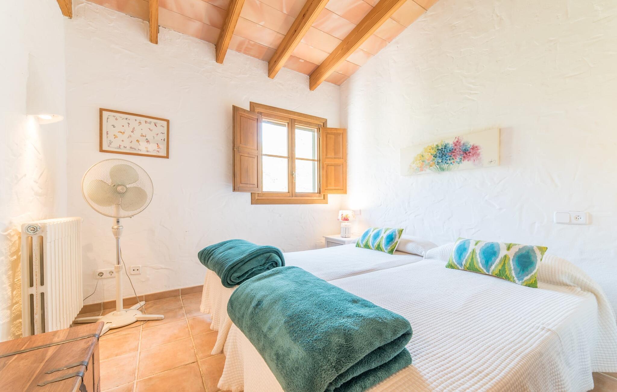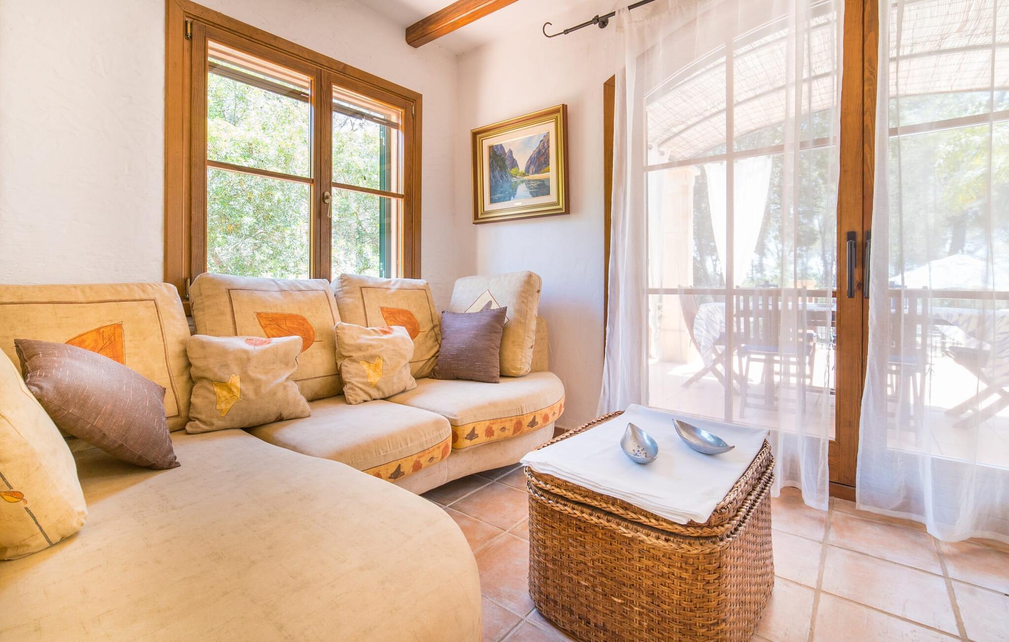 Im Inneren dieses sorgfältig restaurierten Refugiums verschmilzt der rustikale Charme nahtlos mit modernem Komfort. Im Erdgeschoss befinden sich ein gemütliches Wohnzimmer mit Kamin, eine separate Landhausküche mit Essecke, ein großzügiges Esszimmer mit Sofaecke und Zugang zur überdachten Terrasse, ein Doppelschlafzimmer mit Bad en Suite und ein Gäste-WC . Im Obergeschoss erwarten Sie drei weitere gemütliche Doppelzimmer. Eines davon verfügt über ein eigenes Bad und einen eigenen Balkon, während sich die anderen beiden ein separates Badezimmer teilen. Mallorquinische Fensterläden und Moskitonetze sorgen für erholsame Siestas und friedliche Nächte. Alle vier Schlafzimmer sind mit einer Klimaanlage ausgestattet, während Heizkörper das gesamte Ferienhaus wärmen.