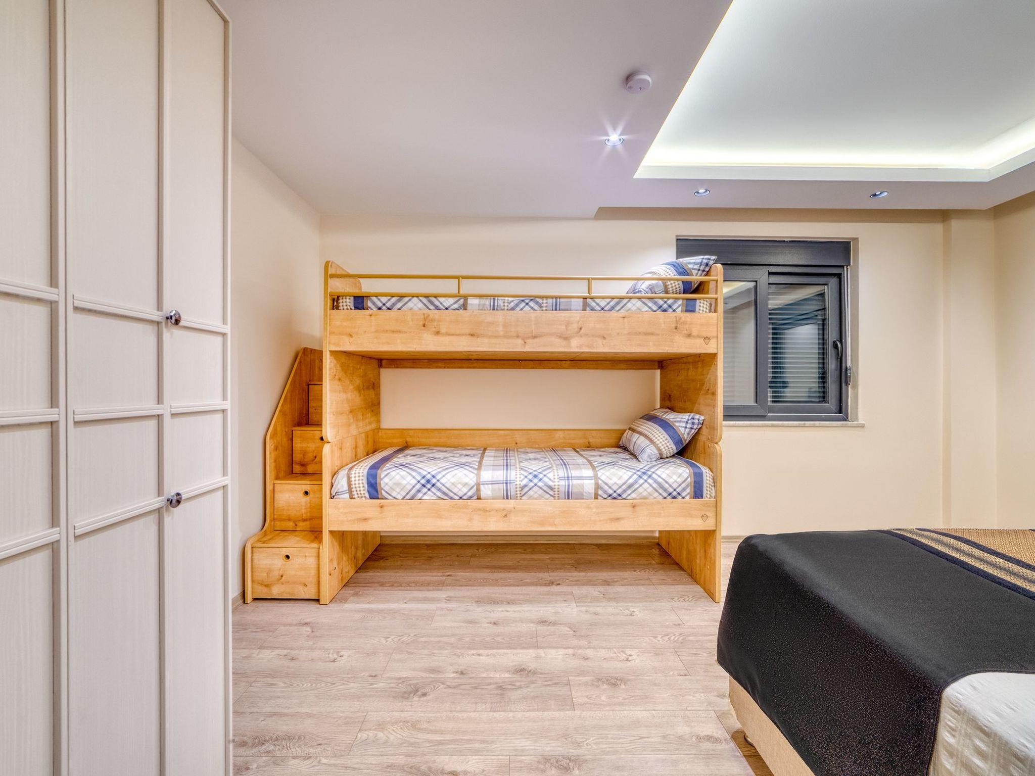 Das Innere der Villa verfügt über ein geräumiges Wohnzimmer und eine große Küche, ideal für gemütliche Abendessen und entspannende Abende. Es gibt 4 Schlafzimmer: ein Familienzimmer mit Etagenbetten, ein Hauptschlafzimmer mit Bad en-suite, sowie 2 weitere komfortable Schlafzimmer. Mit insgesamt 3 Badezimmern gibt es viel Privatsphäre für alle.