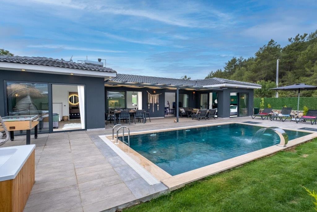 Die Villa Coo, die sich in der Region Kayaköy von Fethiye befindet, liegt in einer natürlichen und von Grün umgebenen Lage. Die Villa verfügt über 2 Schlafzimmer, 2 Badezimmer und bietet Platz für 4 Personen. Das Innere ist geräumig und hat eine moderne Dekoration, eine voll ausgestattete Küche, einen Wohnbereich und einen Esstisch sind ebenfalls vorhanden. Sie können angenehme Zeit in unserem privaten und geschützten Garten und auf unserer Terrasse mit Jacuzzi verbringen und Ihren Urlaub unvergesslich machen. Die Umgebung bietet eine ruhige und friedliche Atmosphäre und zielt darauf ab, Ihnen während Ihres Aufenthalts eine angenehme und komfortable Unterkunftserfahrung zu bieten.