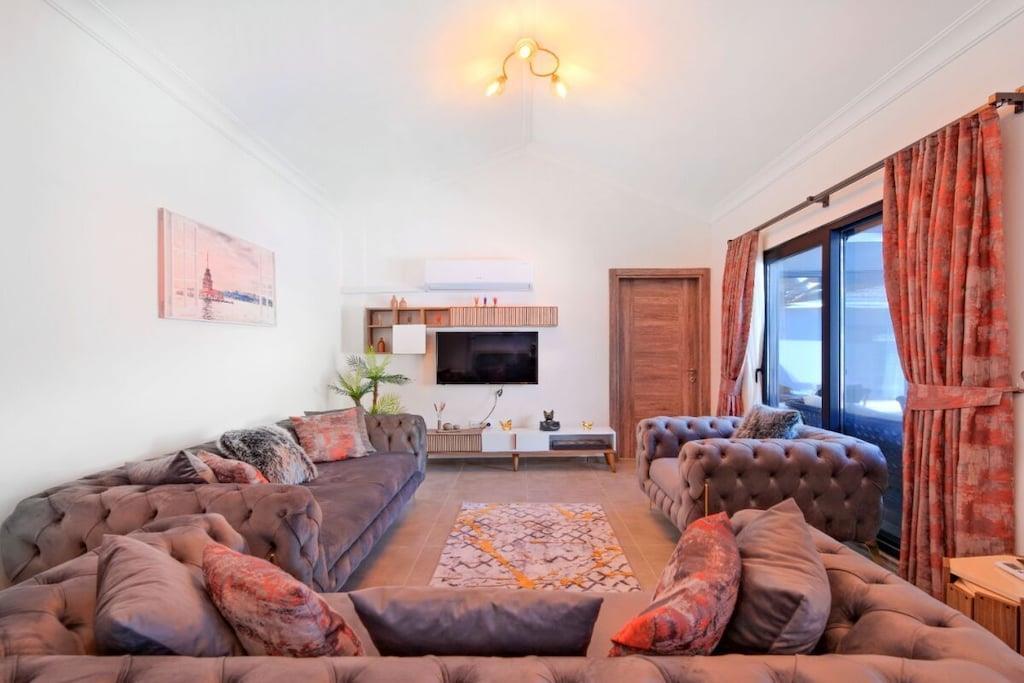 Villa Esp 2 in der Kayaköy-Region von Fethiye liegt in einer natürlichen Umgebung mit viel Grün. Die Villa verfügt über 4 Schlafzimmer, 4 Badezimmer und bietet Platz für 8 Personen. Der Innenraum ist geräumig und hat eine moderne Einrichtung, sowie eine voll ausgestattete Küche, einen Wohnbereich und einen Esstisch. Mit dem Jacuzzi im privaten Garten und der Terrasse können Sie eine angenehme Zeit verbringen und Ihren Urlaub unvergesslich machen. Die Umgebung ist ruhig und bietet eine friedliche Atmosphäre, um Ihnen während Ihres Urlaubs eine angenehme und komfortable Unterkunftserfahrung zu bieten.