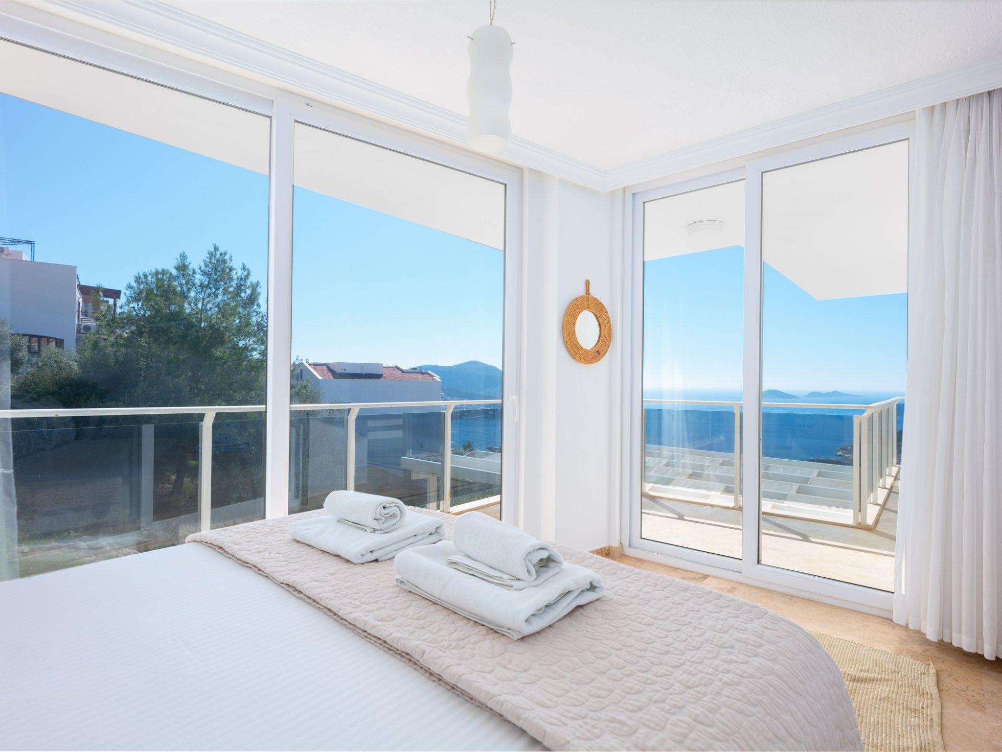 Die Villa befindet sich in der malerischen Gegend von Kalkan, nur wenige Minuten vom glitzernden Mittelmeer entfernt. Die erhöhte Lage bietet einen atemberaubenden Panoramablick auf das azurblaue Meer und die umliegenden Berge, die jeden Gast verzaubern werden.