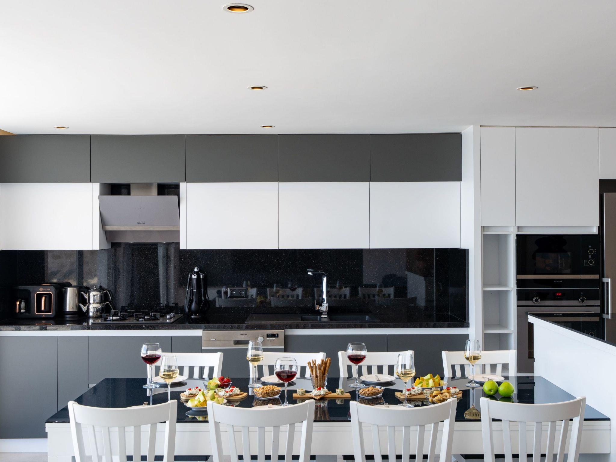 Im Inneren erwarten Sie fünf einladende Schlafzimmer mit jeweils eigenem Badezimmer, die für Privatsphäre und Komfort sorgen. Die umfassende Ausstattung, zu der auch Klimaanlage, Waschmaschine, Kaffeemaschine, Spülmaschine und Wasserkocher gehören, macht Ihr Aufenthalt angenehm und sorgt dafür, dass es Ihnen an nichts fehlt. Obwohl die Küche, das Badezimmer, Schlaf- und Wohnzimmer außer Betracht bleiben, ist die Innenausstattung darauf ausgerichtet, Ihnen und Ihren Gästen die bestmögliche Erfahrung zu bieten.