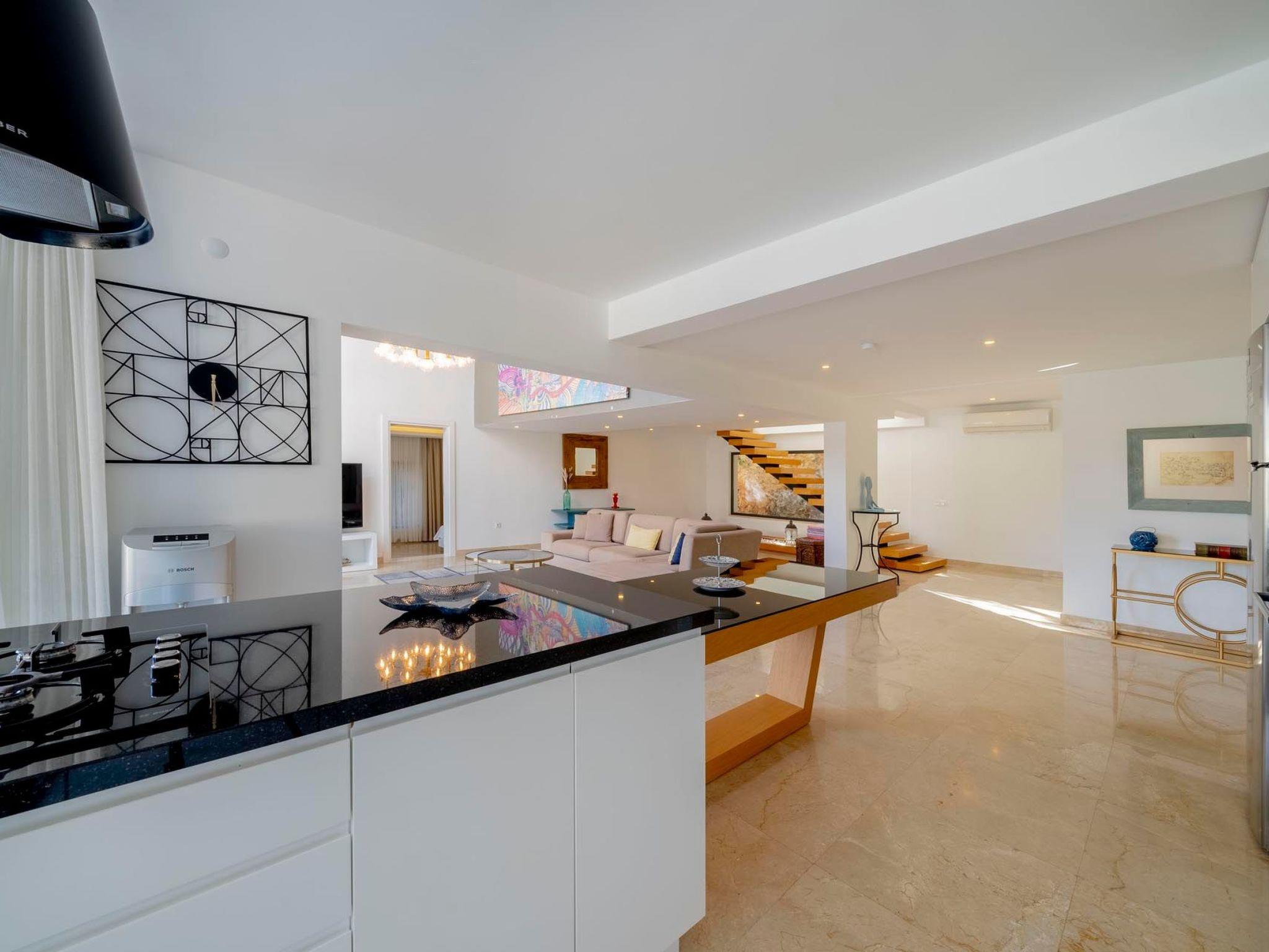 Das Innere des Hauses ist darauf ausgerichtet, Ihren Aufenthalt so angenehm wie möglich zu gestalten. Jedes Schlafzimmer ist abdunkelbar, wodurch Sie nach einem langen Sonnentag den erholsamen Schlaf finden, den Sie brauchen. Zur modernen Ausstattung gehören eine Waschmaschine und eine Spülmaschine, die den Komfort des Alltagslebens in Ihr Urlaubsdomizil bringen. Zudem sorgt die Klimaanlage in allen Bereichen für angenehme Temperaturen, selbst in den heißesten Monaten.