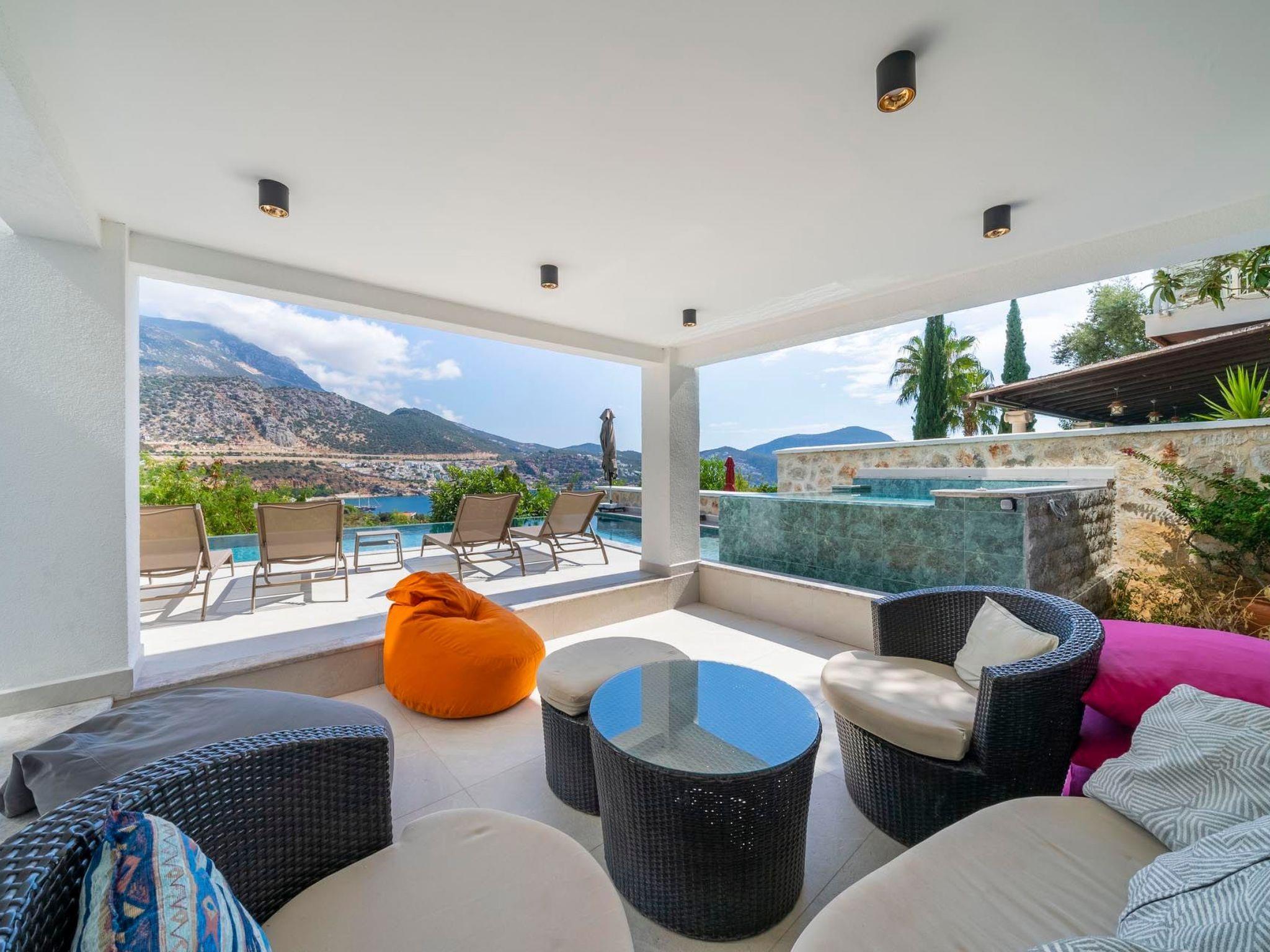 Entdecken Sie unser charmantes Ferienhaus in Kalkan, Anatolien, das mit seinen fünf Schlafzimmern und ebenso vielen Badezimmern bis zu 10 Gäste bequem unterbringen kann. Diese idyllische Unterkunft bietet die perfekte Kombination aus Komfort, Privatsphäre und Nähe zu den Hauptattraktionen der Gegend. Egal ob Sie auf der Suche nach einem Ort für eine Familienzusammenkunft sind oder einfach eine Auszeit mit Freunden planen, hier finden Sie alles, was Sie für einen unvergesslichen Urlaub benötigen.