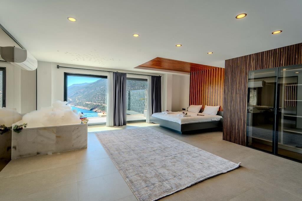 Die Villa liegt im ruhigen Ortsteil Gökseki in Kas und gehört mit 2 Schlafzimmern mit eigenem Bad und einer Kapazität für 4 Personen zur Luxusklasse. Dank ihrer beeindruckenden Meerblickkulisse und ihrer umfangreichen Ausstattung zählt sie zu den beliebtesten Unterkünften für Gäste, die im Urlaub komplett abschalten möchten. Genießen Sie entspannte Stunden im privaten Spa-Bereich mit Sauna und traditionellem türkischem Hamam oder veranstalten Sie gemütliche Filmabende im stilvoll gestalteten Heimkino. Für Unterhaltung sorgt zudem ein Billardtisch – ideal für abwechslungsreiche Urlaubstage mit Familie oder Freunden. Unsere Villa kombiniert Entspannung und Luxus in perfekter Harmonie – ein exklusiver Rückzugsort für Paare und kleine Familien.