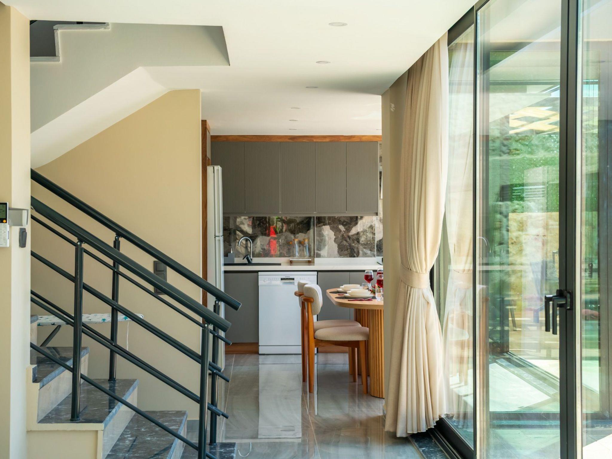 Die Lage der Villa in Kalkan, nur 9000 Meter vom Strand entfernt, macht sie zu einem idealen Ausgangspunkt für diverse Unternehmungen. Ein Lebensmittelgeschäft, das lediglich 2000 Meter entfernt liegt, versorgt Sie mit allem Nötigen für Ihren Selbstversorgerurlaub. Die Umgebung bietet auch viele Möglichkeiten für Ausflüge und Aktivitäten im Freien, damit Sie die wundervolle Region Anatoliens in vollen Zügen auskundschaften können. Für komfortable Mobilität ist die Anmietung eines Autos empfohlen, um die Schönheit der Umgebung unabhängig erkunden zu können.