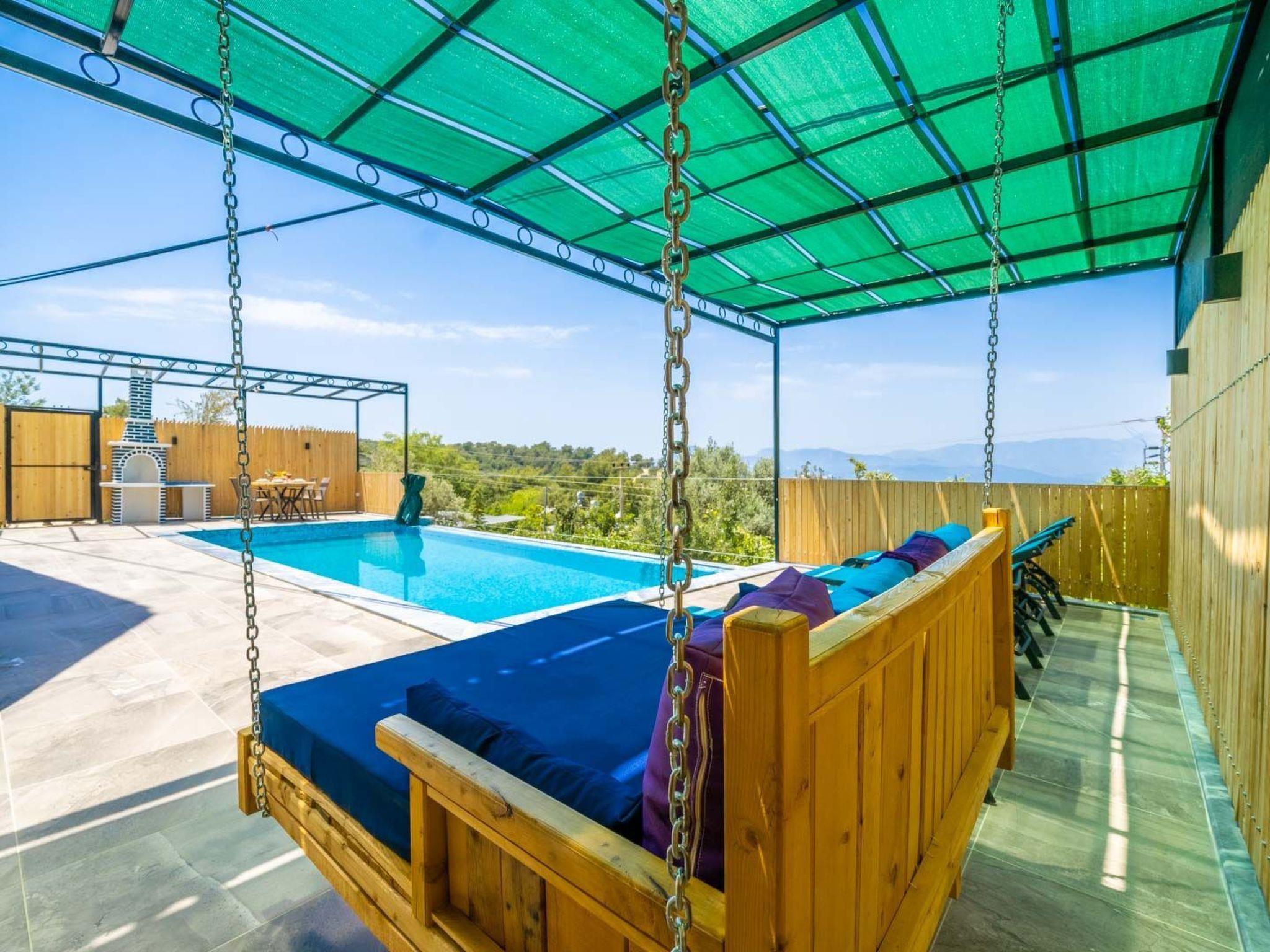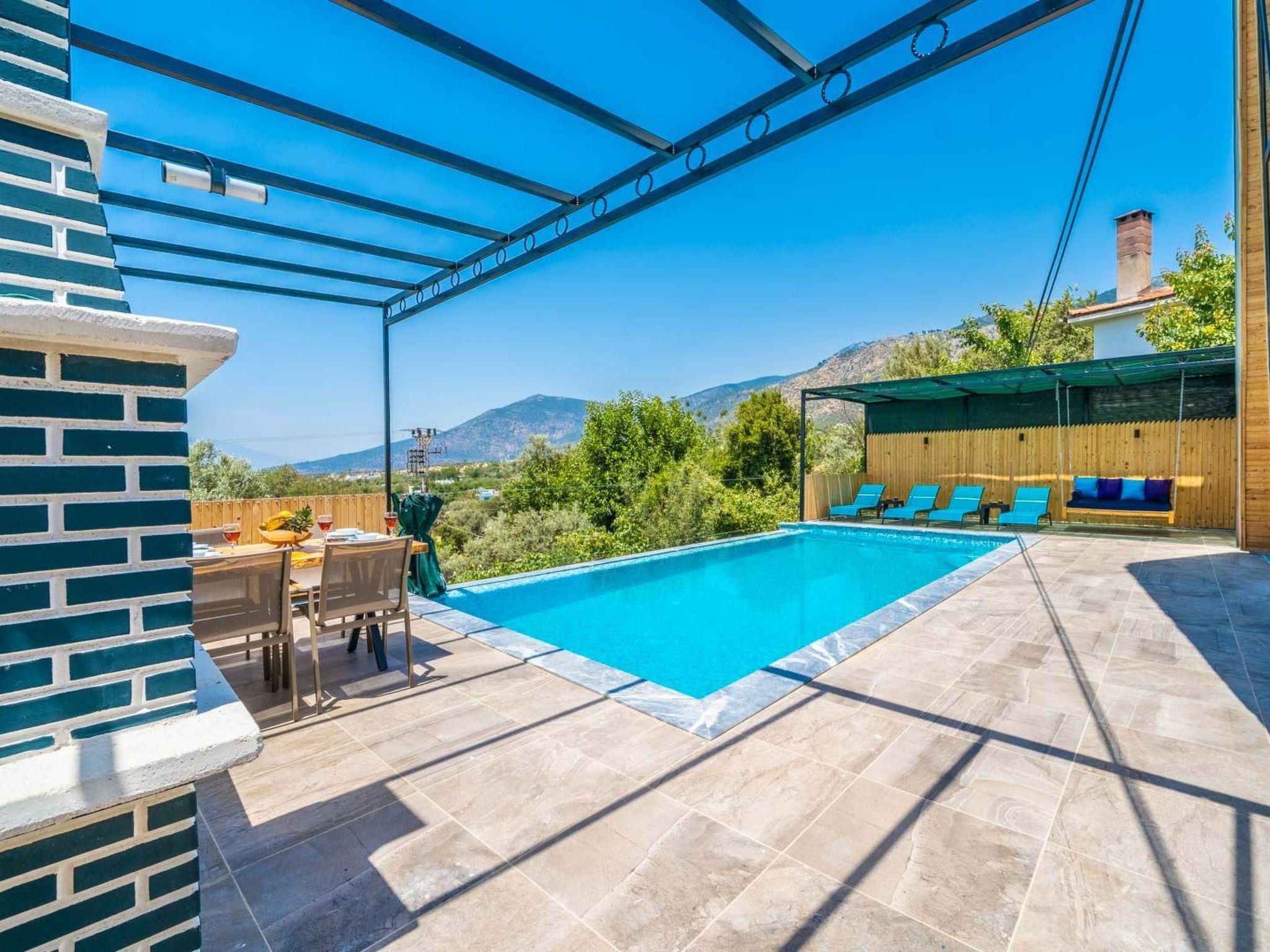 Neben dem einladenden Poolbereich verfügt die Villa über eine große Terrasse mit Lounge-Möbeln und einem Essbereich im Freien. Ein privater Pfad führt zu einem versteckten Ruheplatz im Garten, ideal für Meditation oder Yoga. Für Naturliebhaber gibt es zahlreiche Wander- und Radwege in der Umgebung, die zu Erkundungstouren einladen. Die Villa liegt nur 10 km vom Zentrum von Kalkan entfernt, was Ihnen einfachen Zugang zu Einkaufsmöglichkeiten, Restaurants und kulturellen Attraktionen bietet.