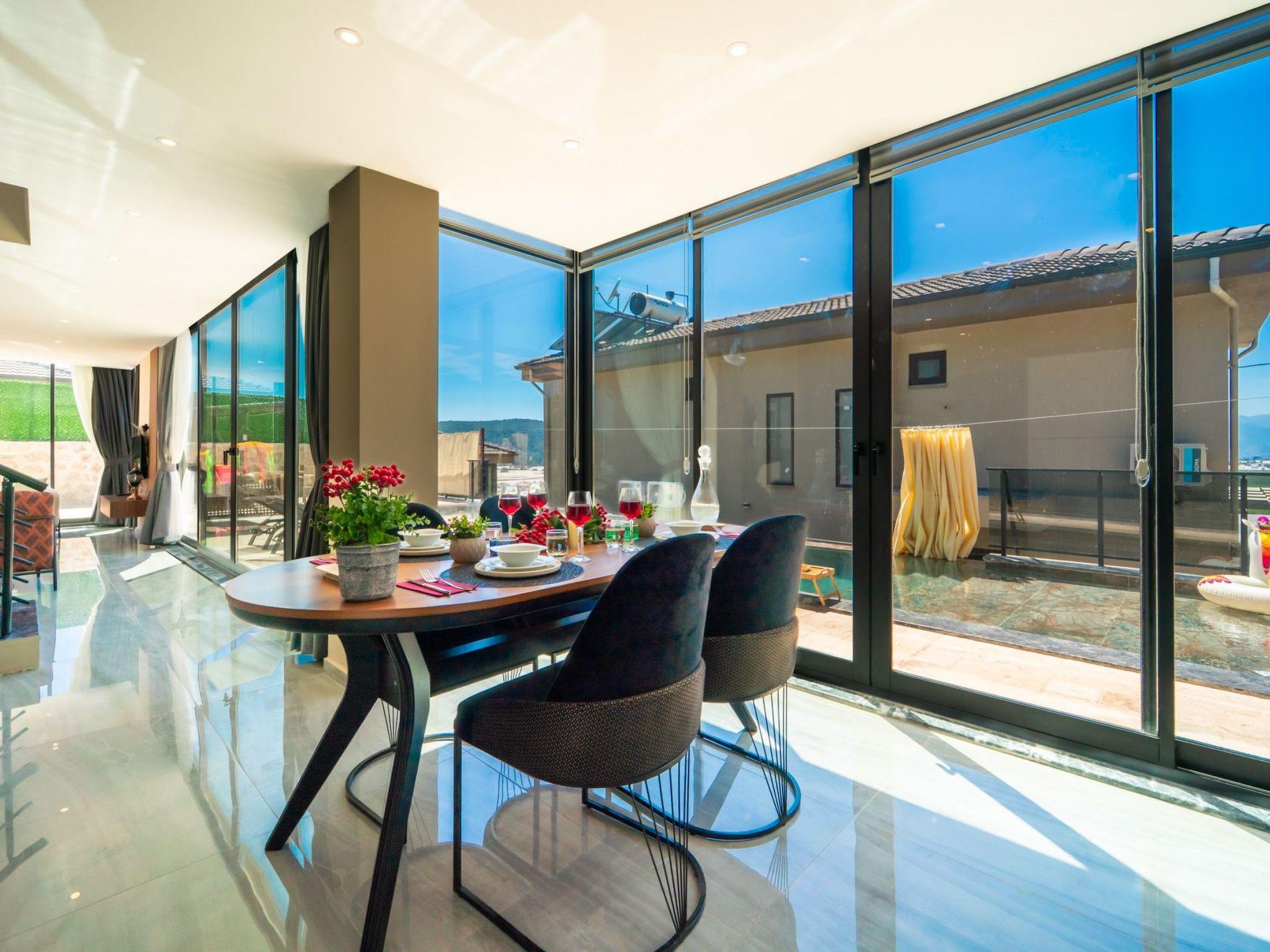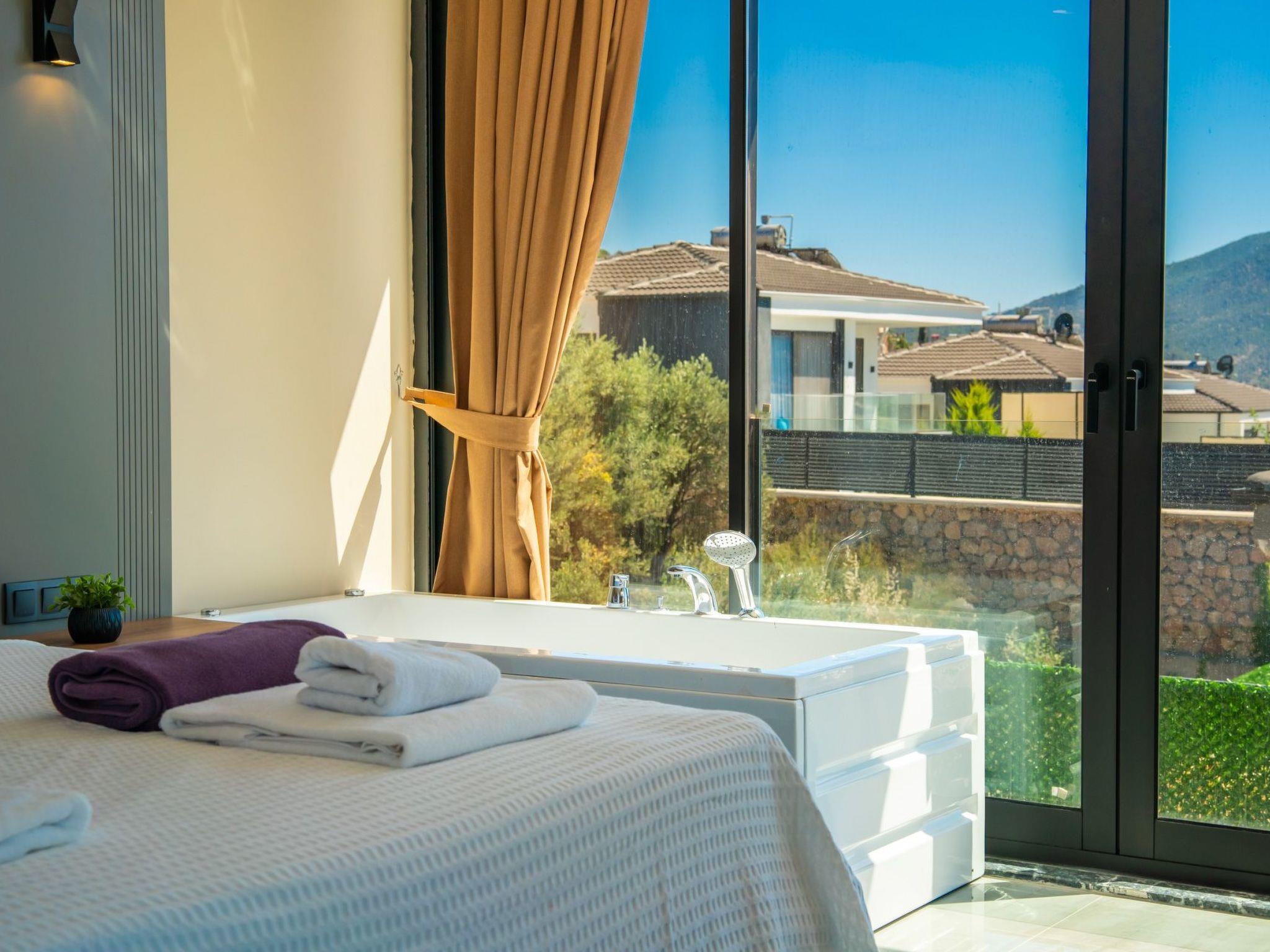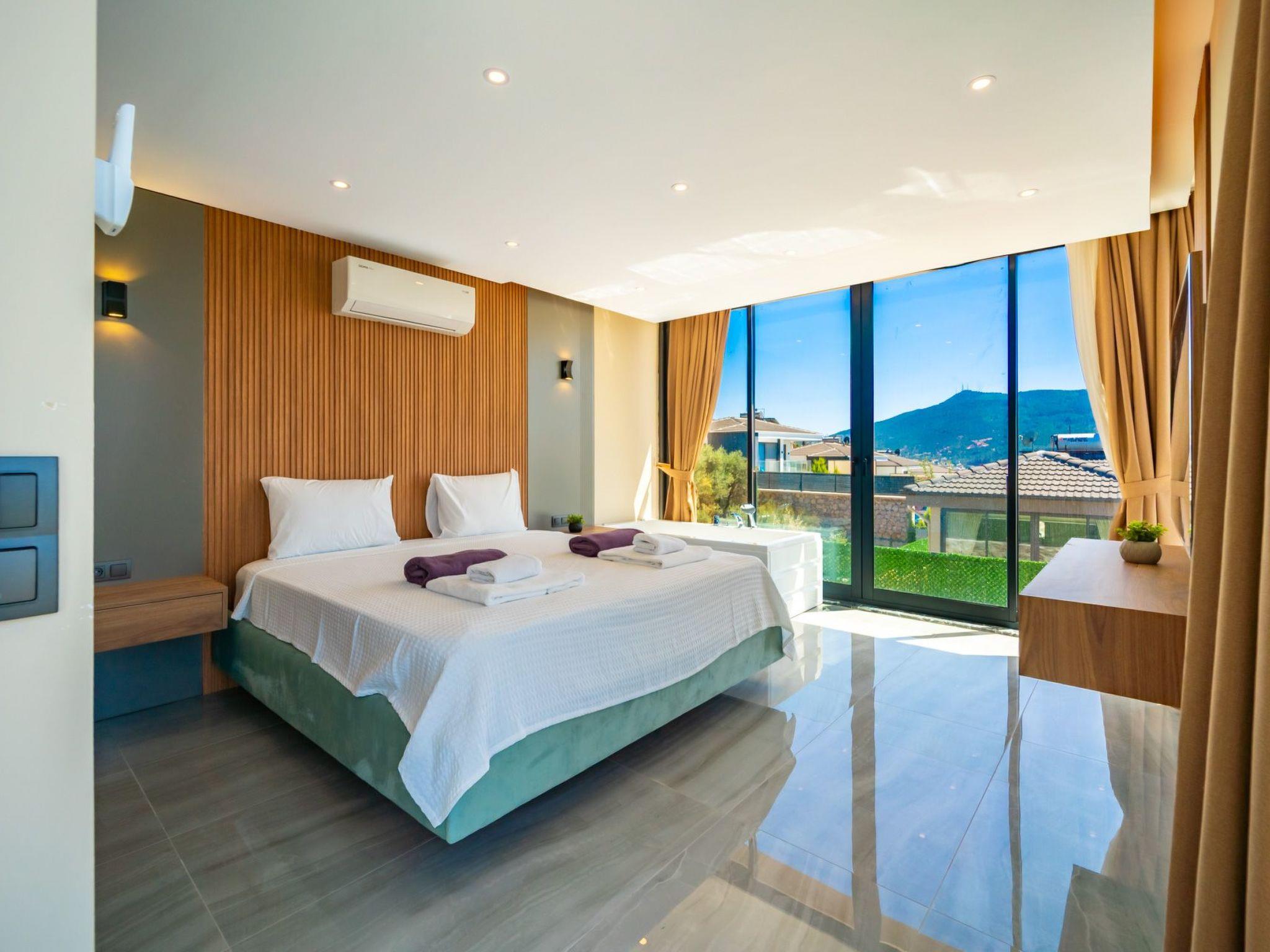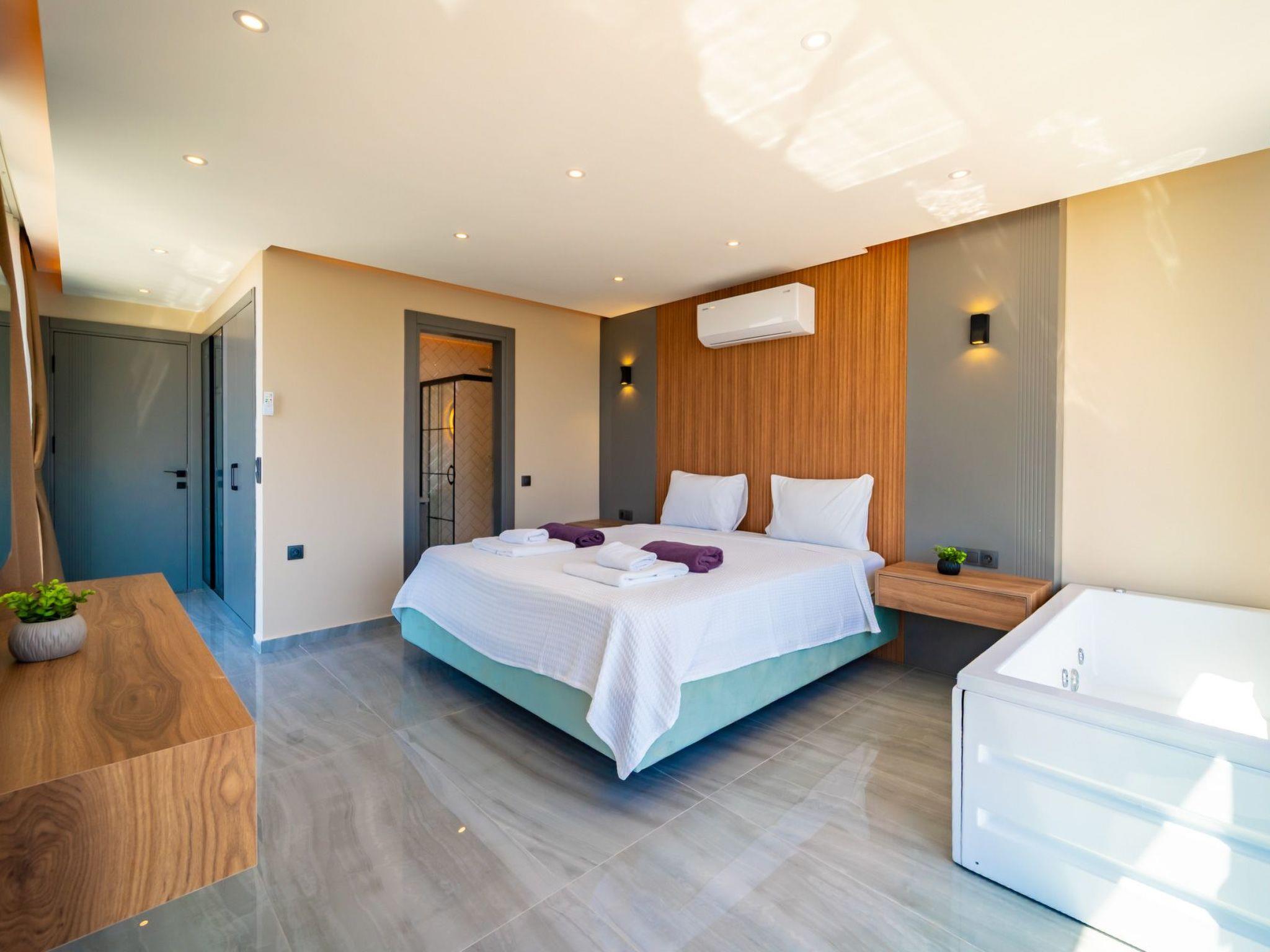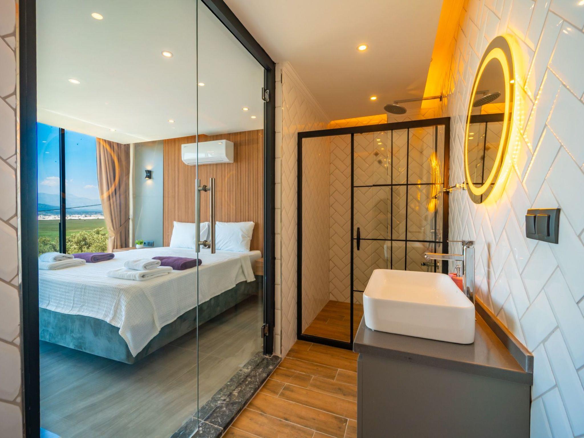 Außen lockt der private Pool zur alleinigen Nutzung, der an warmen Tagen für erfrischende Momente sorgt. Der Garten des Ferienhauses bietet ebenfalls eine private Oase, die zum Entspannen unter der anatolischen Sonne einlädt. Die Außenbereiche sind sorgfältig angelegt, um Ihnen Ruhe und Privatsphäre während Ihres Aufenthalts zu garantieren. Hier können Sie ungestört die Zeit mit Ihren Lieben verbringen.