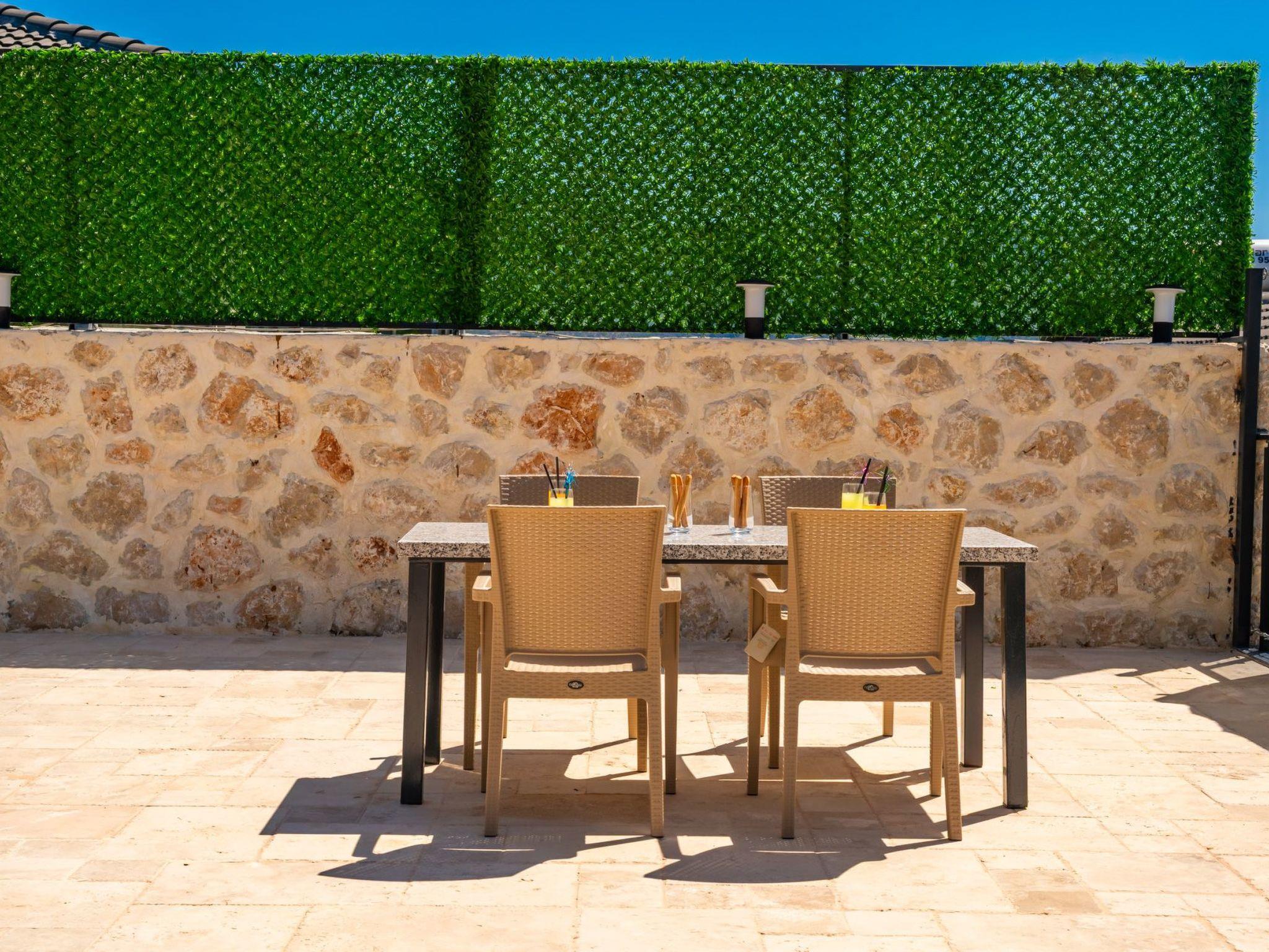 Im Inneren des Ferienhauses finden Sie zwei komfortable Schlafzimmer mit je einem eigenen Bad, was es zu einer praktischen Option für Familien oder Paare macht. Die Komfortausstattung umfasst eine Klimaanlage in jedem Raum, eine Waschmaschine für Ihre Exklusivnutzung, eine Kaffeemaschine, einen Wasserkocher, und eine Spülmaschine, um Ihren Aufenthalt so angenehm wie möglich zu gestalten. Obwohl Küche, Bäder und Wohnbereiche nicht im Detail beschrieben werden, können Sie sicher sein, dass alle Bereiche voll ausgestattet und für Ihren Bedarf vorbereitet sind.