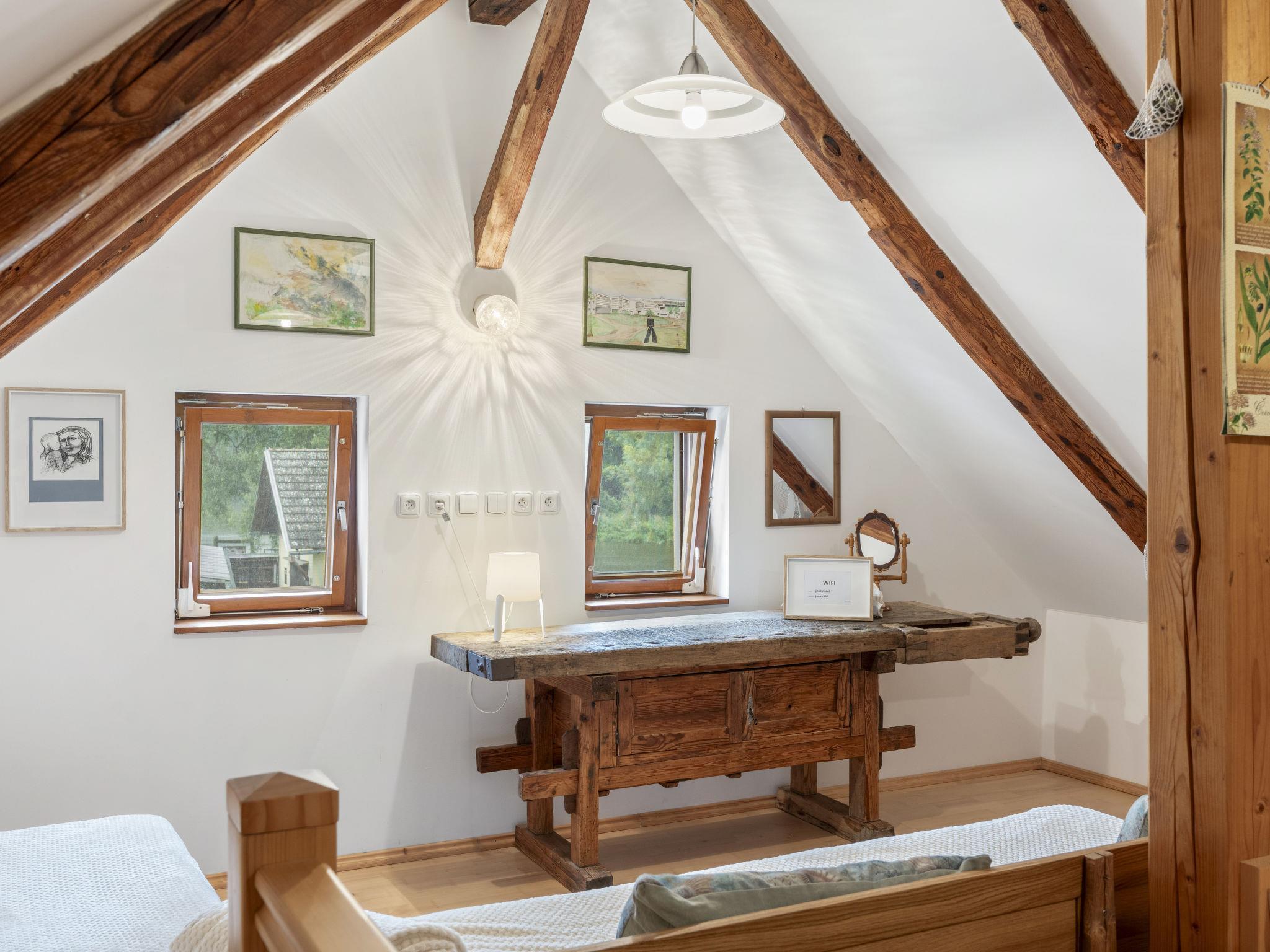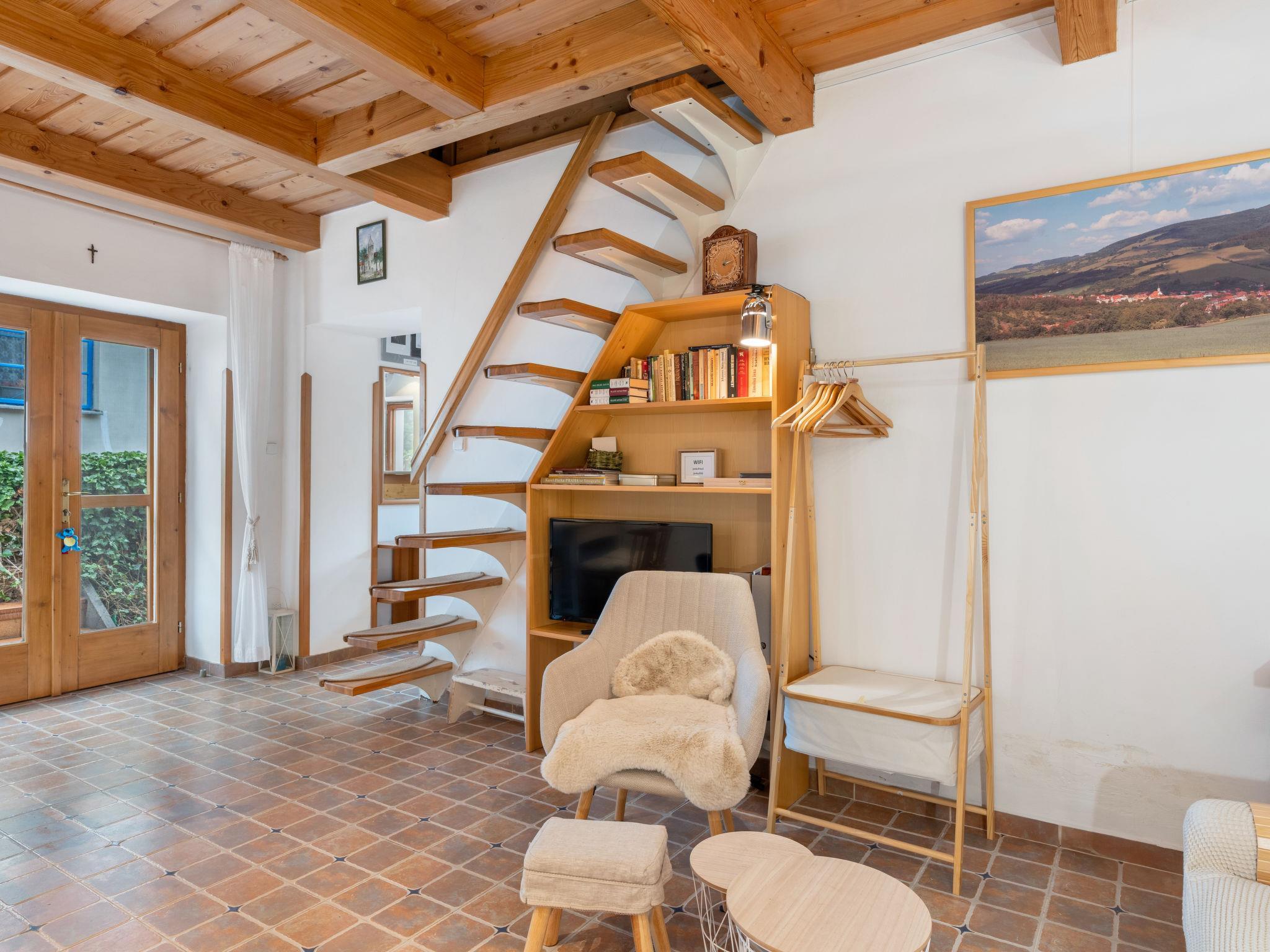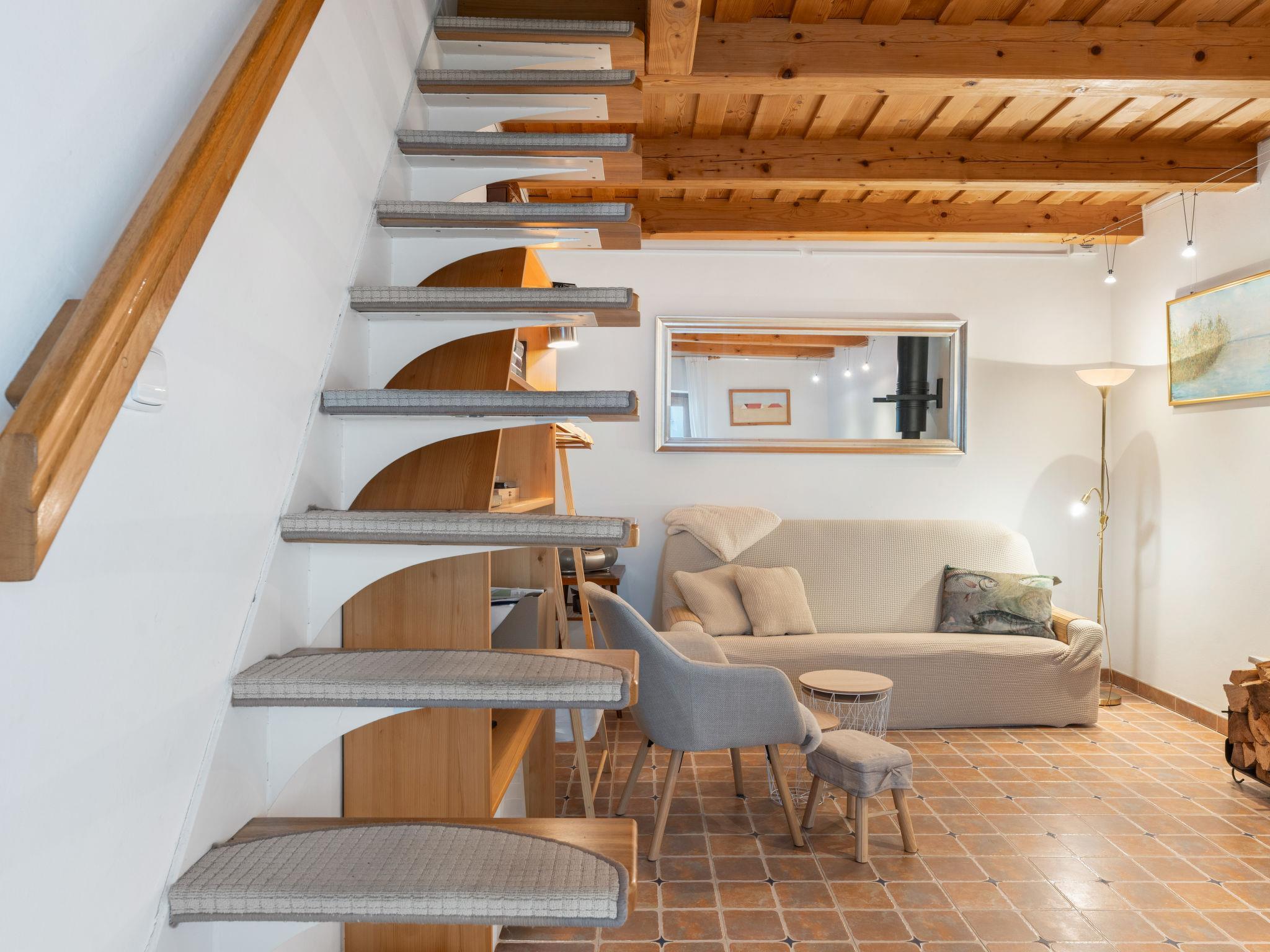 2-Zimmer-Haus 60 m2 auf 2 Stockwerken. Teilweise abgeschrägt, sehr schön und gemütlich eingerichtet: Wohn-/Esszimmer mit 1 Doppeldiwanbett, Sat-TV und Radio. Kleine Küche (2 Kochplatten, Backofen, Mikrowelle). Dusche/WC. Bodenheizung, Boiler (60 Liter). Obergeschoss: (steile Treppe) abgeschrägt 1 Zimmer mit 2 Betten und 1 franz. Bett. Terrasse. Zur Verfügung: Internet (WLAN, gratis). Bitte beachten: geeignet für Familien. Nichtraucher-Unterkunft. Feuerlöscher.