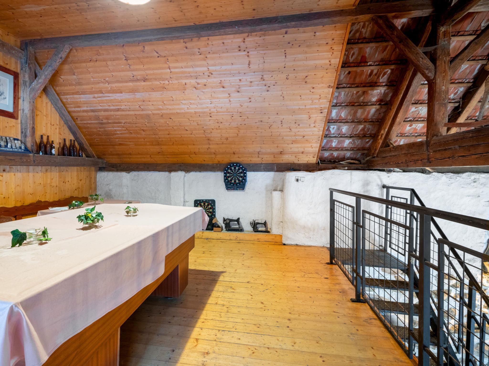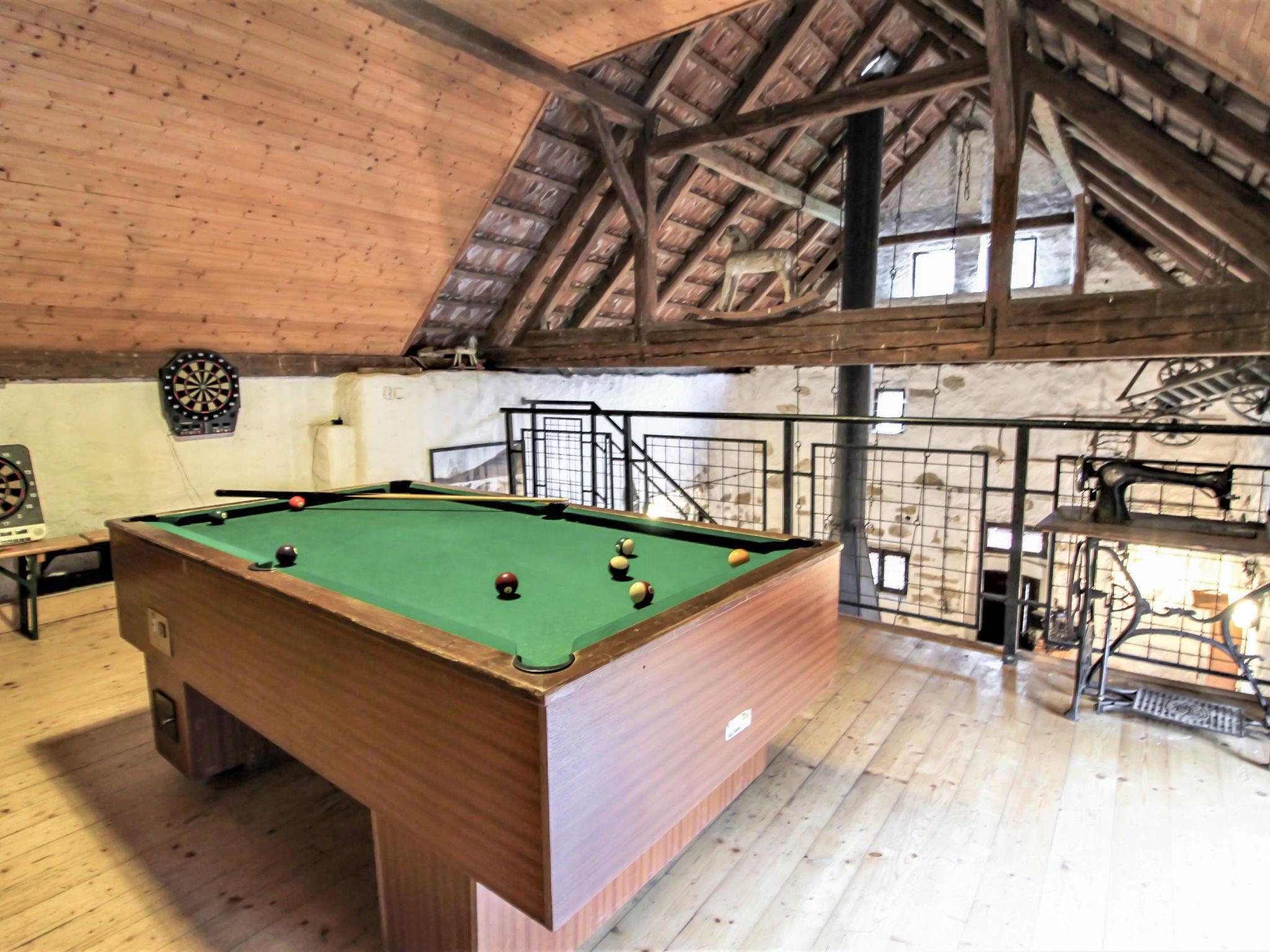 8-Zimmer-Haus 210 m2 auf 2 Stockwerken. Rustikal eingerichtet: Wohnzimmer mit Schwedenofen, Sat-TV und Radio. Esszimmer. Kleines Wohnzimmer mit 1 Diwanbett und TV. 1 Zimmer mit 1 Doppelbett und Bad/WC. Küche (8 Kochplatten, Geschirrspüler, Wasserkocher, Mikrowelle, Tiefkühler, elektrische Kaffeemaschine). Obergeschoss: 1 Zimmer mit 2 Betten, 1 Doppelbett und Dusche/WC. 1 Zimmer mit 1 Doppelbett und Dusche/WC. 1 Zimmer mit 1 Doppelbett und Dusche/WC. 1 Zimmer mit 3 Betten und Dusche/WC. Bitte beachten: geeignet für Familien. Maximal 1 Haustier/Hund erlaubt. Feuerlöscher. Zapfanlage verfügbar. Gemeinsamer Raum mit offenem Kamin, Billard, Spielautomaten, Bar, kleine Küche. WC im Hof.