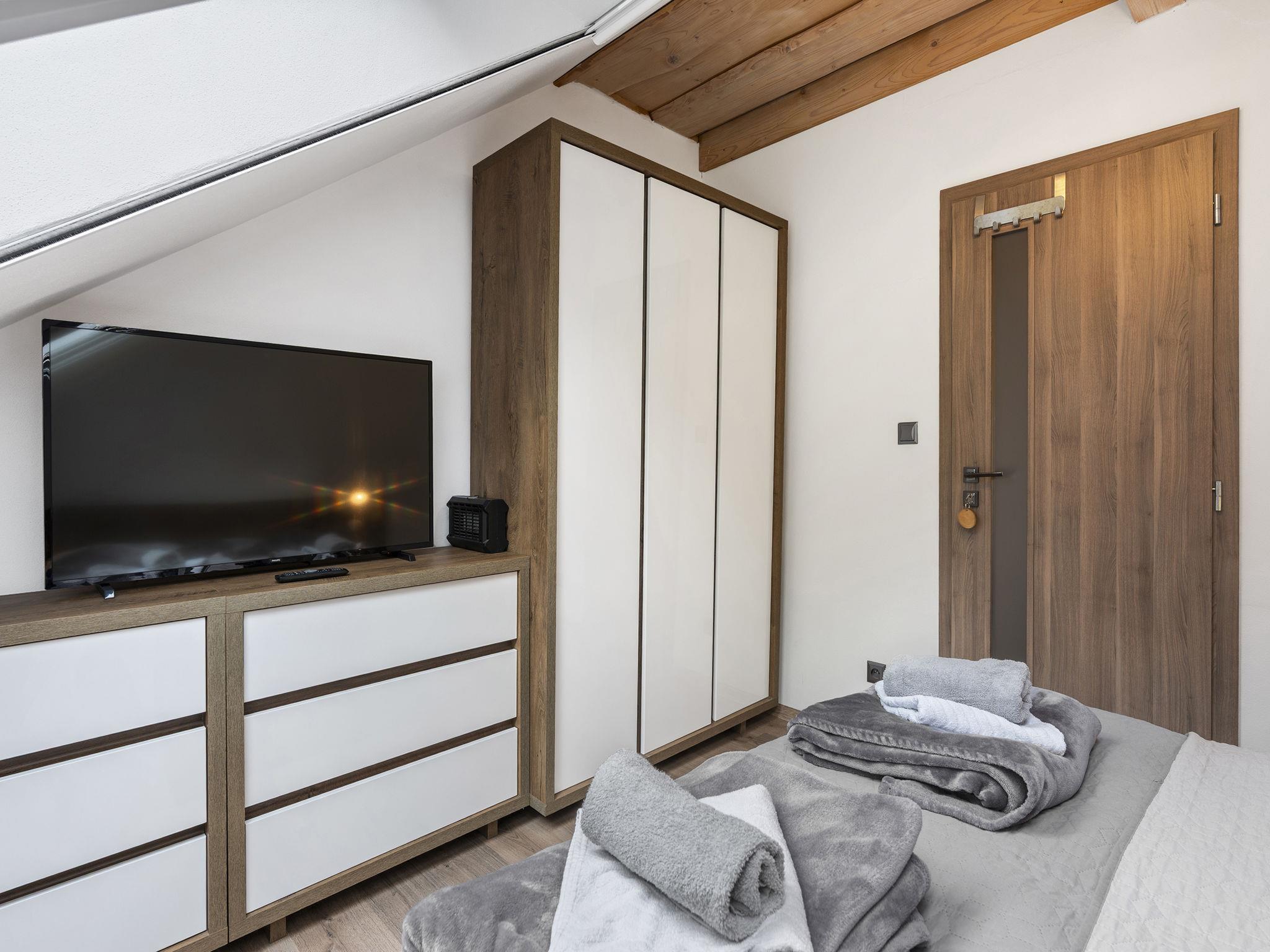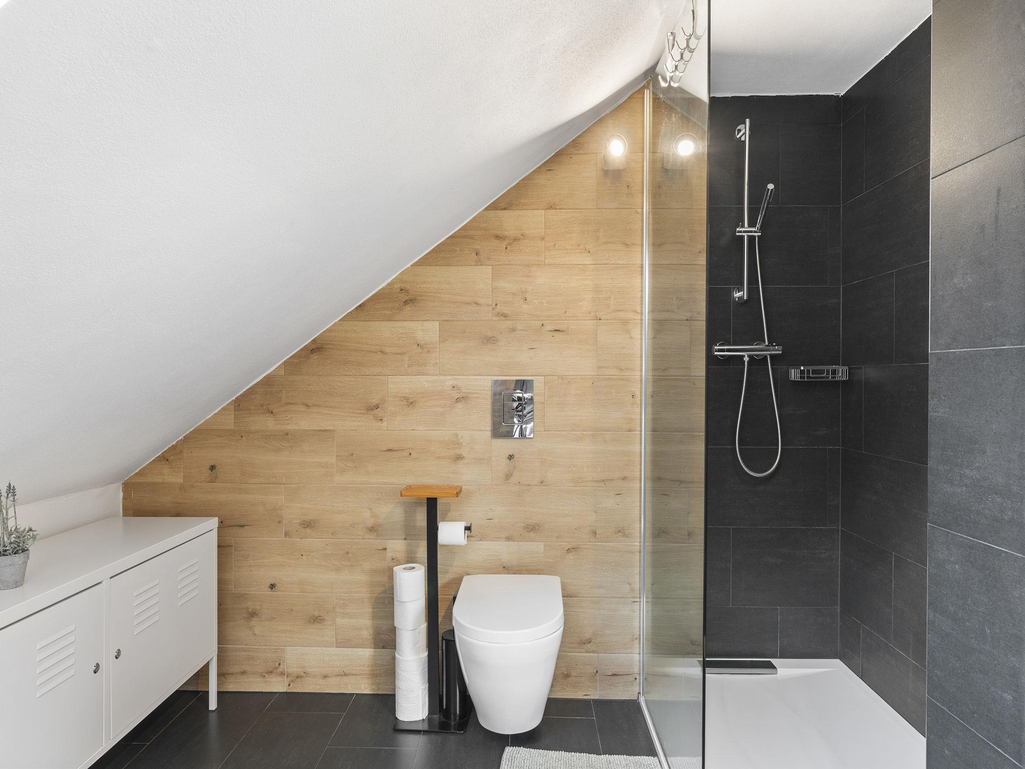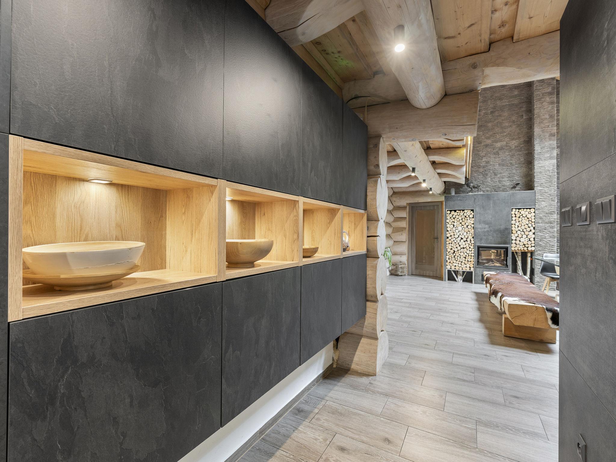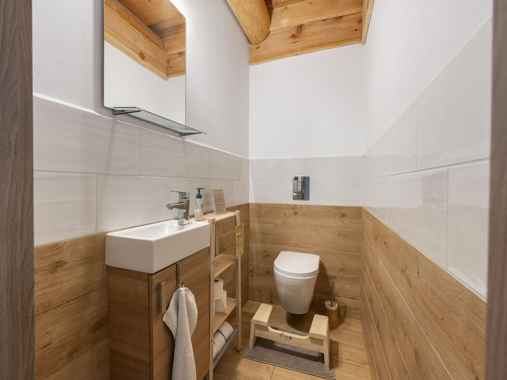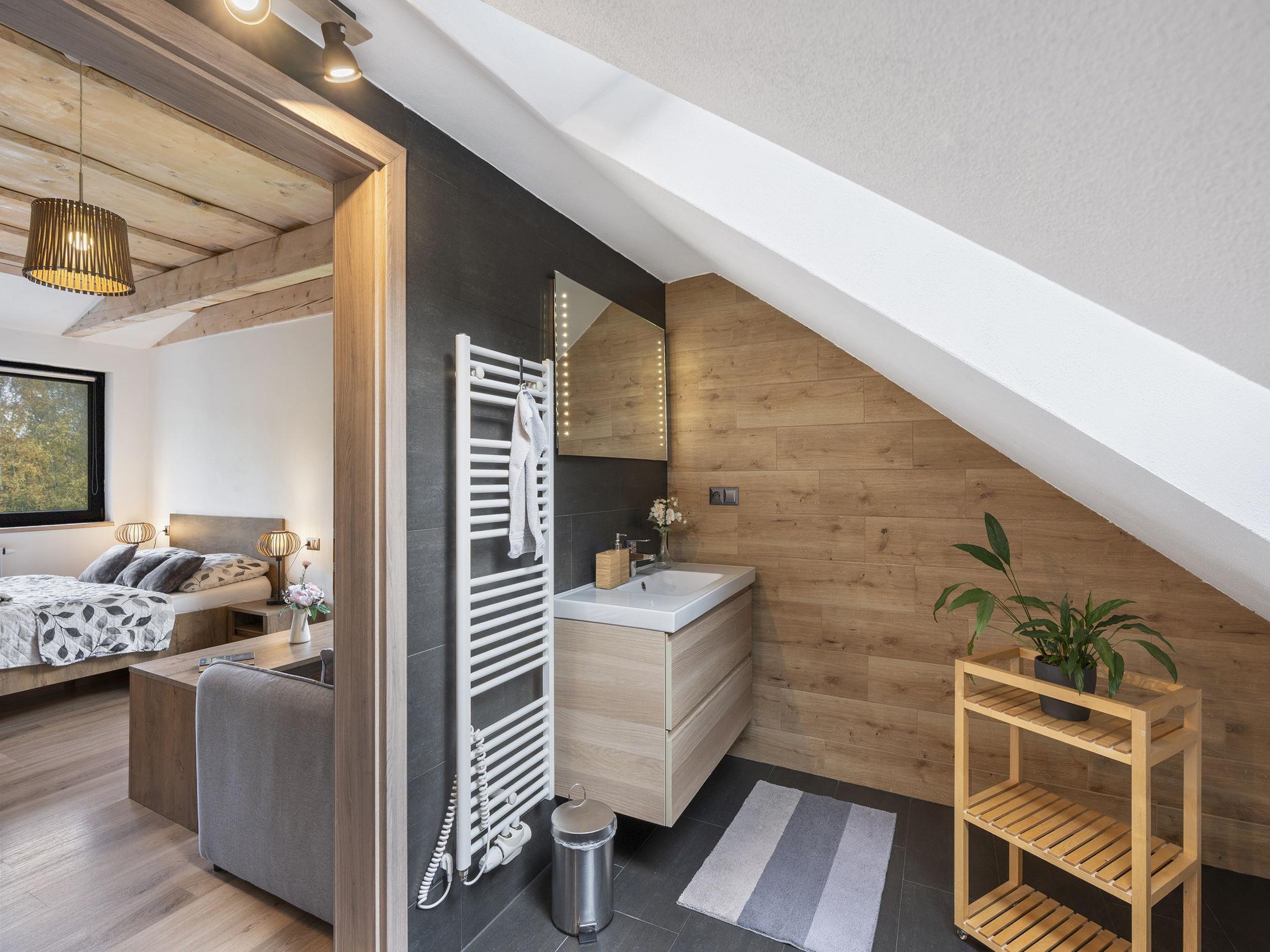 8-Zimmer-Chalet 300 m2 auf 2 Stockwerken. Geräumig, komfortabel und modern eingerichtet: offenes grosses Wohn-/Esszimmer mit offenem Kamin, Esstisch und sep. WC. Ausgang zur Terrasse. 1 Zimmer mit 1 Doppelbett und Dusche/WC. Wohnzimmer mit Panoramafenster mit offenem Kamin, Dusche/WC und Sprudelbad. Küche (4 Kochplatten, Backofen, Geschirrspüler, Wasserkocher, Mikrowelle, elektrische Kaffeemaschine) mit Bar. Fussbodenheizung. Obergeschoss: 1 Kinderzimmer mit 1 Bett und 1 Doppelbett. 1 Zimmer mit 1 Doppelbett und Dusche/WC. 1 Zimmer mit Dachfenster mit 1 Doppelbett. 1 Zimmer mit 1 Doppeldiwanbett und 1 Doppelbett. 1 Zimmer mit Panoramafenster mit 1 Doppeldiwanbett, 1 Doppelbett und Dusche/WC. Bad/Dusche/WC. Grosse Terrasse. Terrassenmöbel. Schöne Panoramasicht auf die Landschaft und den Wald. Zur Verfügung: Internet (Wireless LAN, gratis). Bitte beachten: geeignet für Familien. Rauchmelder, Feuerlöscher. Zapfanlage verfügbar (extra).