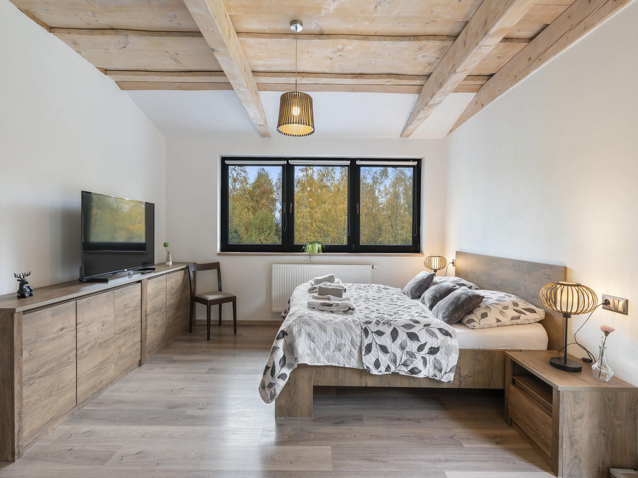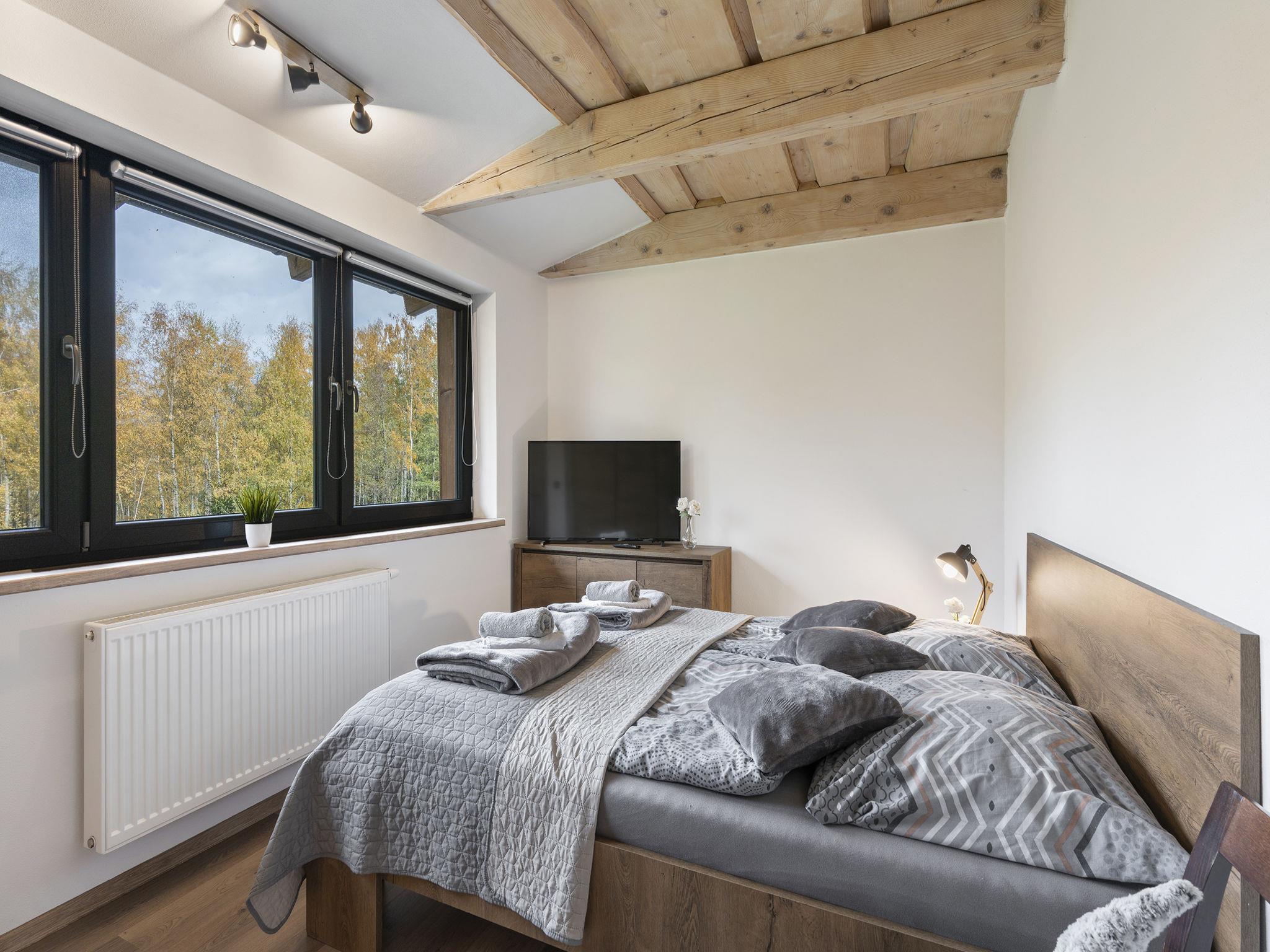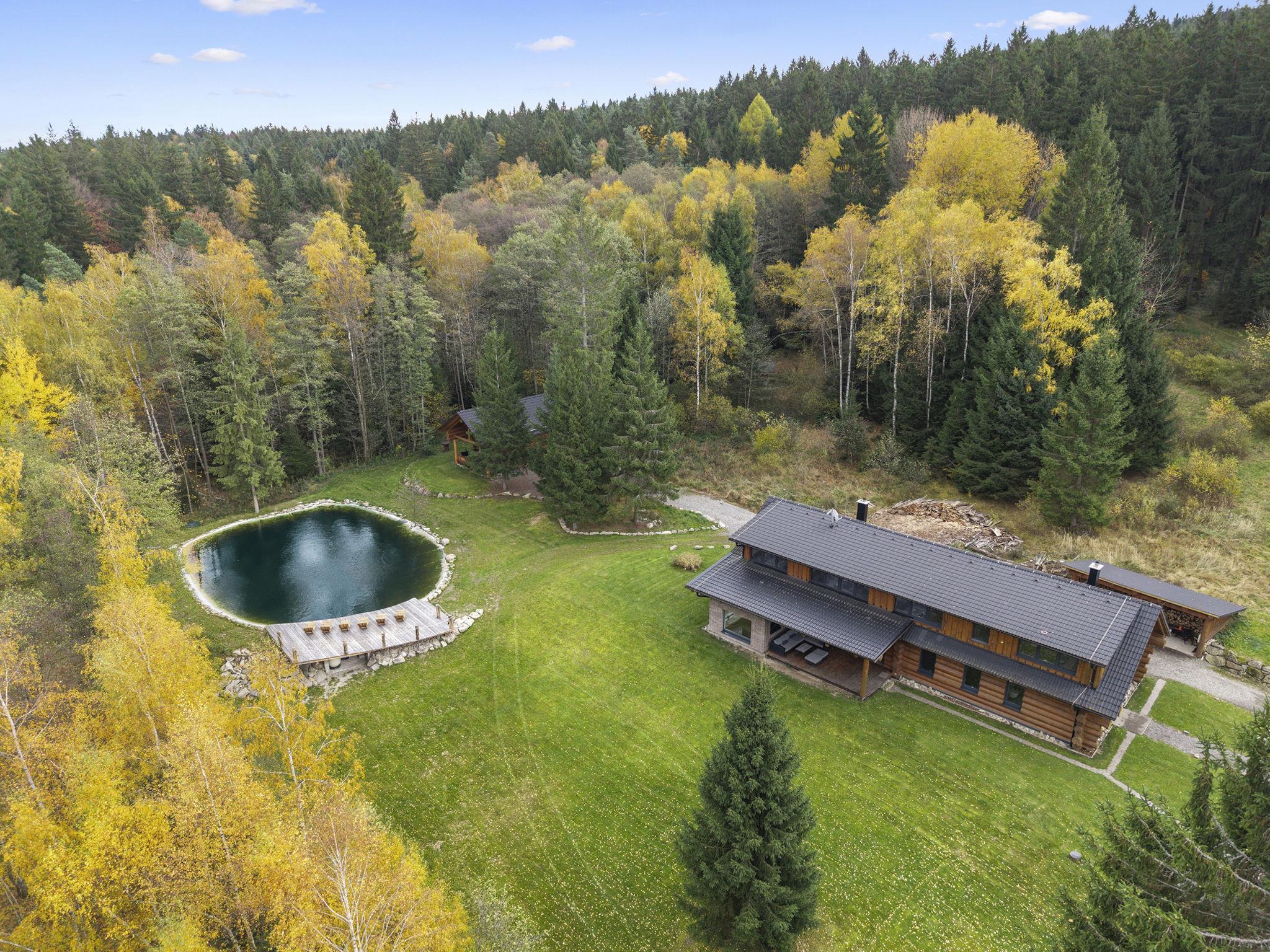 Kurí 3 km von Benešov nad Cernou: Freistehendes, luxuriöses Chalet "Srub Kurí", auf 2 Stockwerken, Baujahr 2019. Ruhige Lage, direkt am Waldrand, im Grünen. Zur Mitbenutzung: Naturteich. Badesteg. Zur Alleinbenutzung: Grundstück. Grill, Feuerstelle. Im Hause: Wireless LAN, Sprudelbad, Infrarotwärmekabine, Wellnessbereich, Waschmaschine, Wäschetrockner. Parkplatz beim Haus. Lebensmittelgeschäft 3 km, Restaurant 300 m, Bushaltestelle "Benešov nad Cernou, pila" 2 km, Grasstrand 50 m (klein), Freibad 13 km. Nahe gelegene Sehenswürdigkeiten: Žofínský prales, Sokolcí, 10 km, Blansko, Dobrá Voda 12 km, Jiricská nádrž, Tvrz Žumberk 15 km, Nové Hrady, Porešín, ZOO park Dvorec 20 km, Hrad Rožmberk, Ceský Krumlov 35 km. Bekannte Skigebiete sind gut erreichbar: Karlstift (AT) 25 km, Lipno 50 km, Sterstain (AT) 50 m. Bekannte Seen in der Umgebung sind gut erreichbar: Vodní nádrž Lipno 50 km. Möglichkeit zum Angeln in privaten Teichen oder Rafting auf der Moldau (extra).