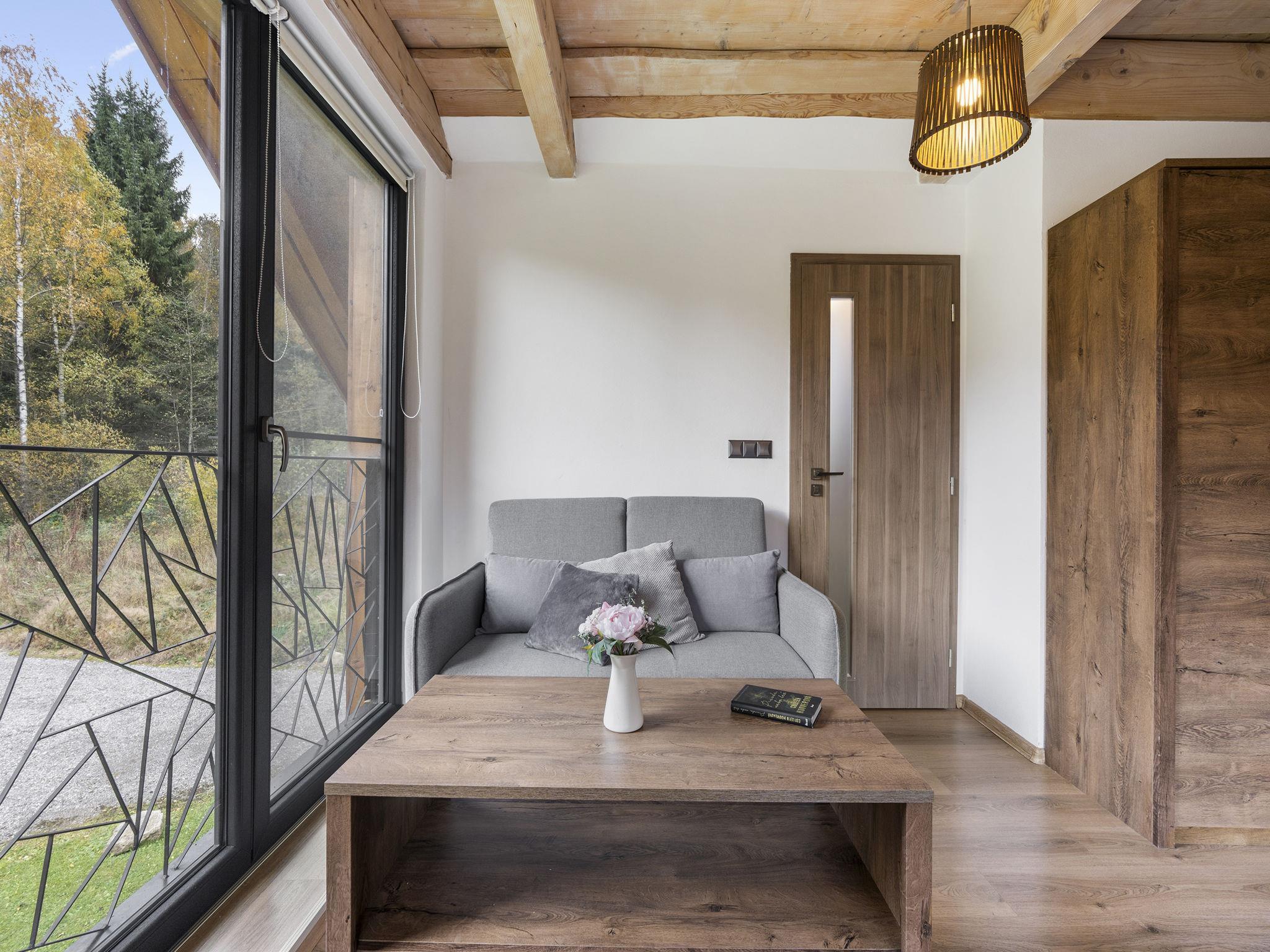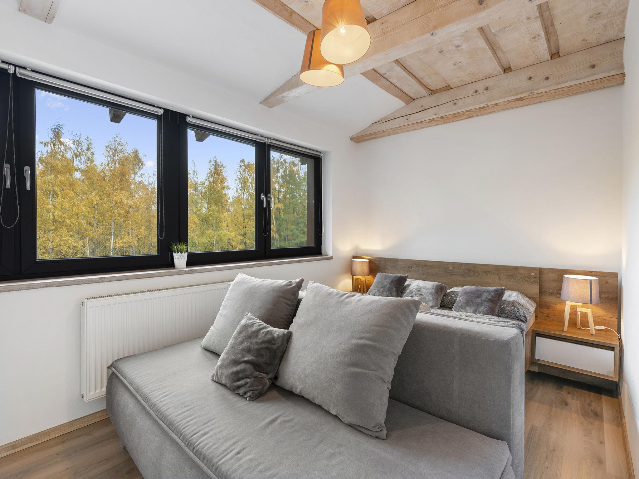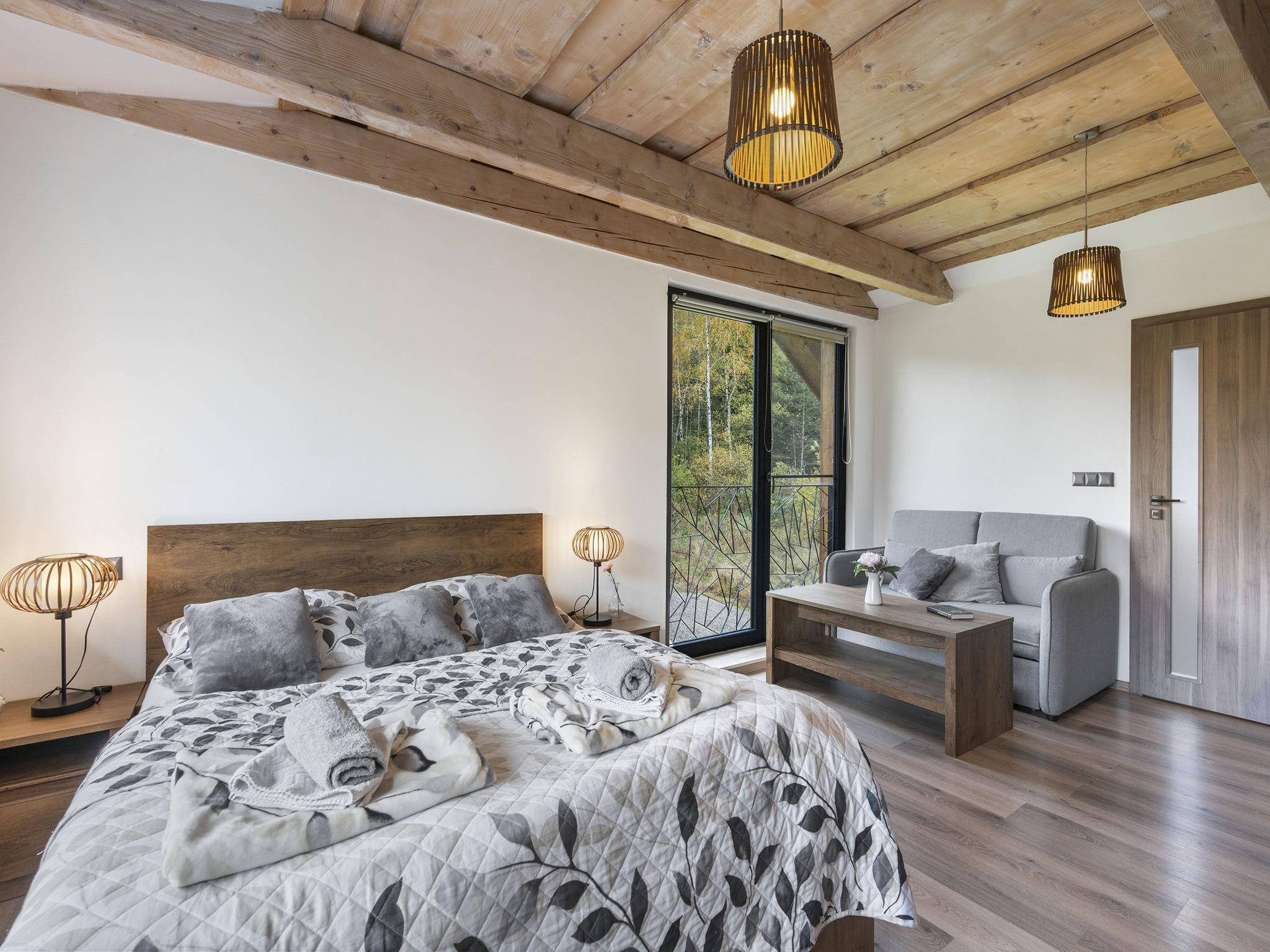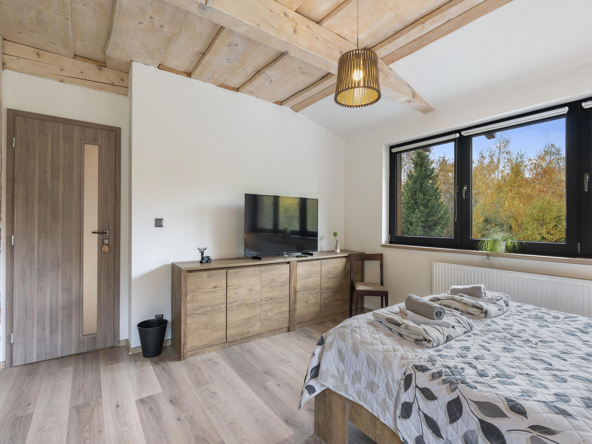 Kurí 3 km von Benešov nad Cernou: Freistehendes, luxuriöses Chalet "Srub Kurí", auf 2 Stockwerken, Baujahr 2019. Ruhige Lage, direkt am Waldrand, im Grünen. Zur Mitbenutzung: Naturteich. Badesteg. Zur Alleinbenutzung: Grundstück. Grill, Feuerstelle. Im Hause: Wireless LAN, Sprudelbad, Infrarotwärmekabine, Wellnessbereich, Waschmaschine, Wäschetrockner. Parkplatz beim Haus. Lebensmittelgeschäft 3 km, Restaurant 300 m, Bushaltestelle "Benešov nad Cernou, pila" 2 km, Grasstrand 50 m (klein), Freibad 13 km. Nahe gelegene Sehenswürdigkeiten: Žofínský prales, Sokolcí, 10 km, Blansko, Dobrá Voda 12 km, Jiricská nádrž, Tvrz Žumberk 15 km, Nové Hrady, Porešín, ZOO park Dvorec 20 km, Hrad Rožmberk, Ceský Krumlov 35 km. Bekannte Skigebiete sind gut erreichbar: Karlstift (AT) 25 km, Lipno 50 km, Sterstain (AT) 50 m. Bekannte Seen in der Umgebung sind gut erreichbar: Vodní nádrž Lipno 50 km. Möglichkeit zum Angeln in privaten Teichen oder Rafting auf der Moldau (extra).
