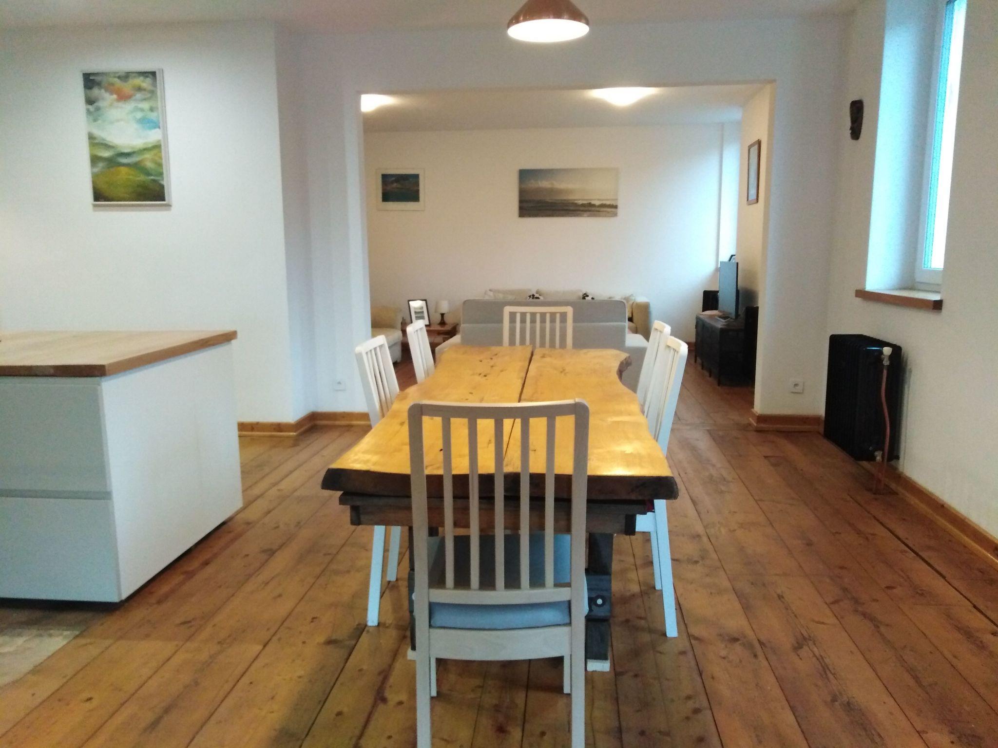 Die moderne offene Küche mit Essbereich ist voll ausgestattet und bietet alles, was man braucht.