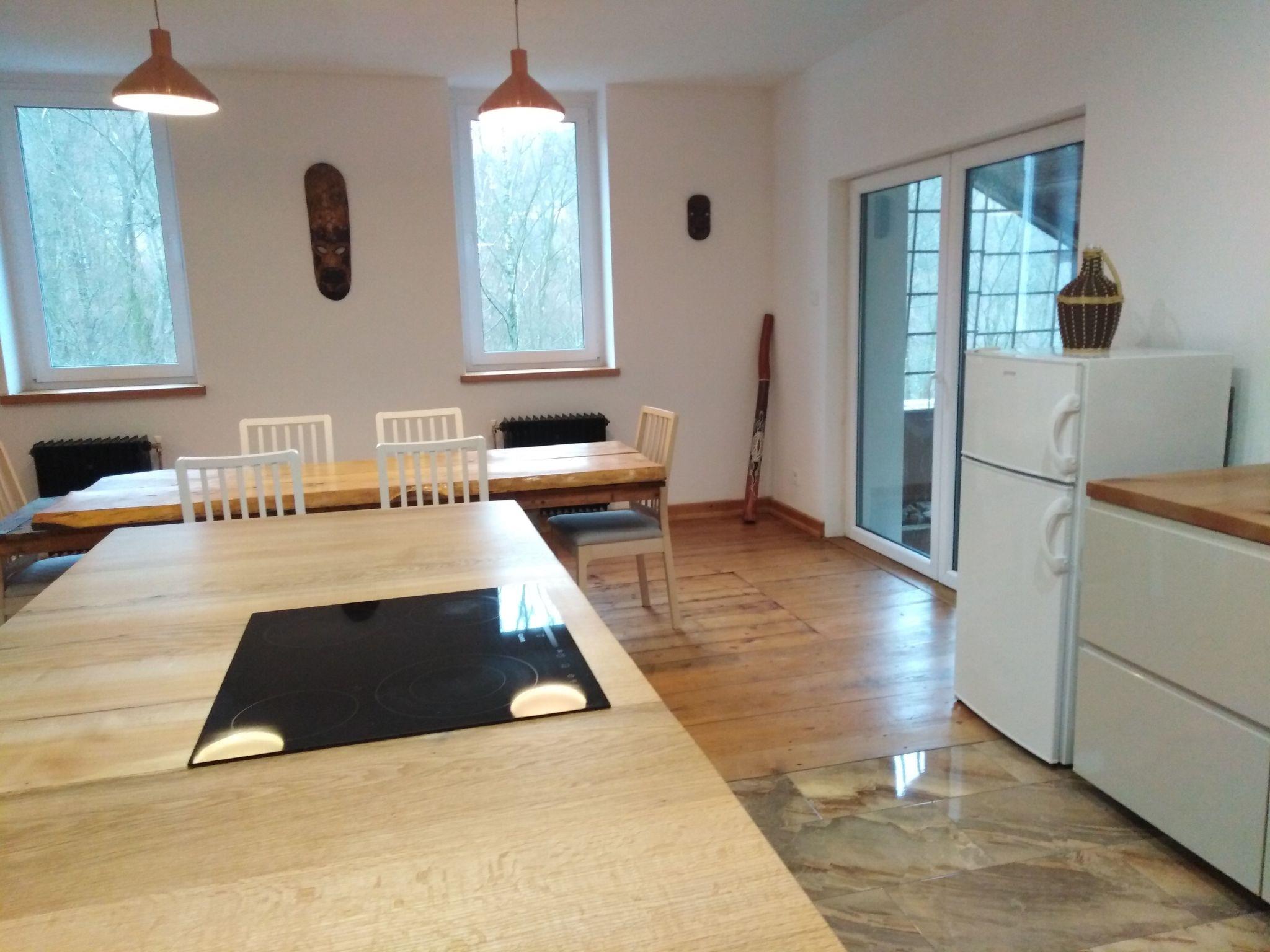 Das Grundstück ist von einem Wald umgeben, mit direktem Zugang zum Wald über den Garten. ideal zum Wandern und Radfahren. Sie können einen schönen Spaziergang zum Zentrum von Karlovy Vary machen, wo Sie die berühmten heißen Quellen und viele andere Attraktionen finden können. Vor dem Haus befindet sich eine Bushaltestelle. Das Stadtzentrum ist mit dem Bus in etwa 8 Minuten zu erreichen. Es gibt zwei Parkplätze. Golfplätze, Schwimmbäder, Tennisplätze, Hochseilklettergarten und Berge sind in 10 bis 30 Autominuten zu erreichen. Die moderne offene Küche mit Essbereich ist geräumig und bietet alle Annehmlichkeiten einer modernen Wohnung.